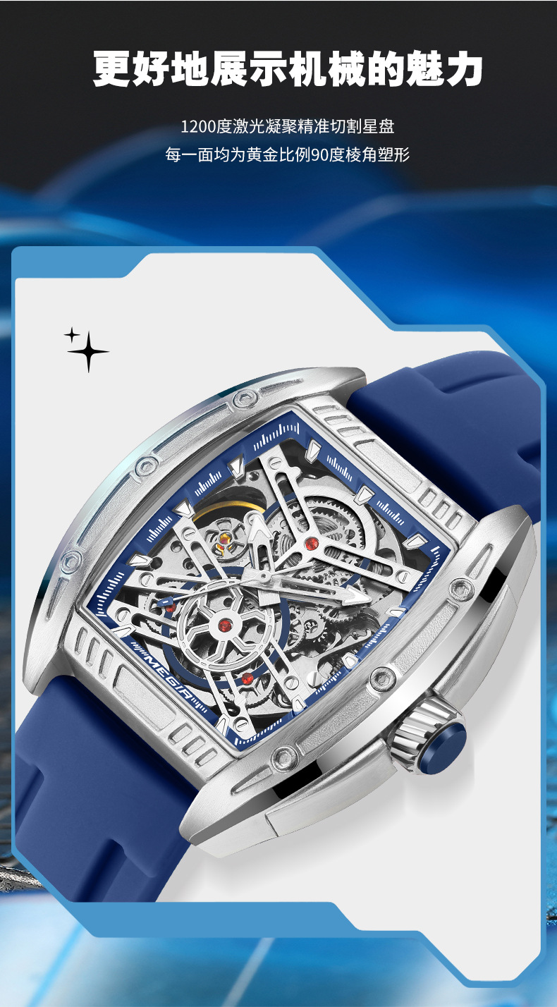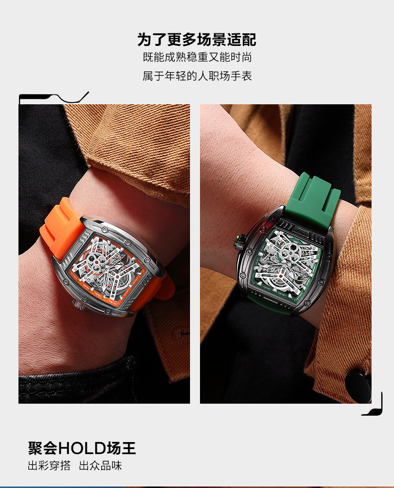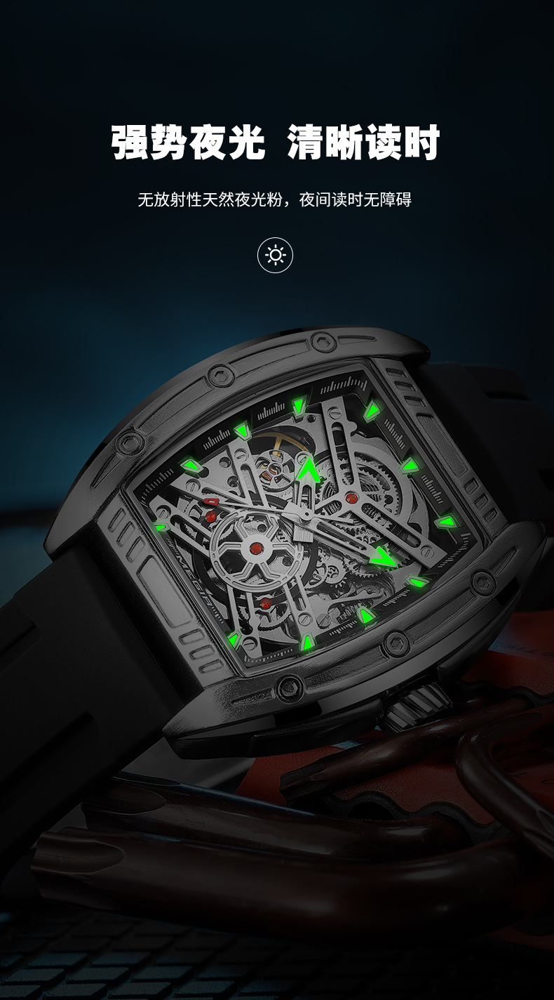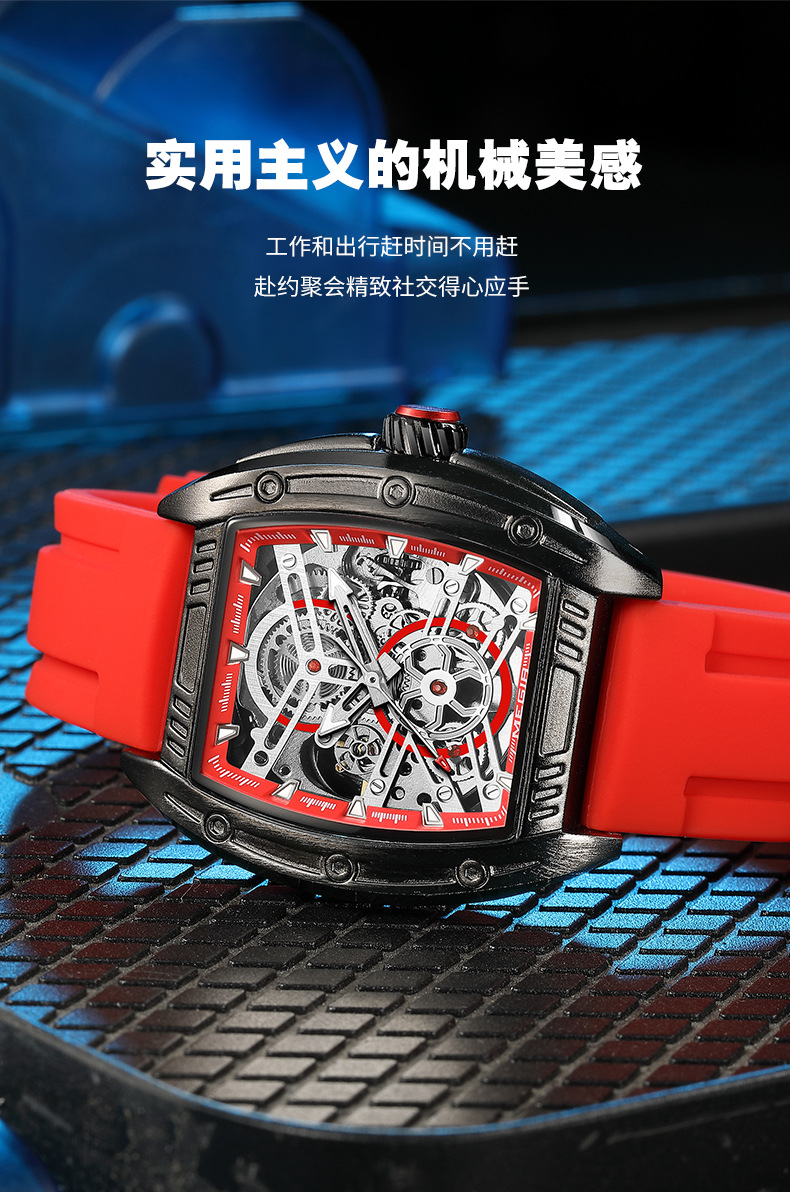 年终大促!【动感爆表!时尚魅力】男士运动机械机芯手表,硅胶带爆款夜光防水多功能,多层立体镂空 夜光清晰 出彩穿搭 出众品味