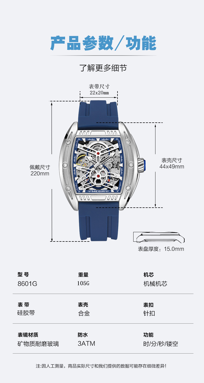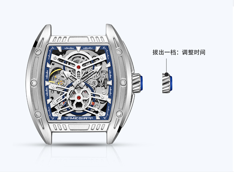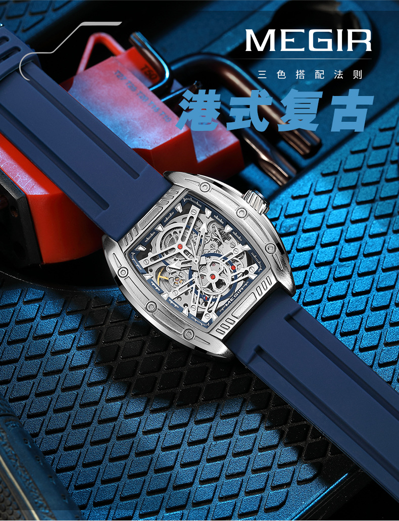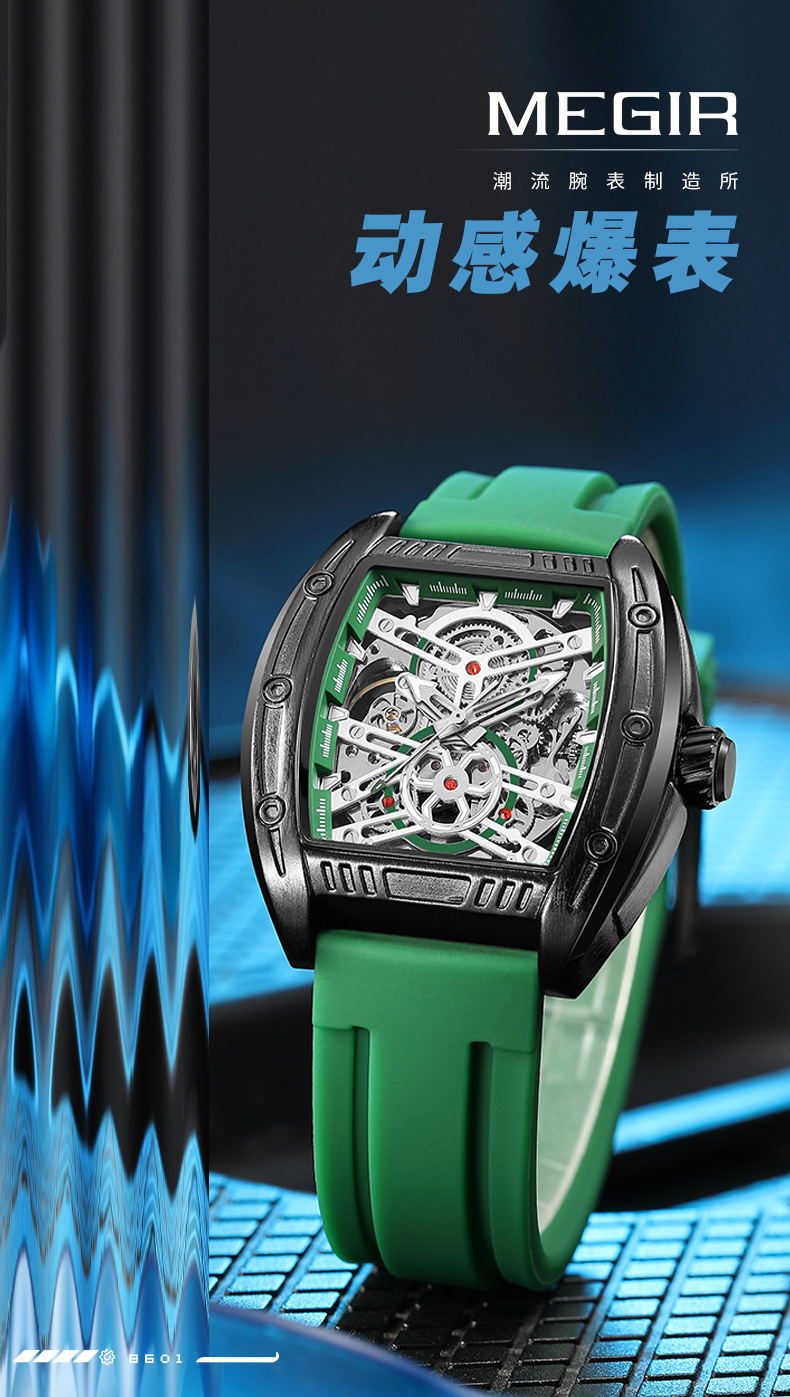 年终大促!【动感爆表!时尚魅力】男士运动机械机芯手表,硅胶带爆款夜光防水多功能,多层立体镂空 夜光清晰 出彩穿搭 出众品味