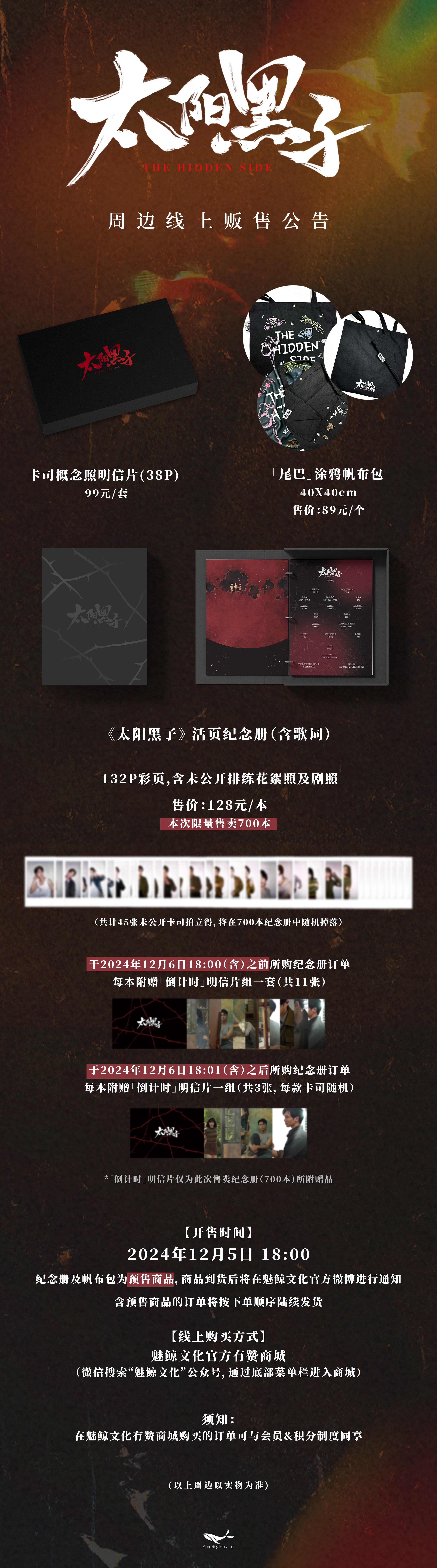 【友情提醒:太阳黑子周边仅支持快递邮寄,活页纪念册、帆布包为预售商品,如预售商品与现货商品合并购买,将以预售商品发货时间为准】