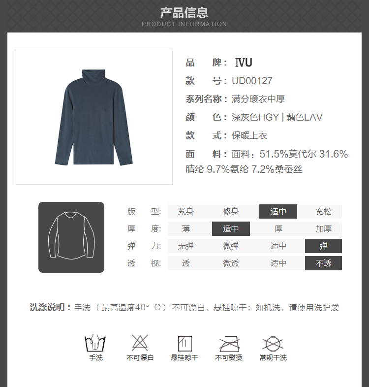 6FIVU莫代尔高领长袖内衣打底衫休闲男士秋衣上衣(11.16)