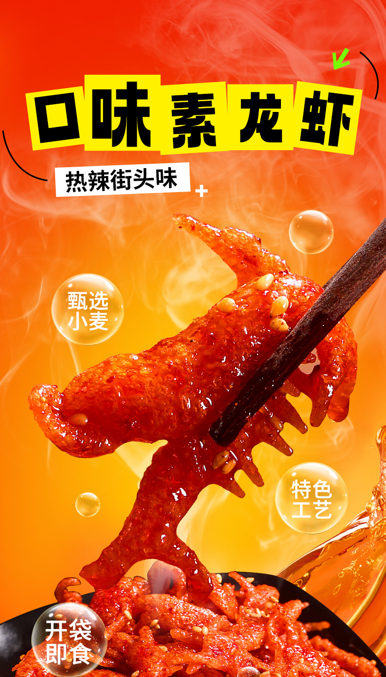 【55.9到手20包❗️素小龙虾辣条】麻辣鲜香,小时候怀旧零食,麻辣味甜口解馋辣条,办公室休闲小吃食品,特价清仓L