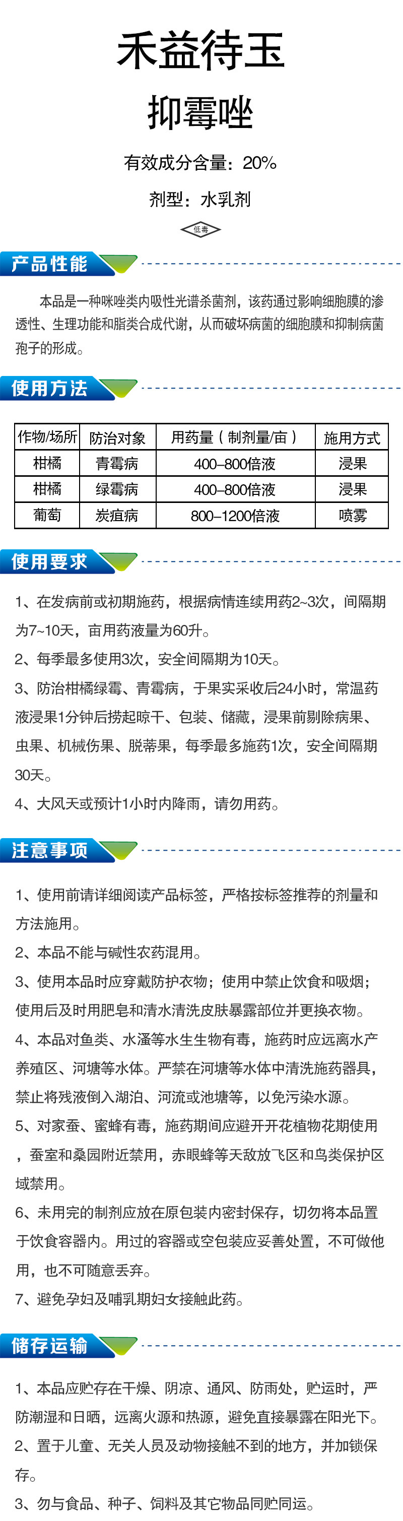 抑霉唑20%(水乳剂)对葡萄炭疽病有较好的防治效果,