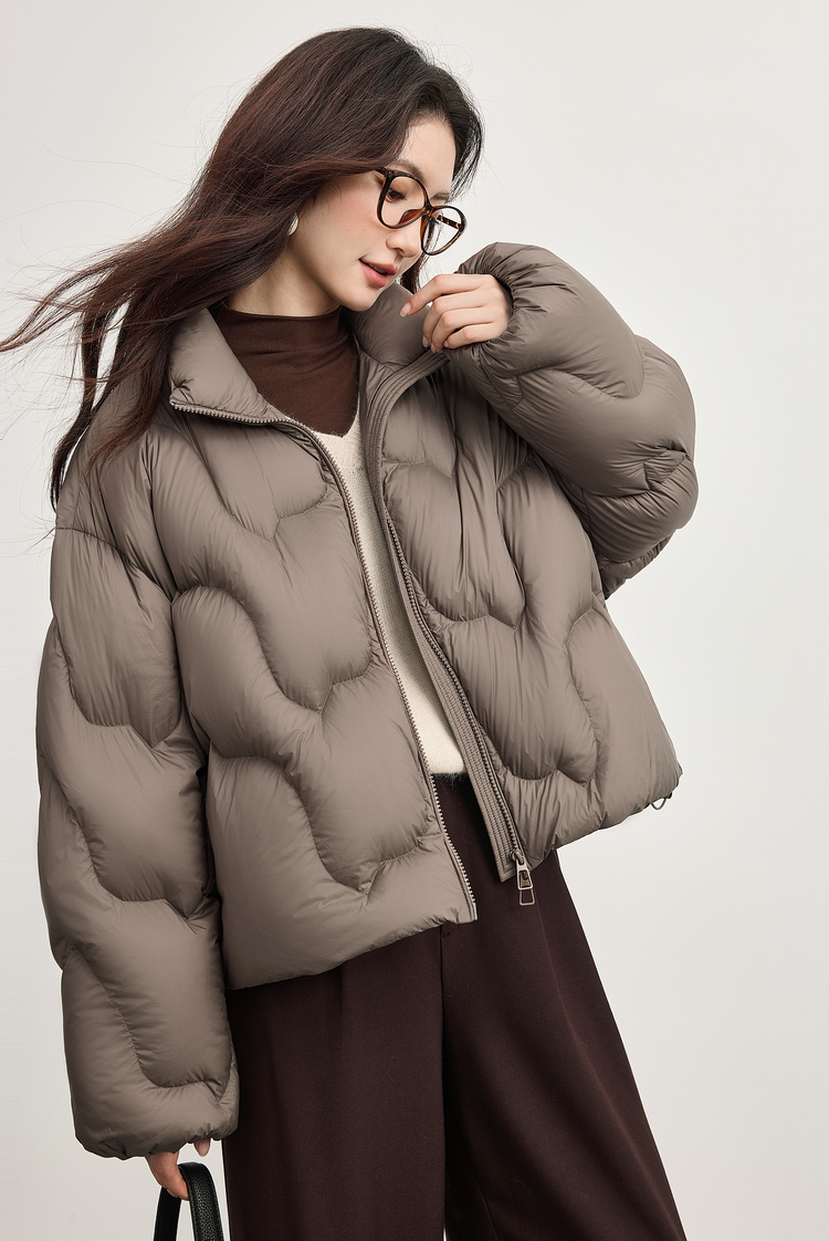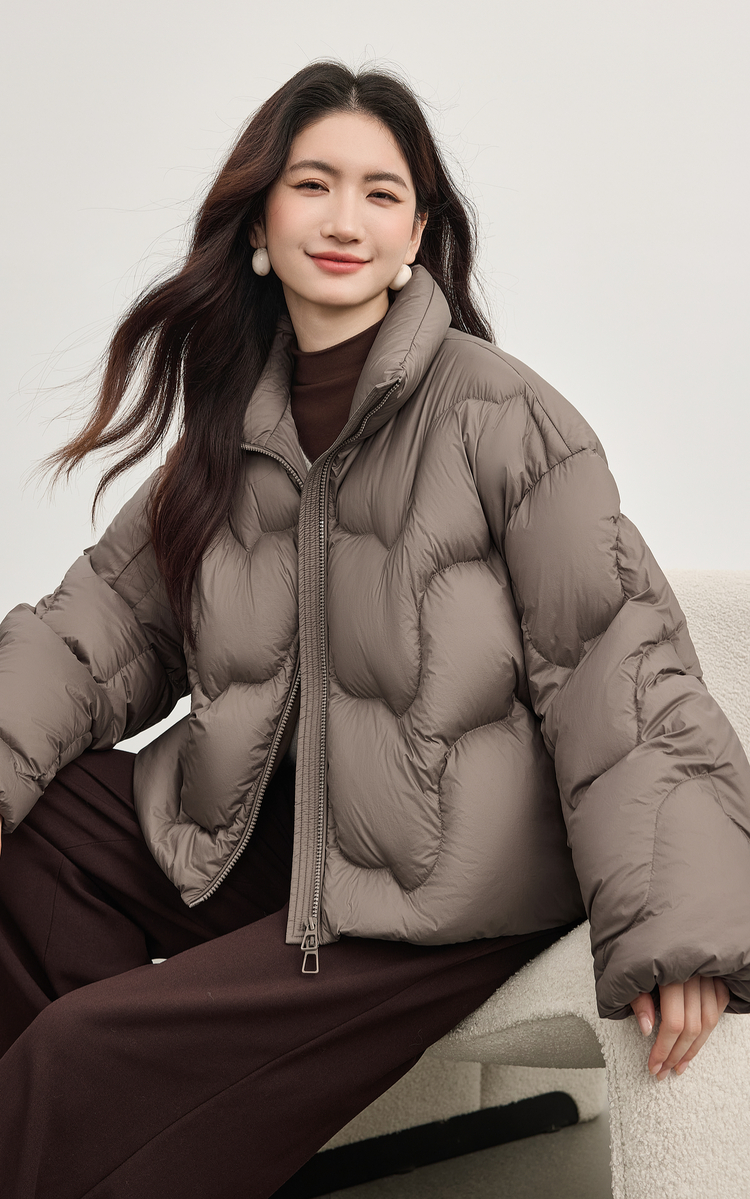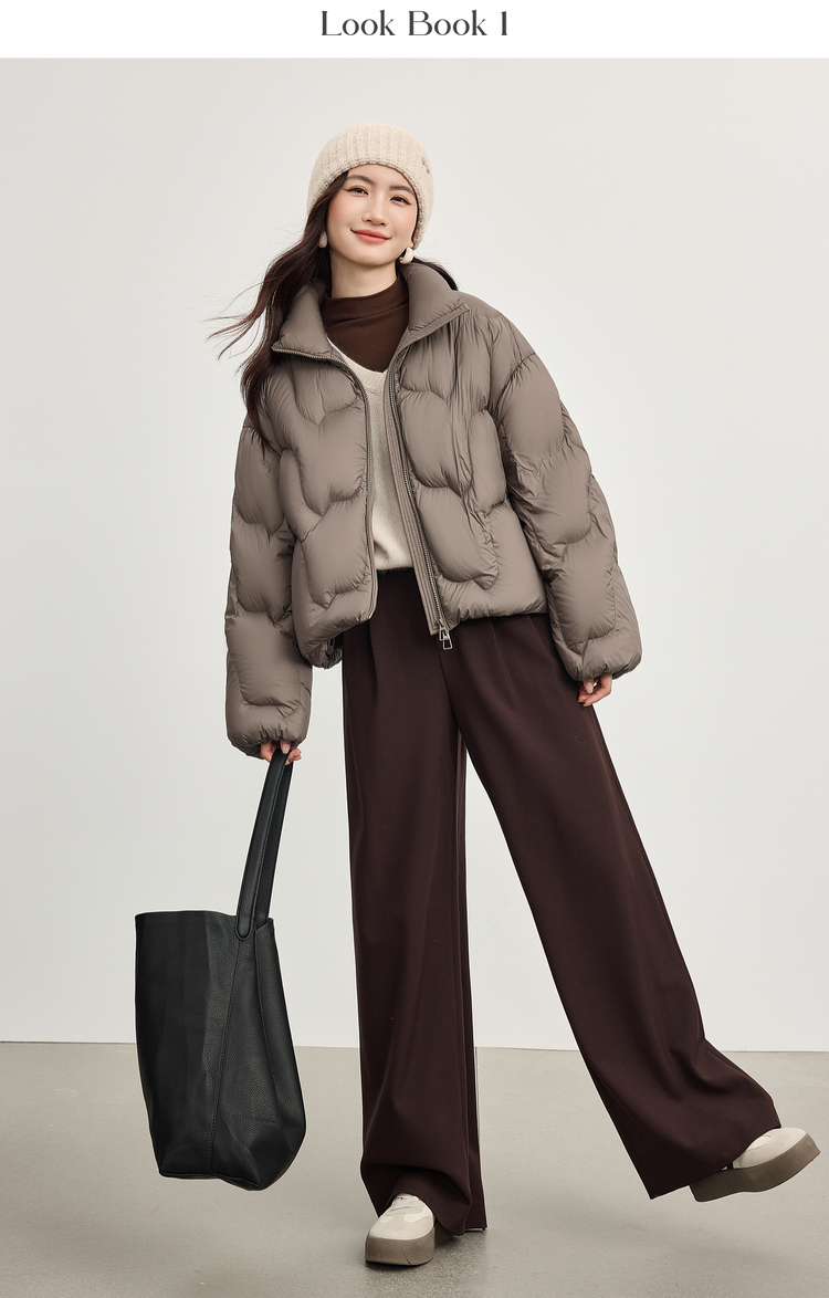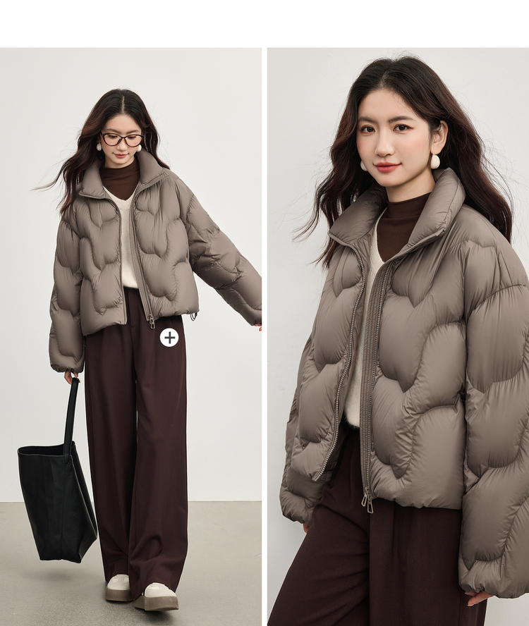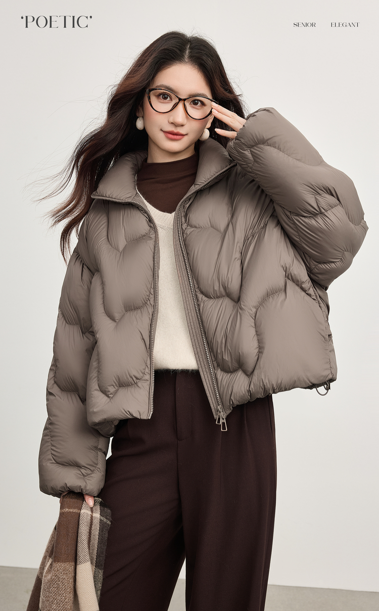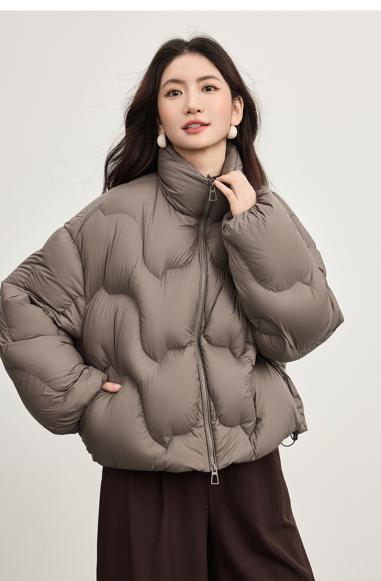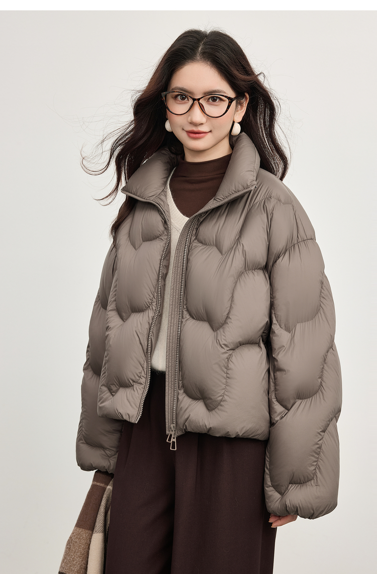 【年货节】熙世界泡芙云朵感面包服羽绒服女短款冬季保暖时尚立领白鸭绒外套
