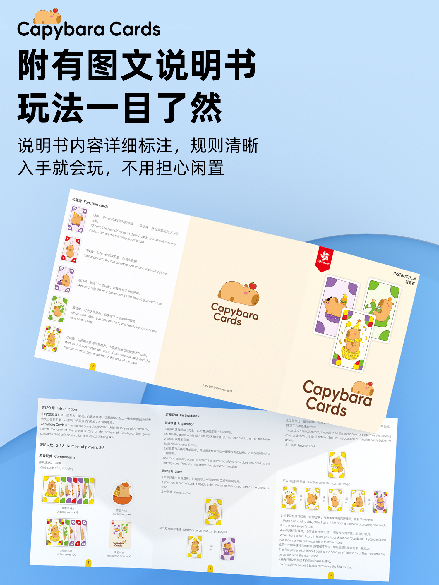 Pinwheel卡皮巴拉牌,亲子互动桌游,益智桌游玩具(3岁以上)