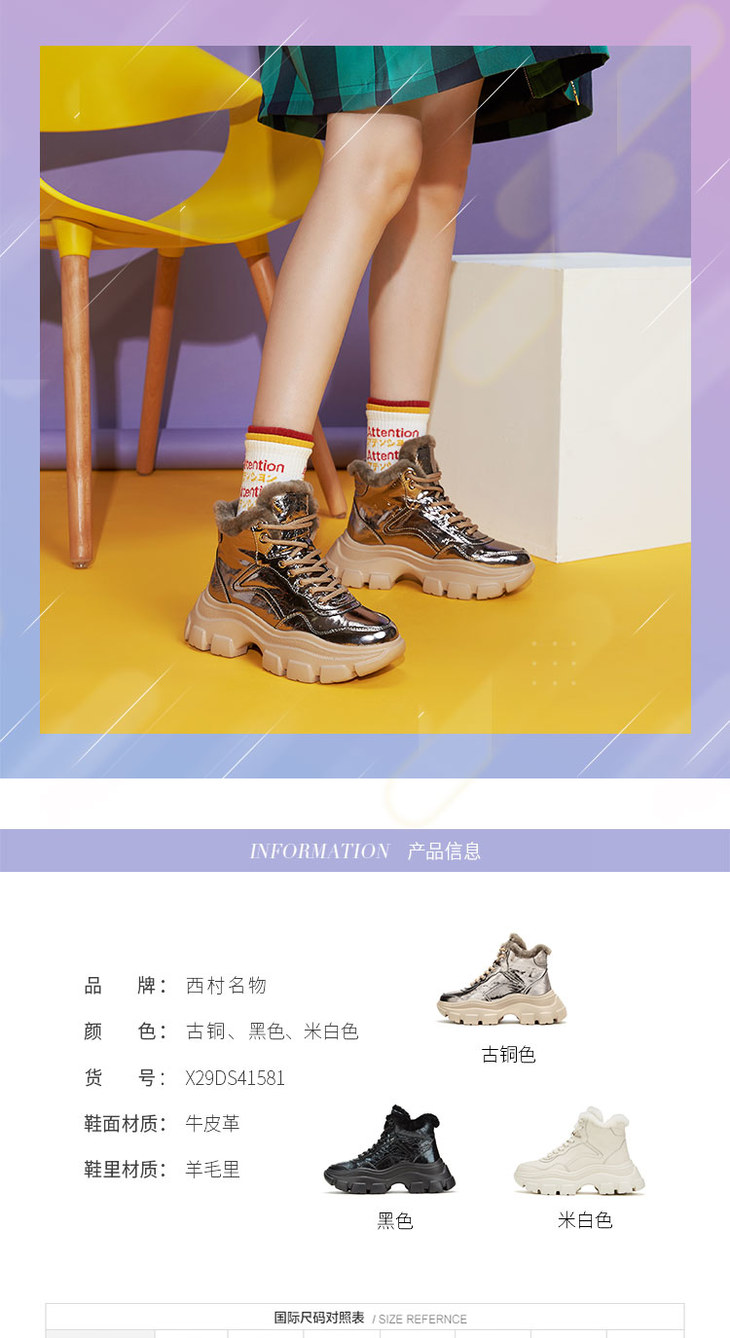 西村名物秋冬新款厚底牛皮老爹鞋加绒X29DS41581