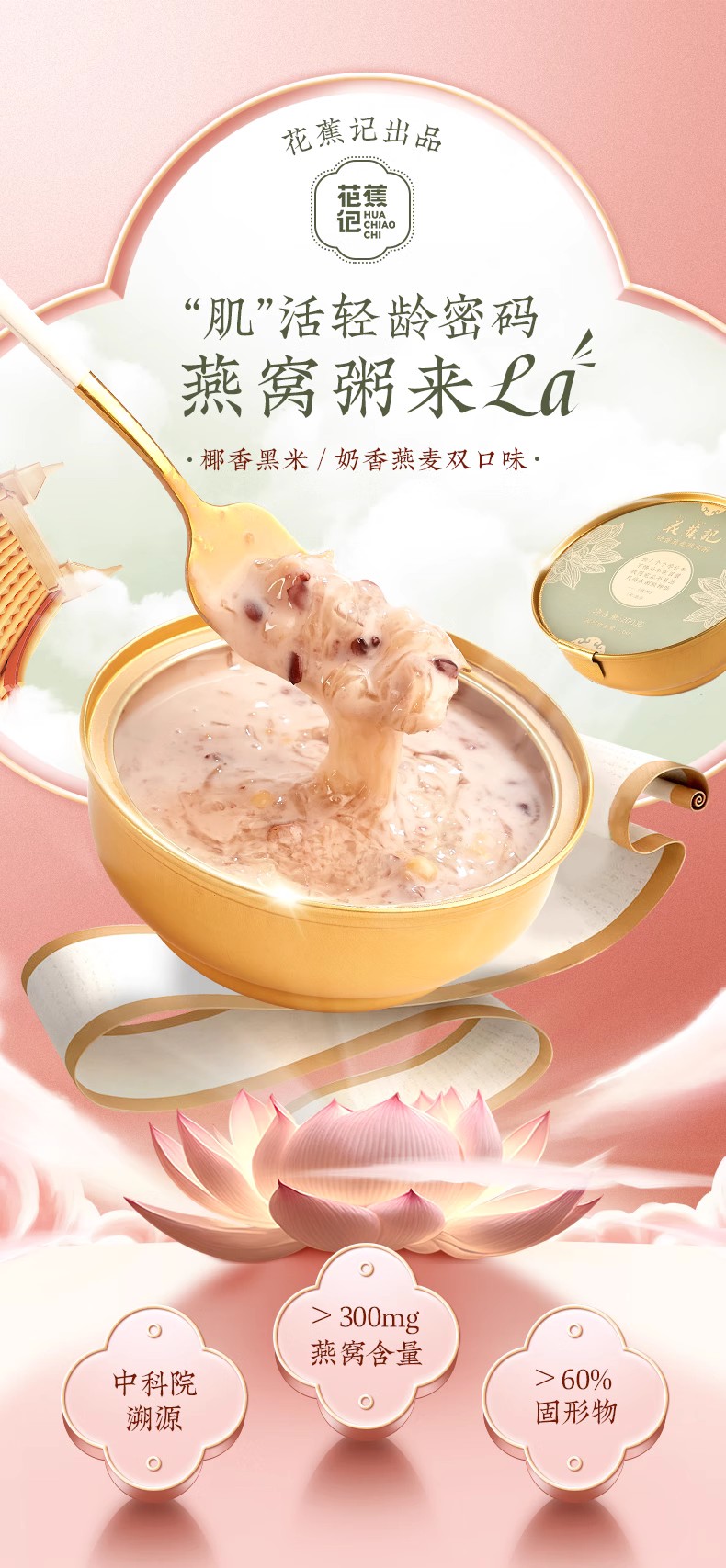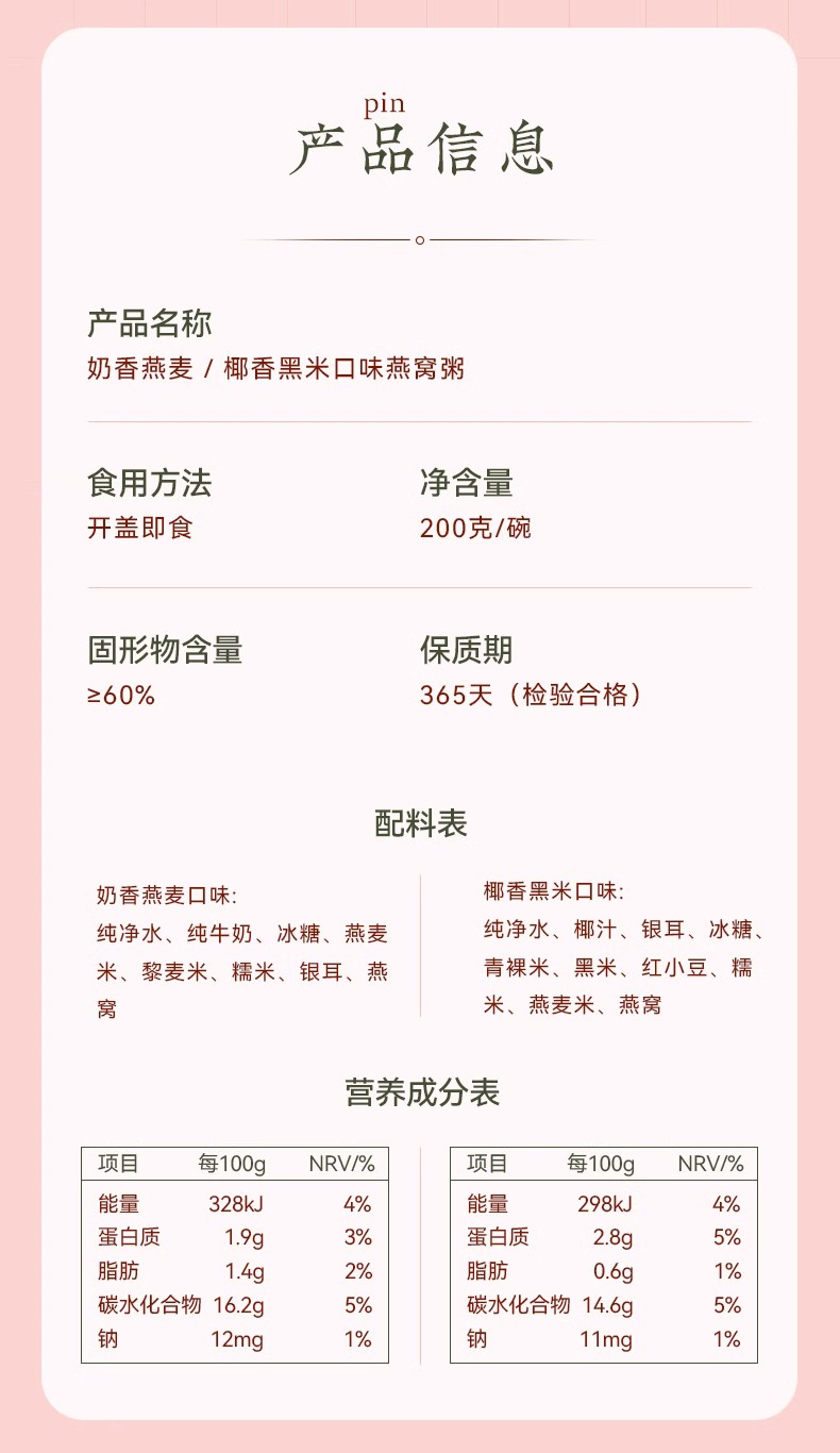 花蕉记 即食燕窝粥 200g*6碗 奶香燕麦口味燕窝粥 椰香黑米口味燕窝粥