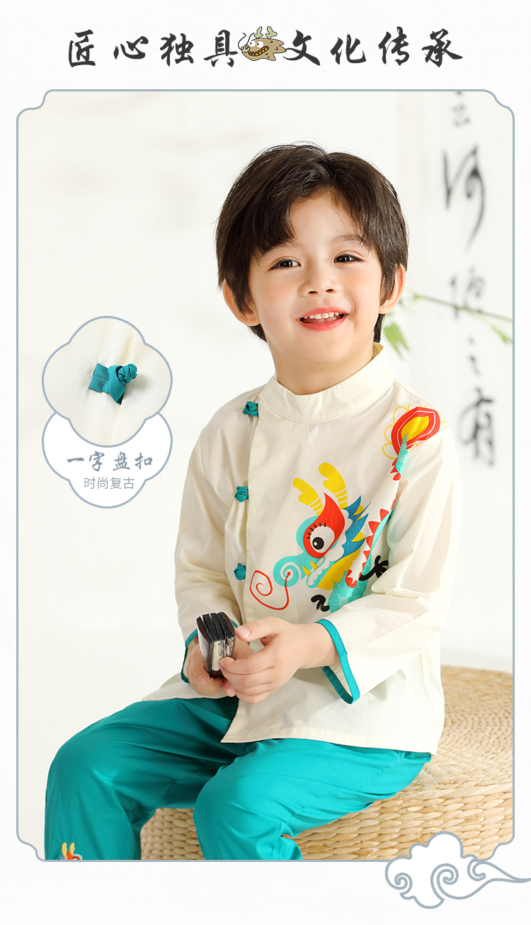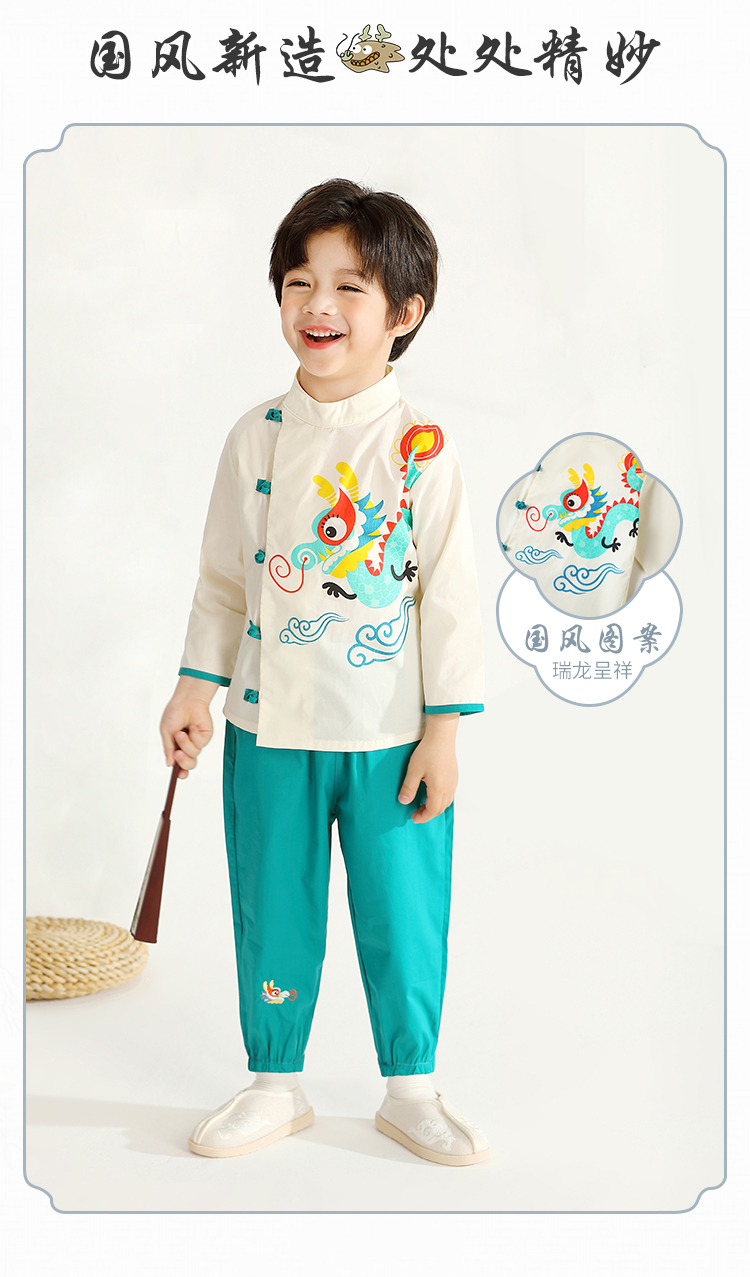 【国风两件套】【90-140】【MQDmini】男童夏季汉服套装国风
