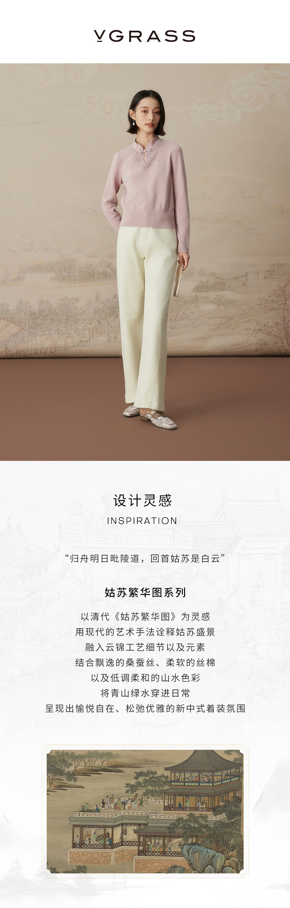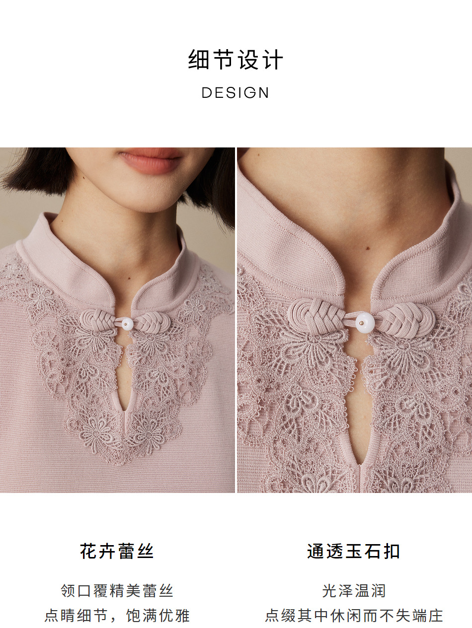 VGRASS维格娜丝24年秋季棉混纺花边蕾丝针织衫