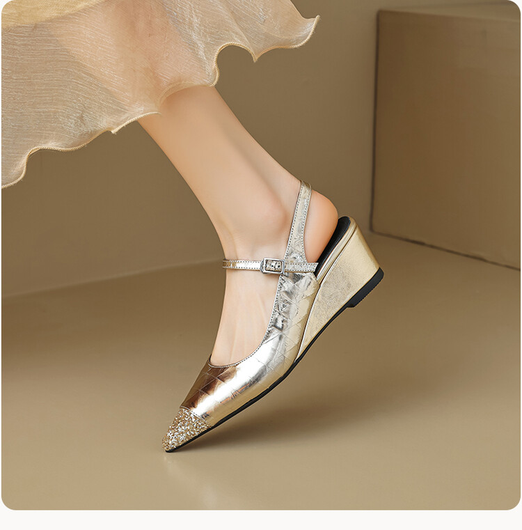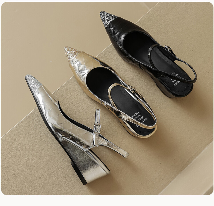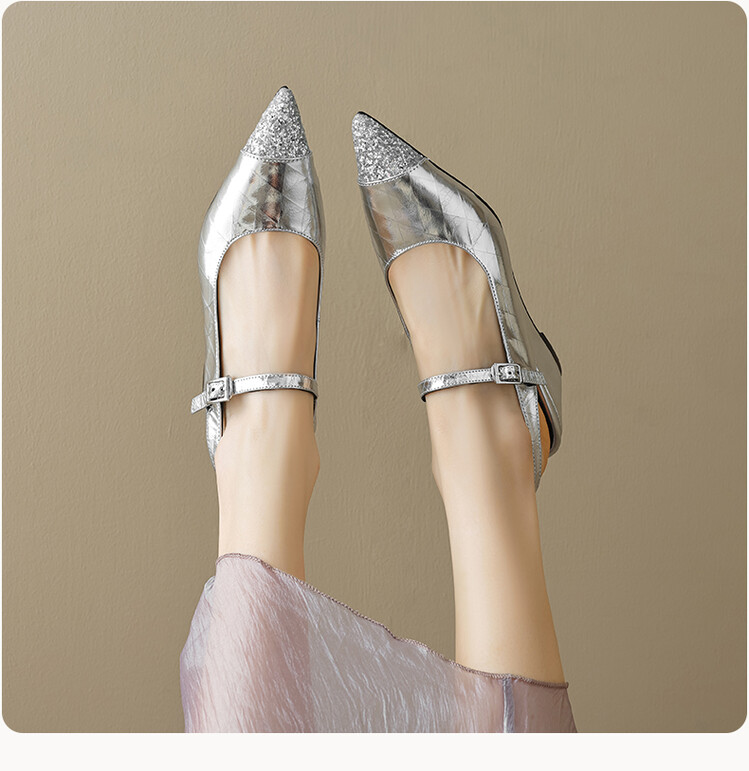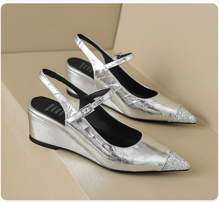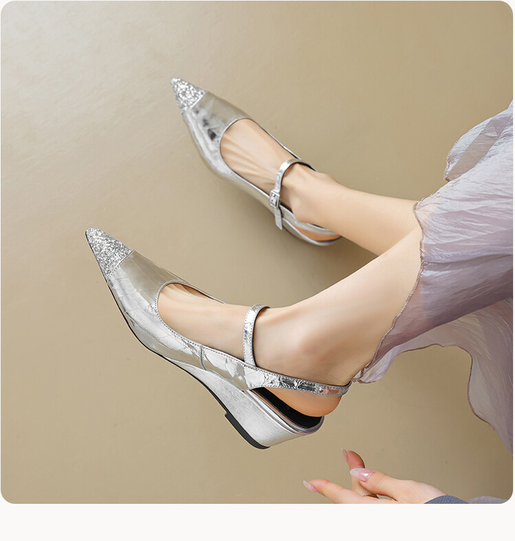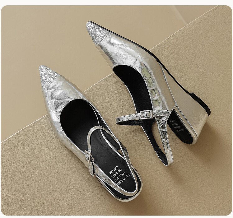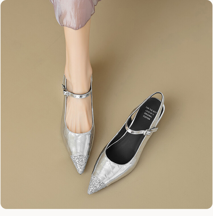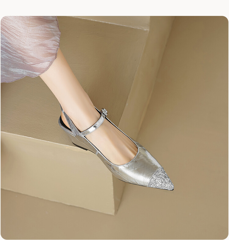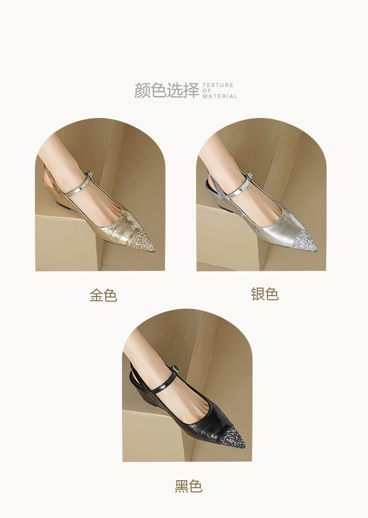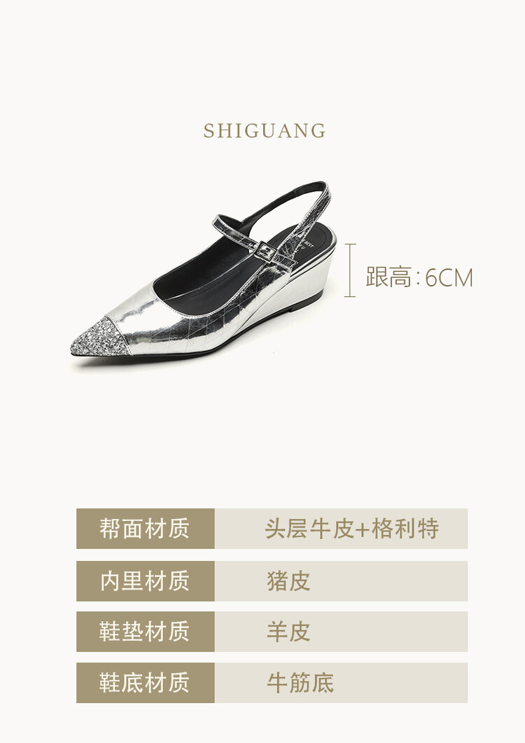 【预售5天】包头凉鞋2024夏季新款尖头银色玛丽珍女鞋一字扣带坡跟后空单鞋女DQ&DQ298X