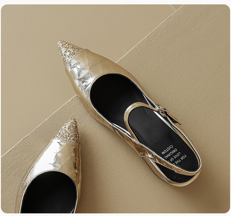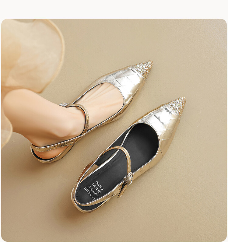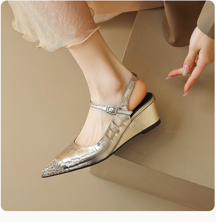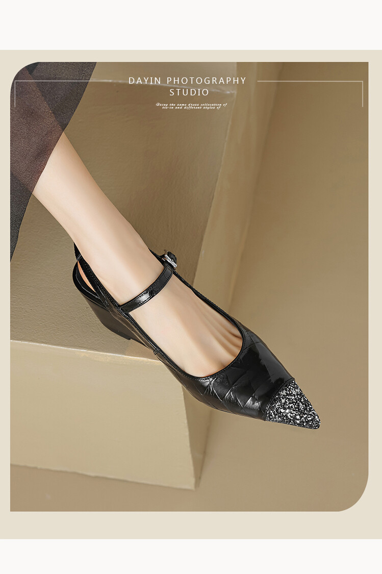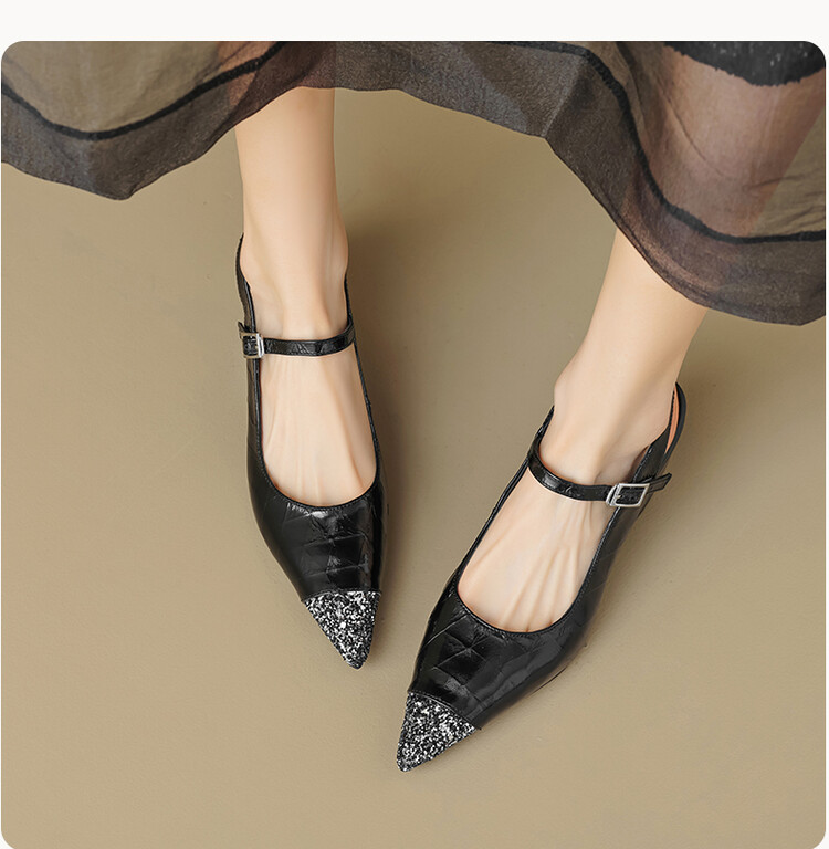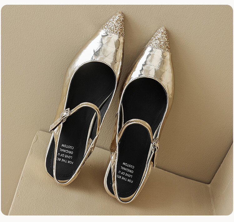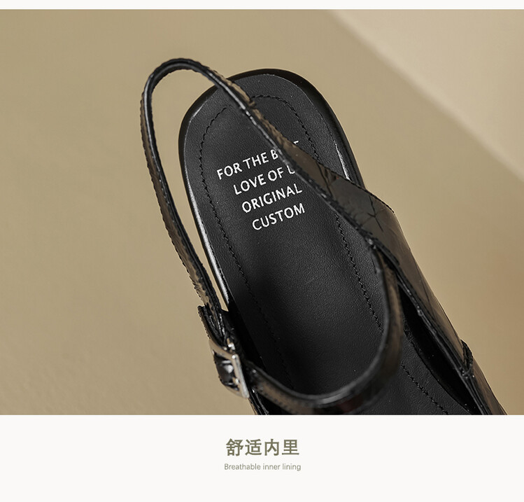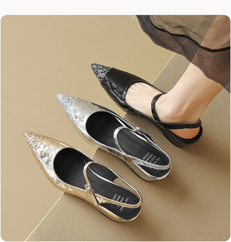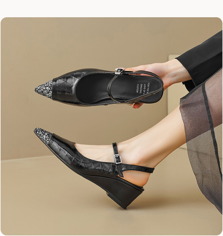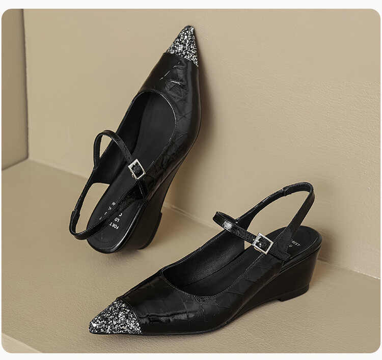 【预售5天】包头凉鞋2024夏季新款尖头银色玛丽珍女鞋一字扣带坡跟后空单鞋女DQ&DQ298X