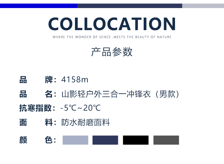 4158m 山影轻户外三合一冲锋衣 秋冬羽绒摇粒绒可拆卸内胆防水户外上衣