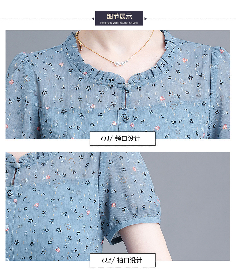 中式改良旗袍上衣女春秋中国风复古立领气质盘扣印花刺绣长袖衬衫 YX2051