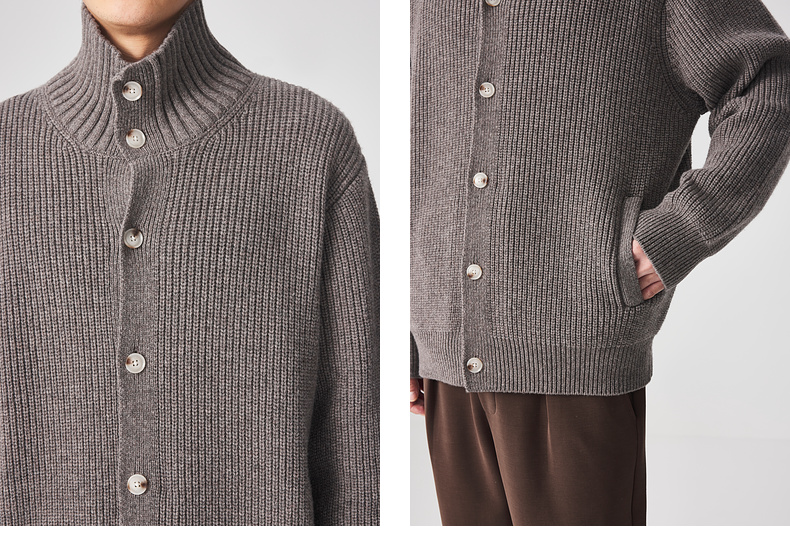 墨麦客男装立领羊毛开衫冬季新款羊毛羊绒加厚保暖夹克男。