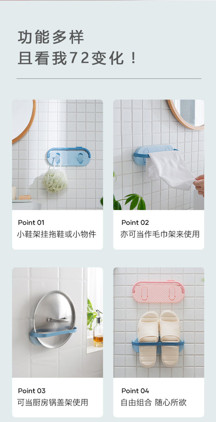 【免打孔置物架2个装】日系多功能架浴室拖鞋架 墙壁置物架厨房沥水整理收纳架