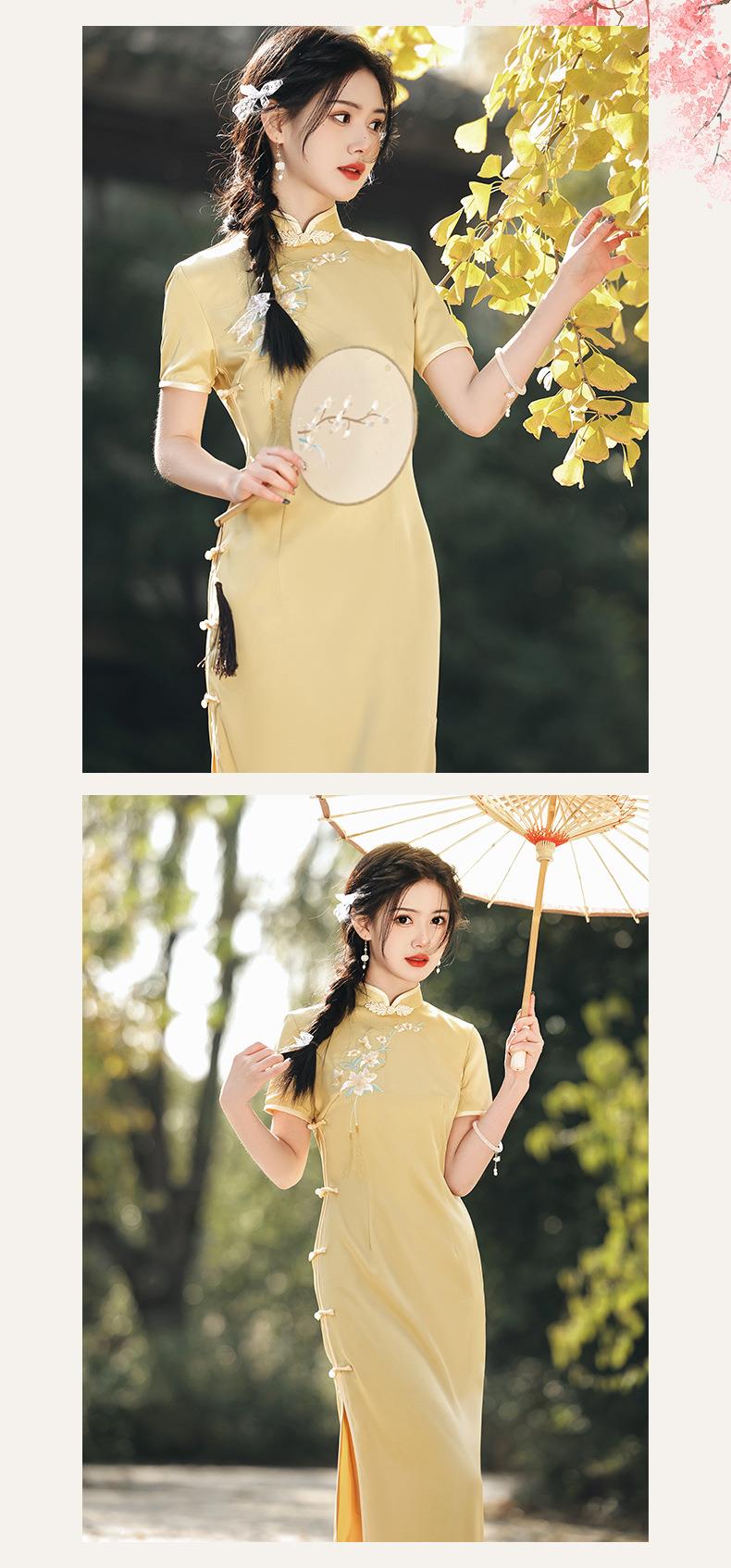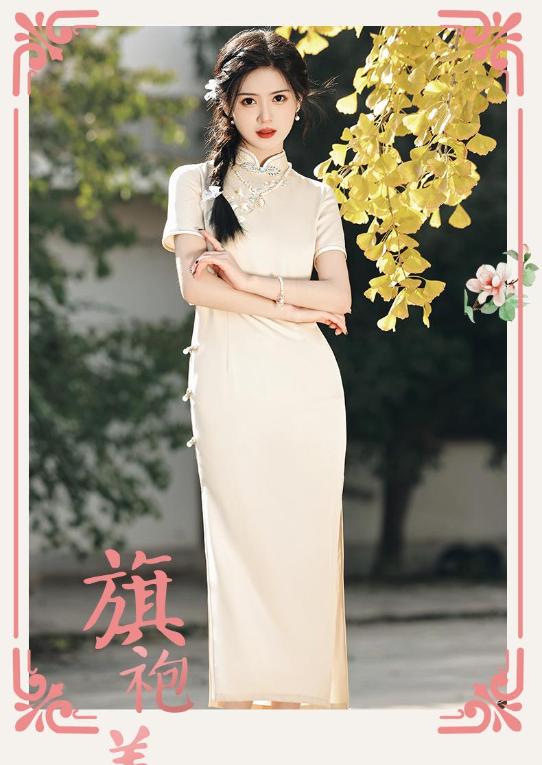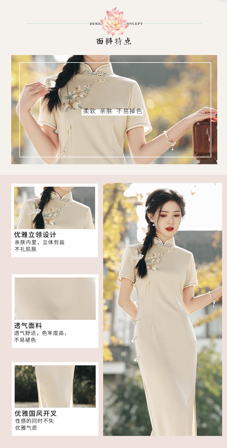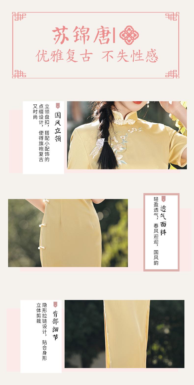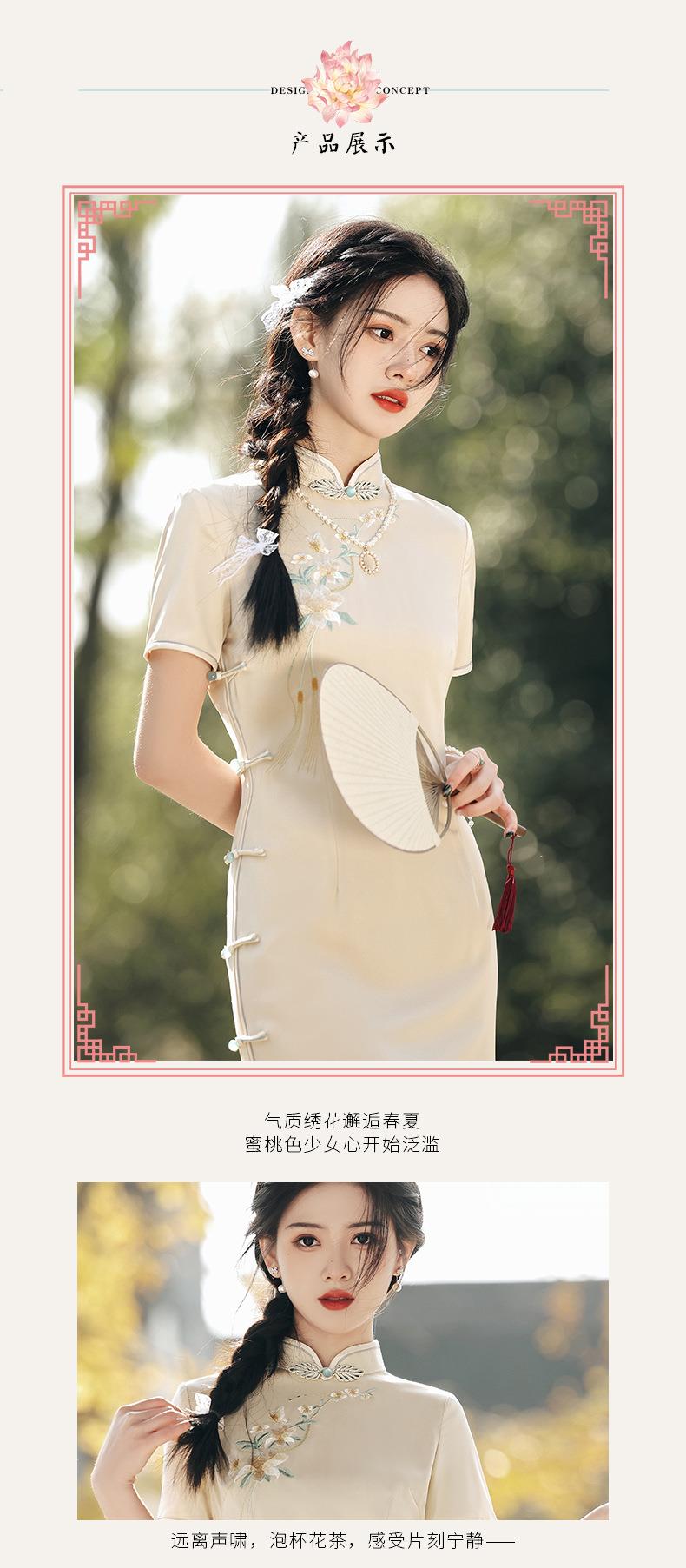 2023春夏新款仿醋酸绣花双层改良旗袍连衣裙清新文艺少女年轻款