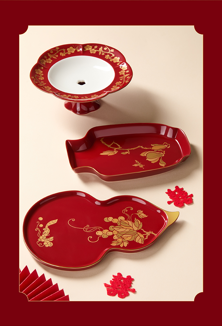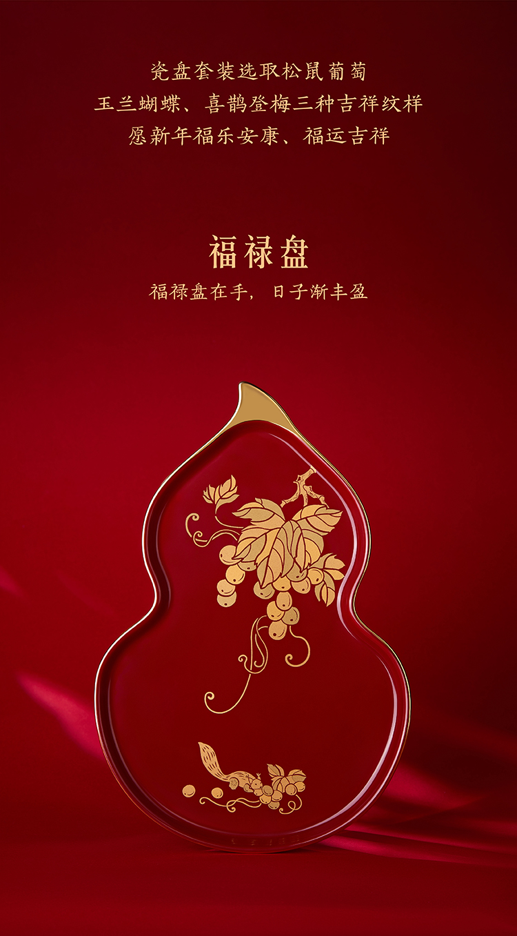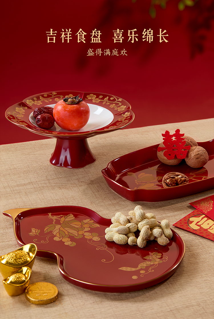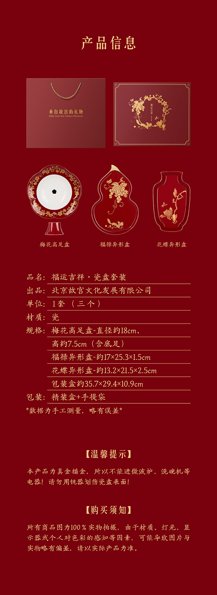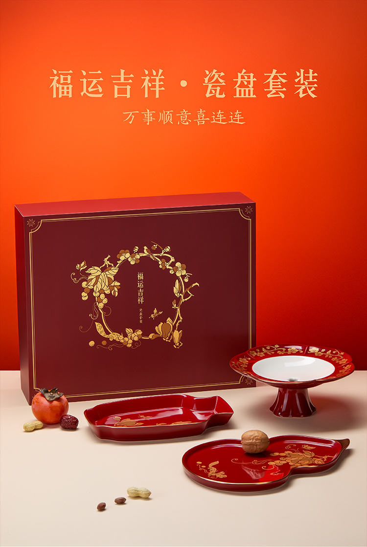 【故宫礼品】福运吉祥瓷盘套装文创果盘餐盘礼盒新年新婚生日礼物