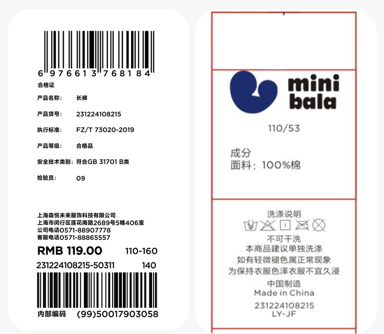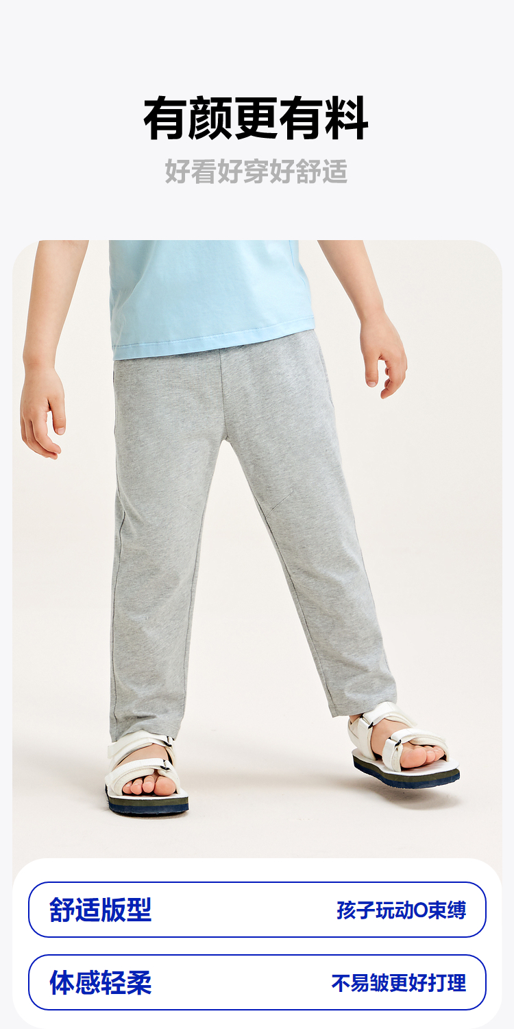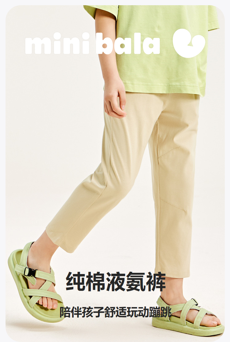 迷你巴拉夏季新款男童女童纯棉长裤透气柔软宝宝运动洋气裤子