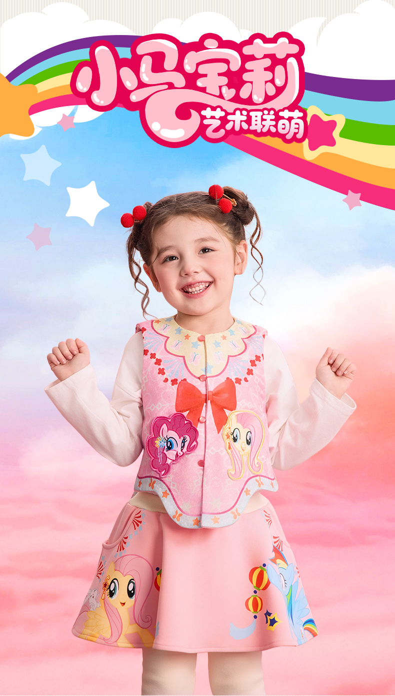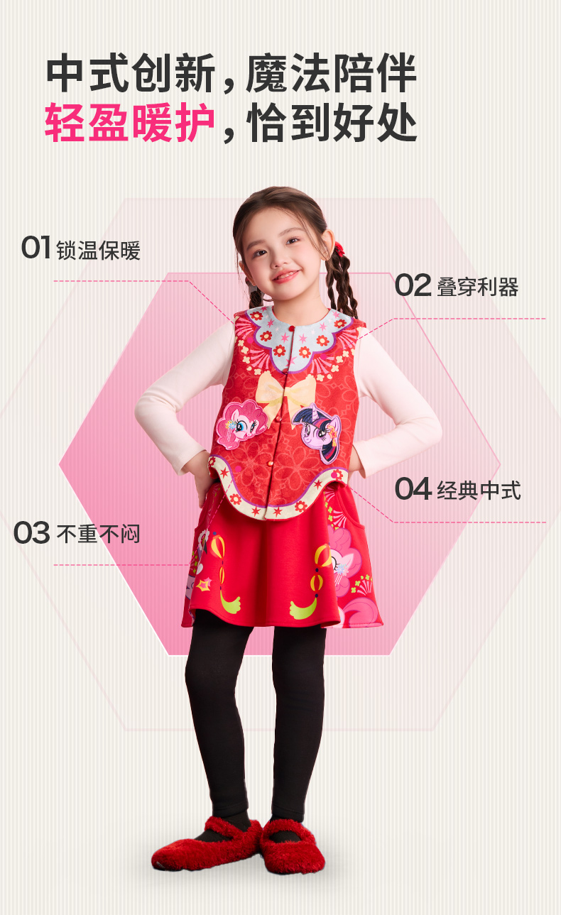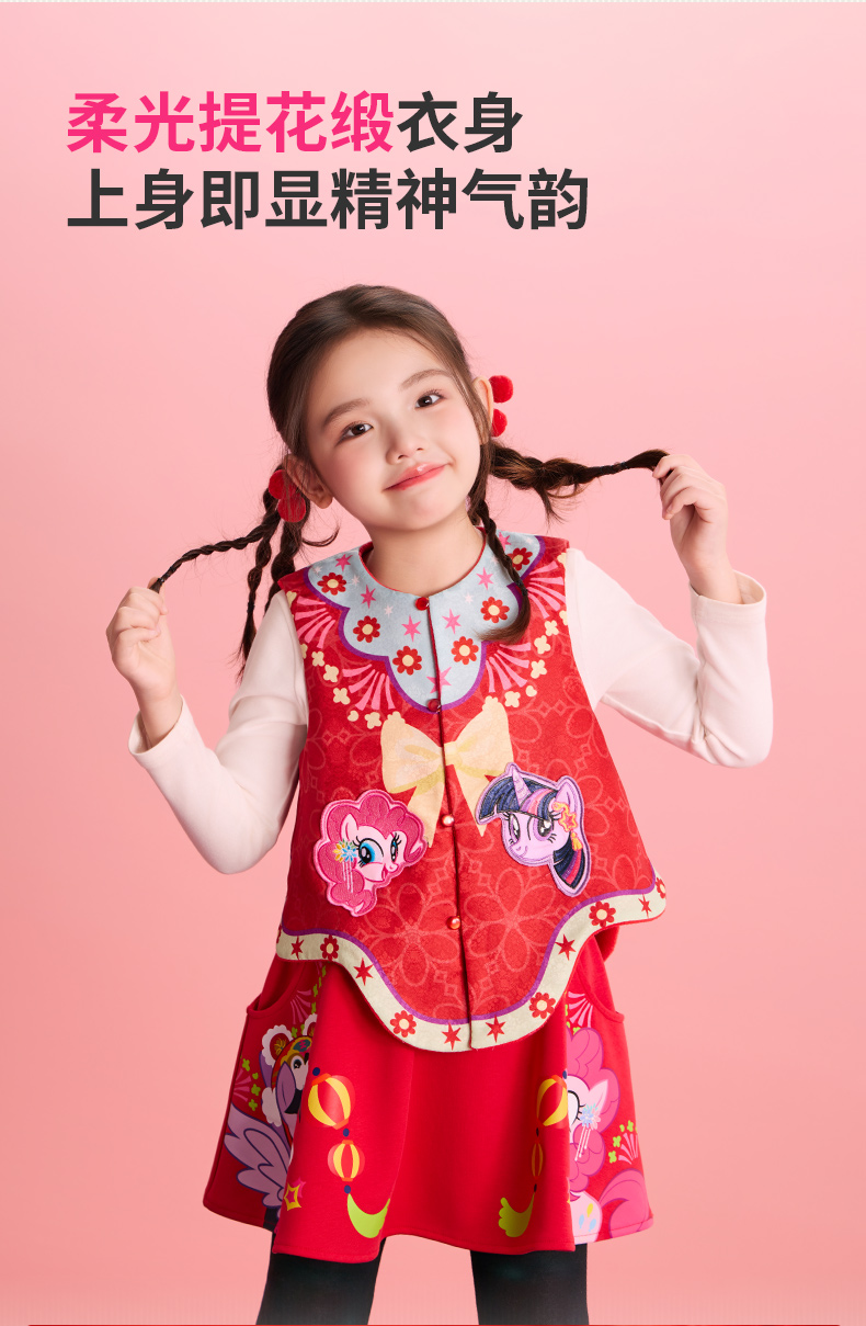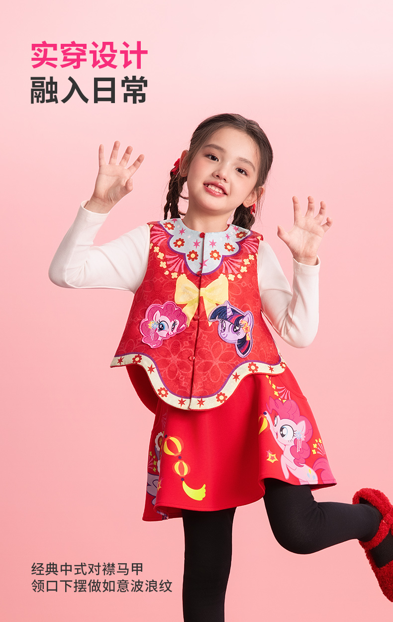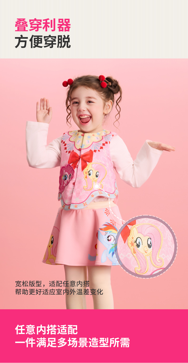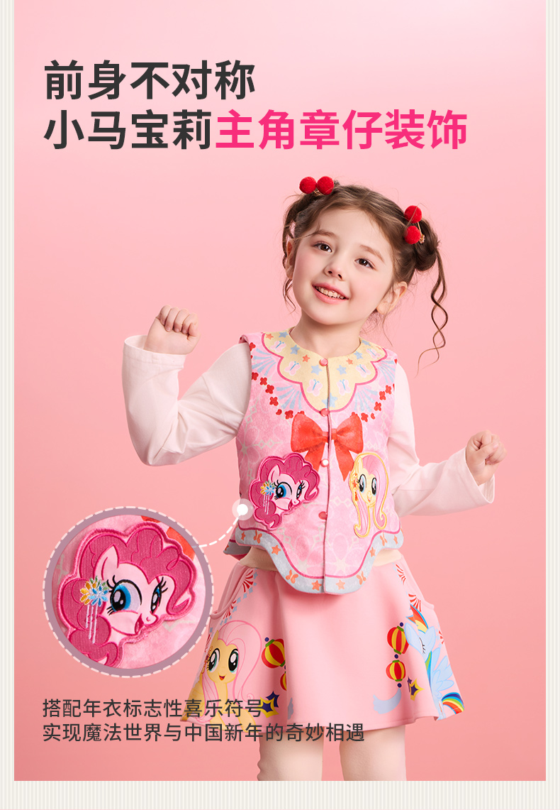 小马宝莉联名年衣童装中式马甲冬季新品女童唐装小马宝莉新年马甲