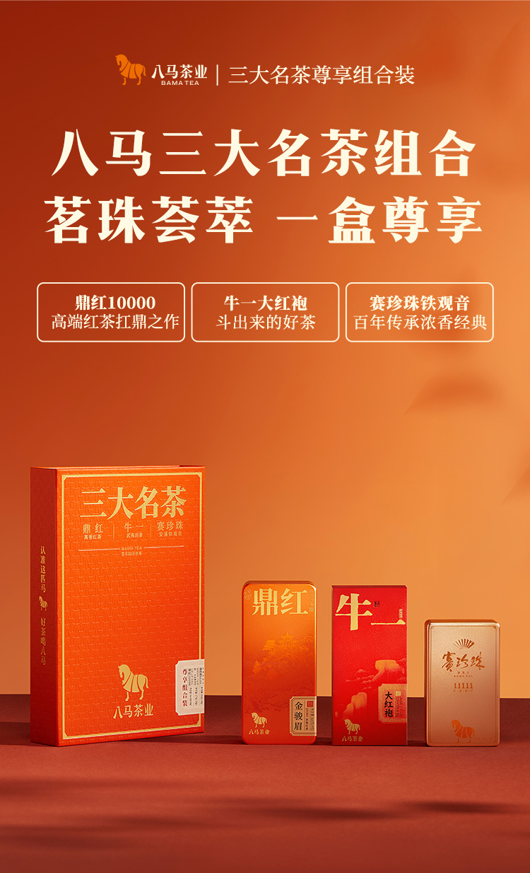 八马茶业·三大名茶尊享礼盒【(鼎红10000金骏眉16.8克(4包)+牛一12800大红袍17克(2包)+赛珍珠11111铁观音25克(3包)】