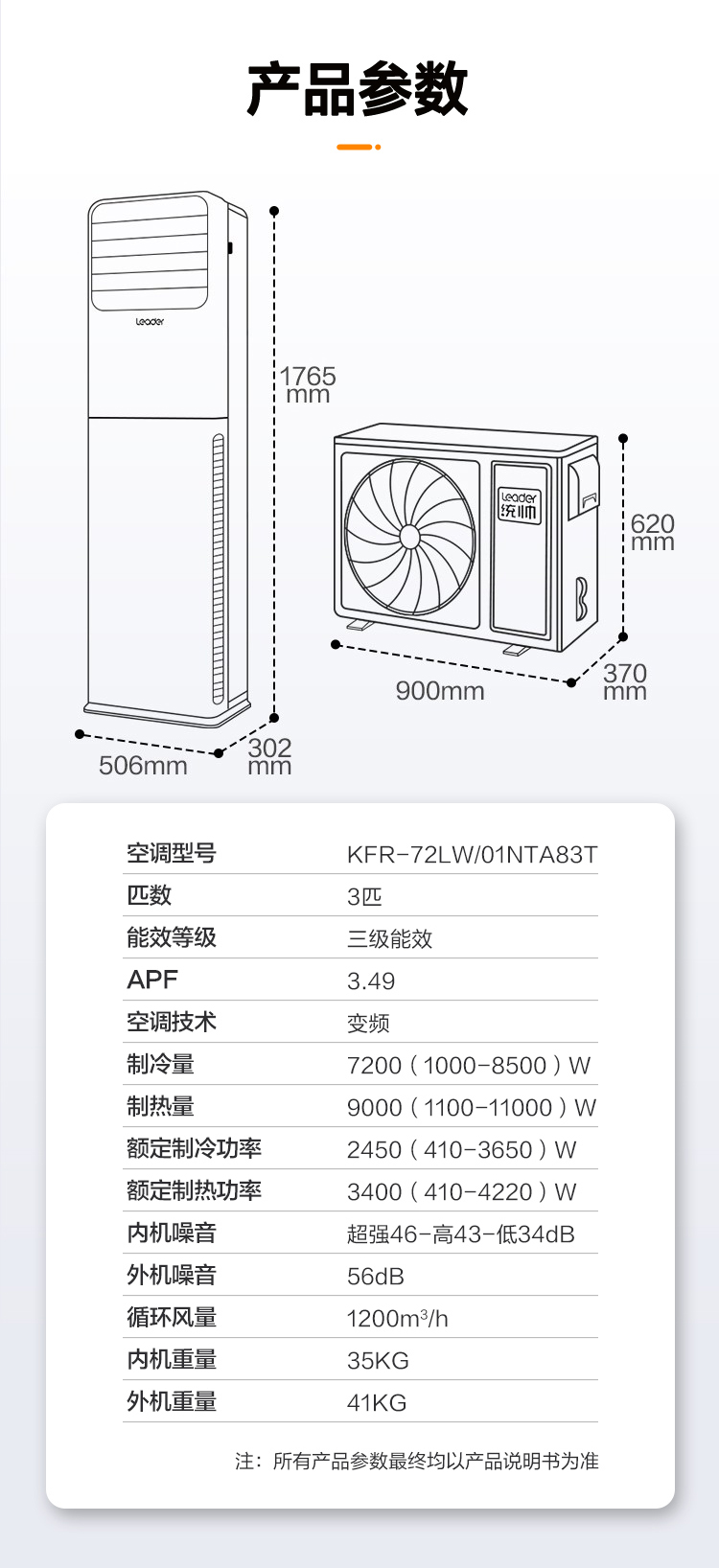 海尔(Haier)统帅海尔出品空调3匹新三级能效柜机智能变频快速冷暖立式家用客厅柜机WiFi智控统帅出品 3匹三级能效KFR-72LW/01NTA83T