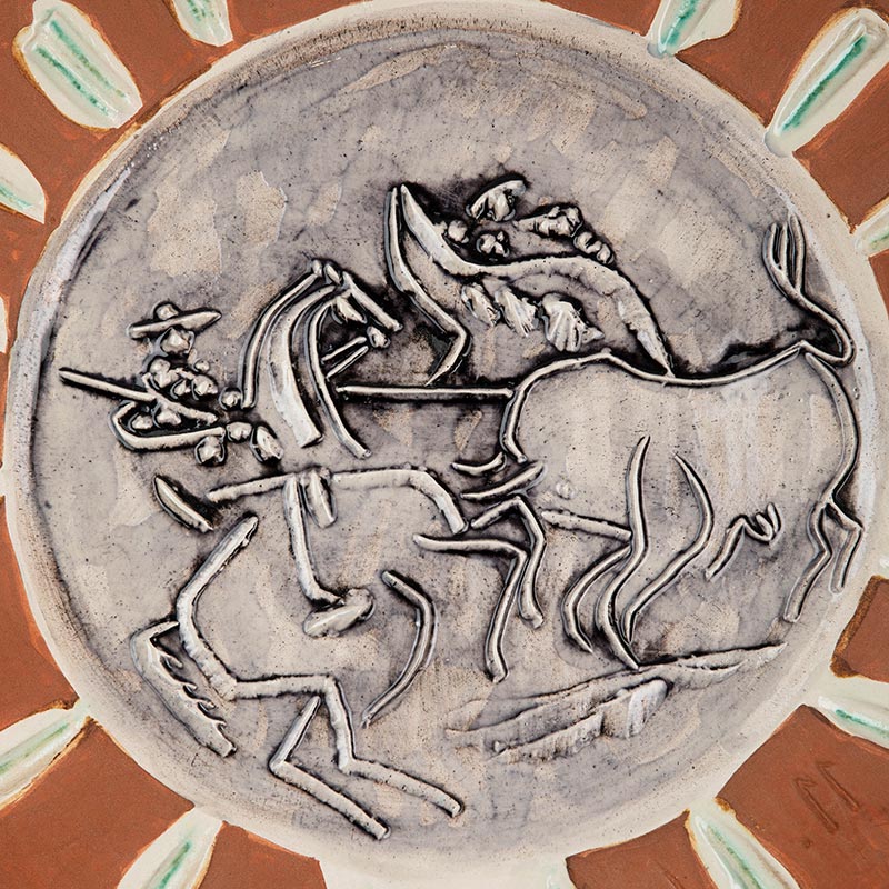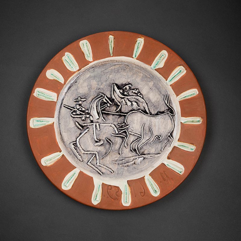 1959年代西班牙艺术巨匠与法国Madoura工坊合作出品限量装饰陶盘「Scène de tauromachie (A.R.410) 斗牛场景 410」