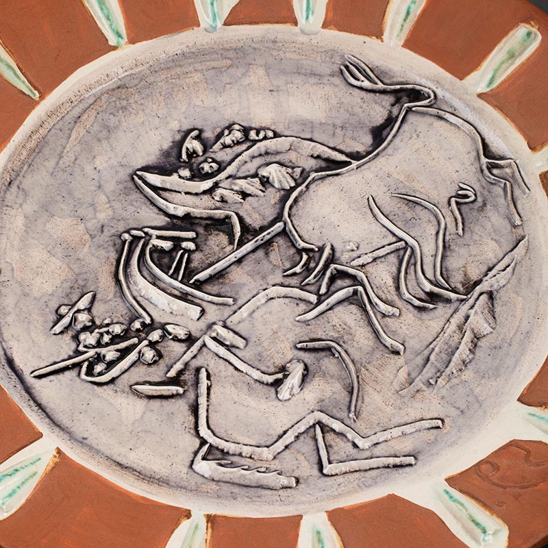 【已售】独角鹿西洋古董 1959年代西班牙艺术巨匠与法国Madoura工坊合作出品限量装饰陶盘「Scène de tauromachie (A.R.410) 斗牛场景 410」