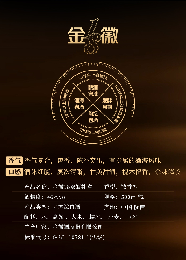 【金徽18双瓶礼盒】金徽酒 46度金徽18礼盒 浓香型白酒