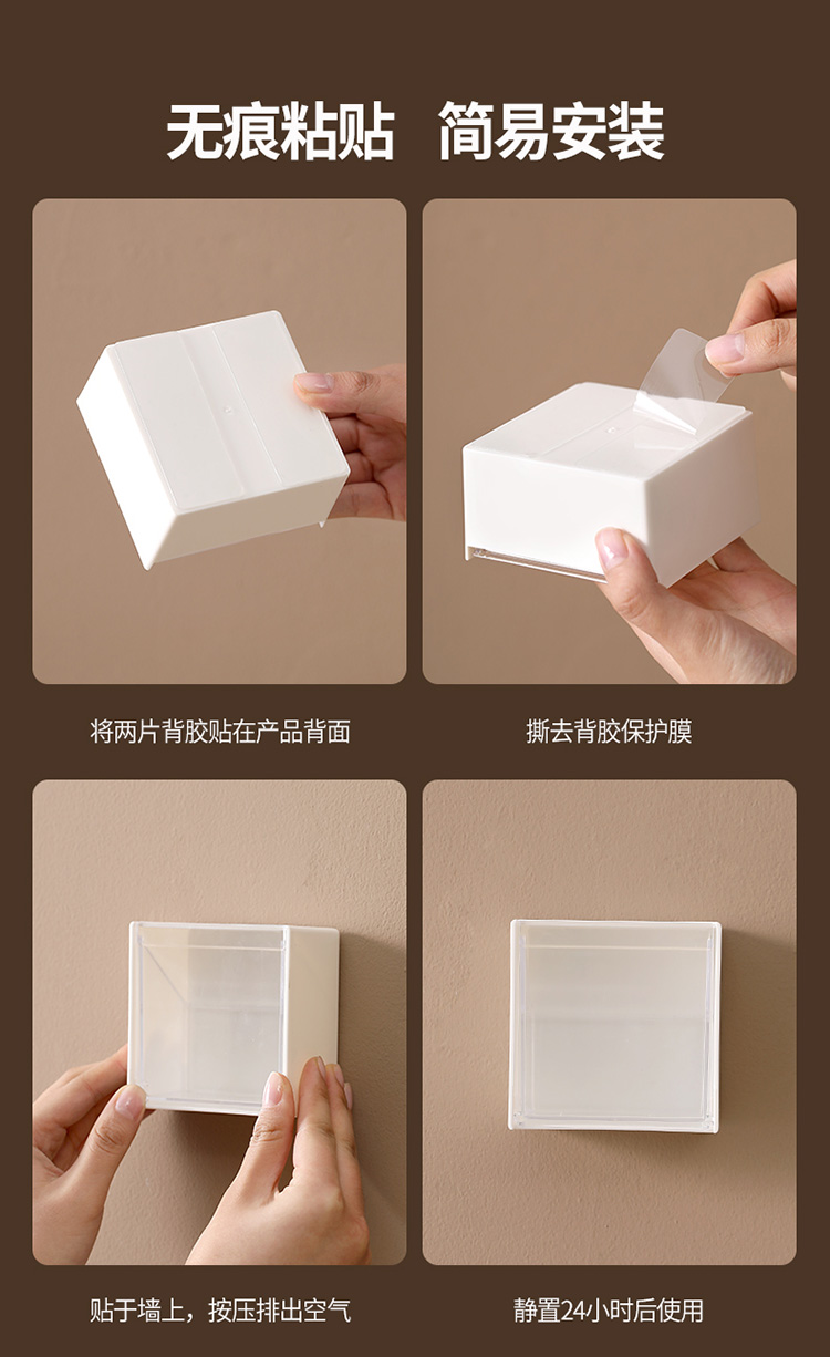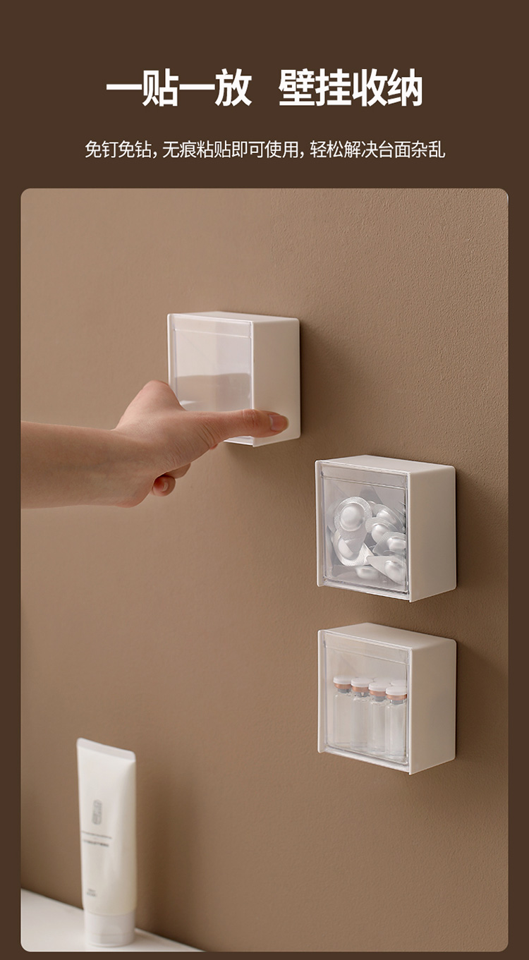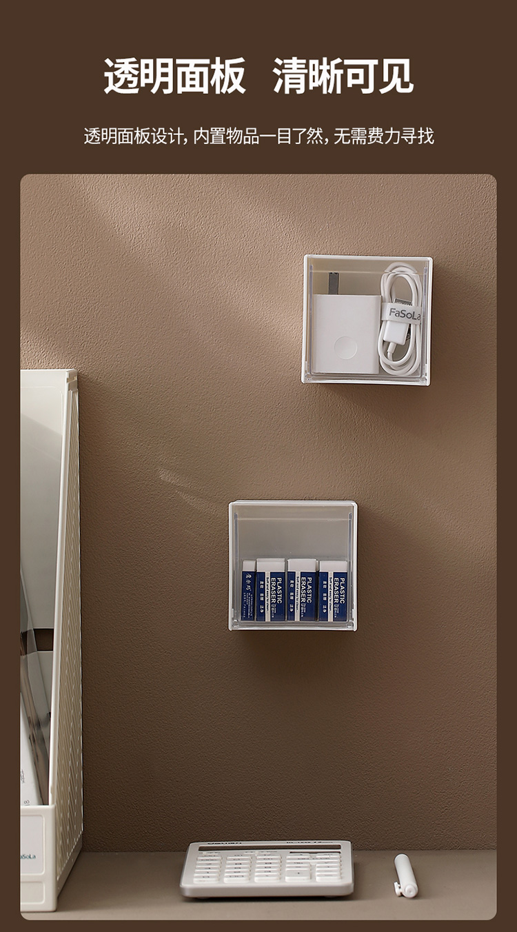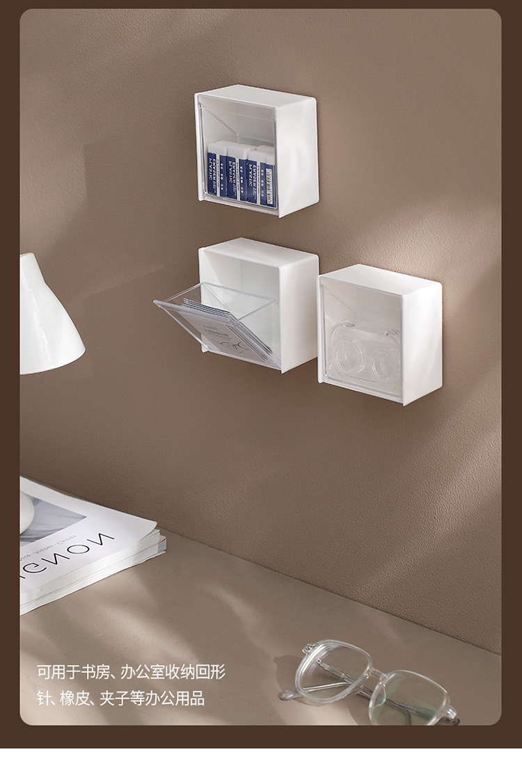 FaSoLa壁挂式收纳盒2个 宿舍免打孔翻盖储物盒化妆棉签头绳发圈迷你杂物盒