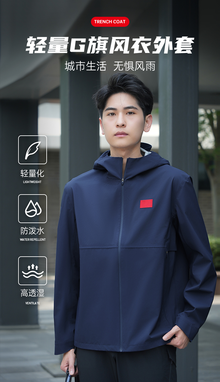 【春秋轻量风衣外套】防泼水连帽通勤外套压胶长袖休闲服 F001
