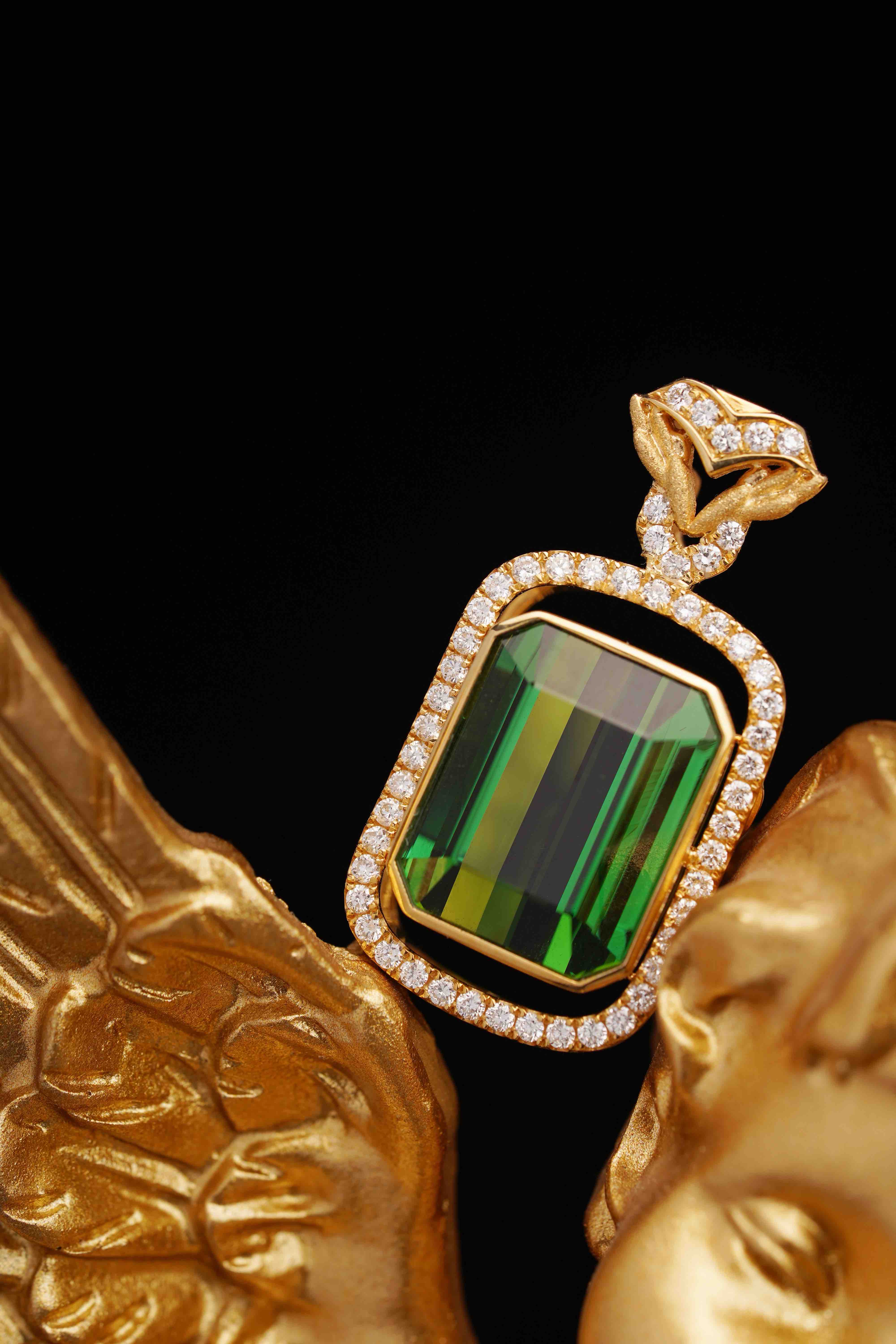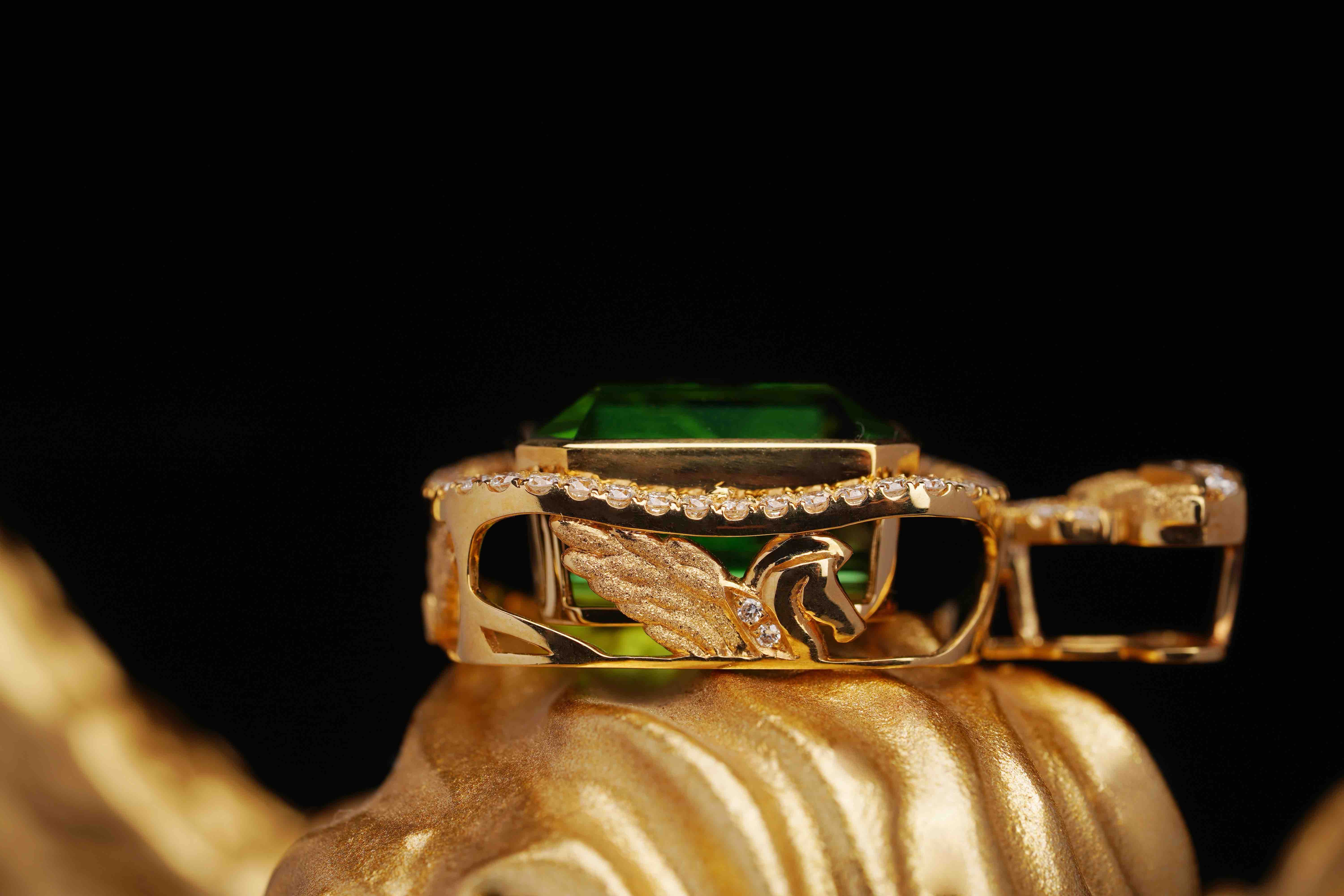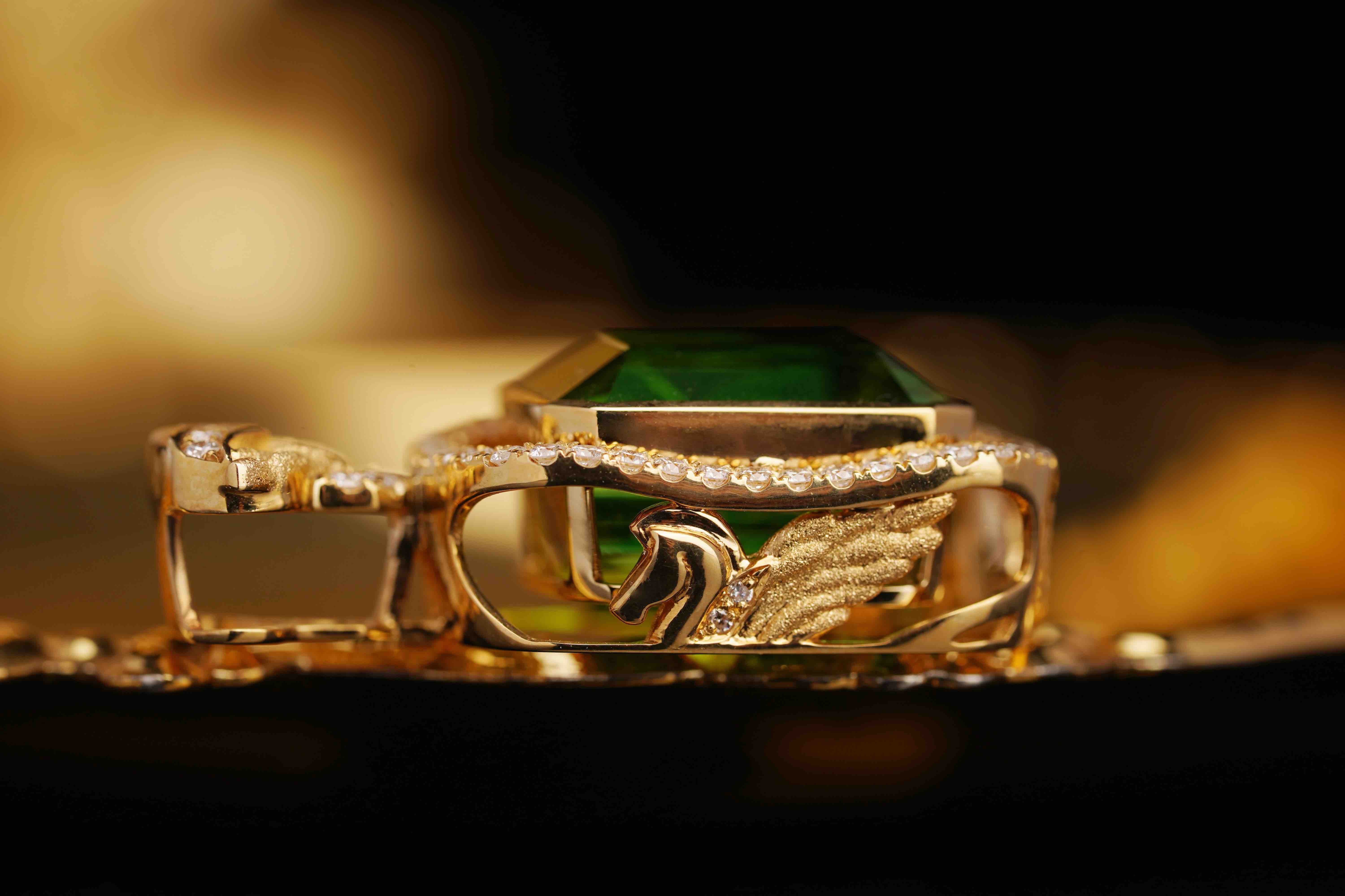 惊艳的8.69克拉,利用碧玺的厚度在侧面设计了【飞马】