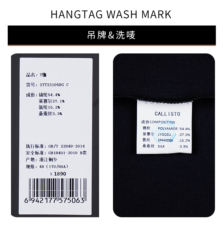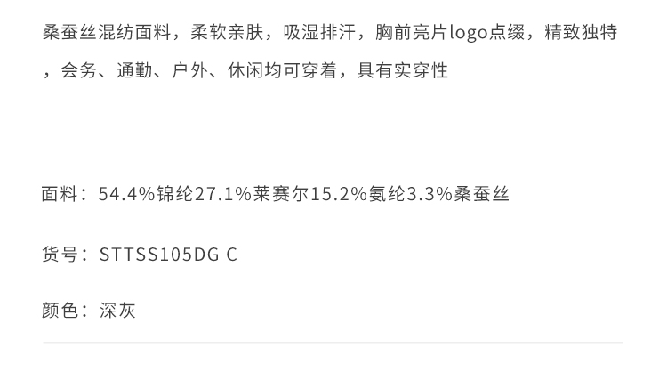 callisto深灰锦纶混纺T恤 STTSS105C