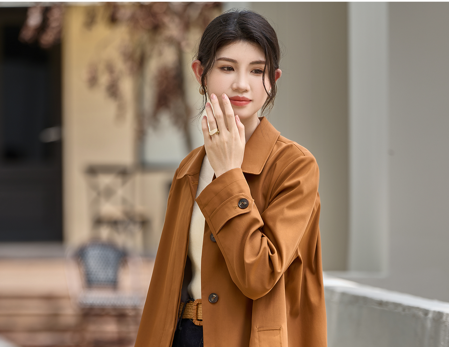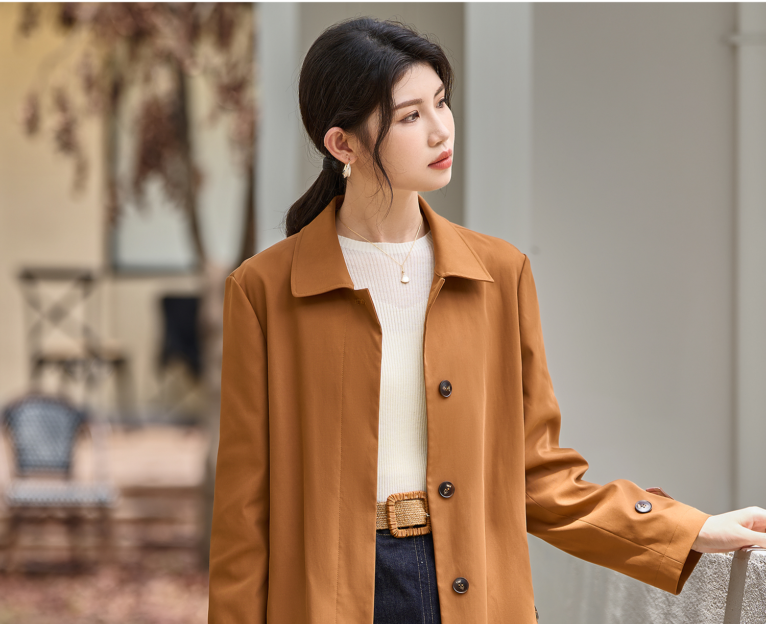 剩L/XL 米思阳2026春季新款简约时尚通勤风衣外套正肩直筒显气质外套3087