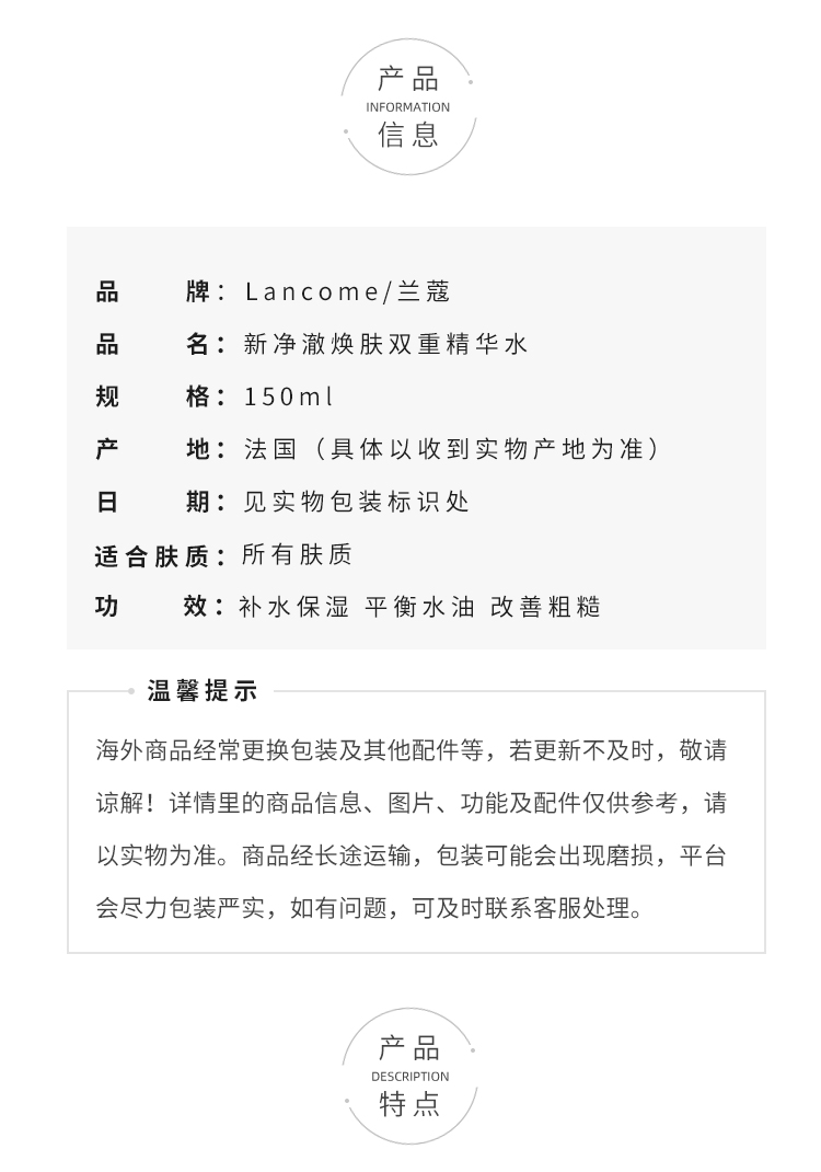 兰蔻极光水 混油皮控油补水保湿精华水 平衡水油改善粗糙提亮 150ml【CDF】