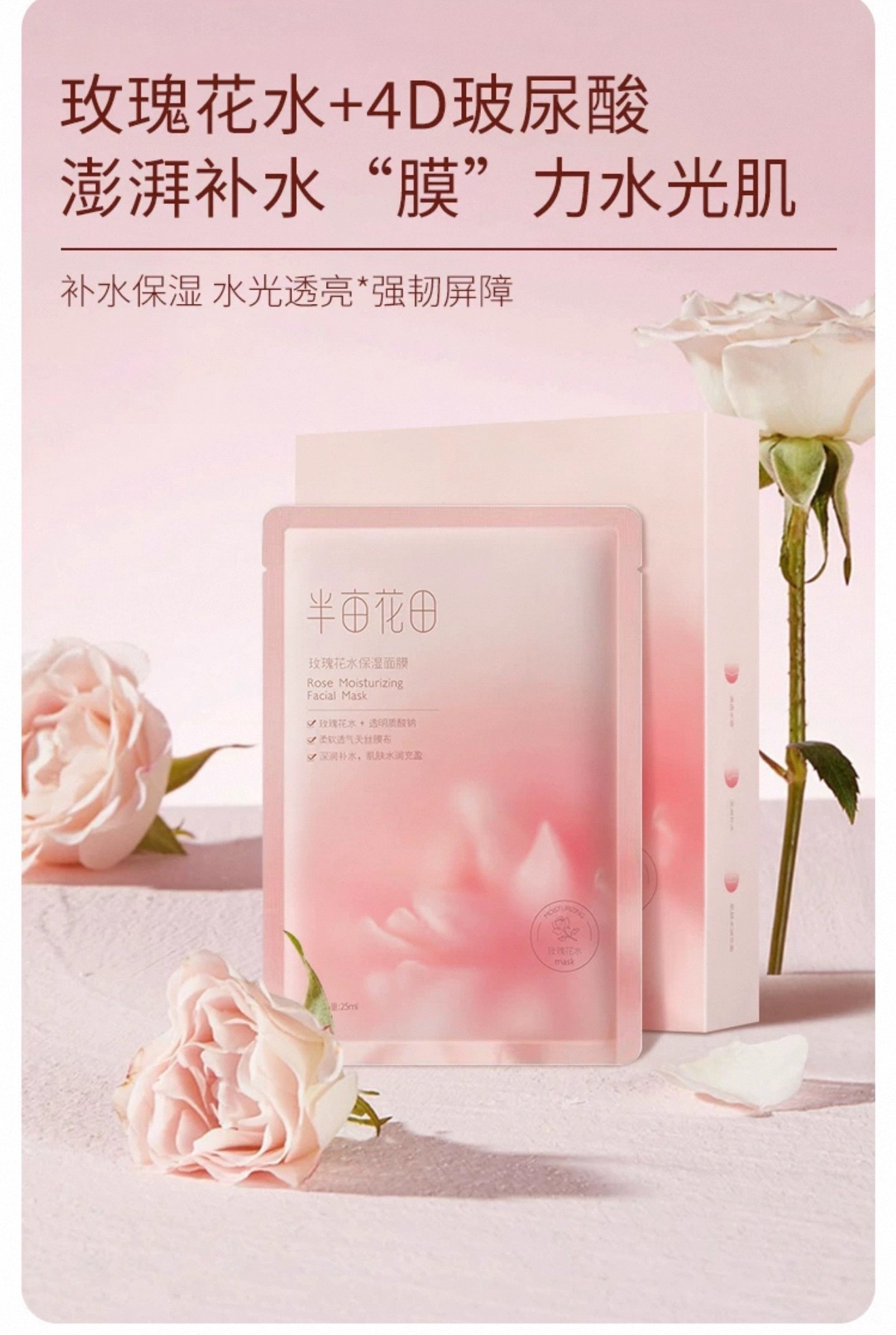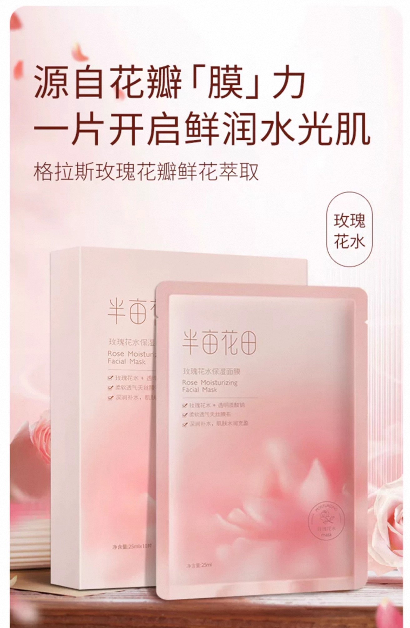 半亩花田玫瑰花水保湿面膜10片送雪完美氨基酸洁面乳100g