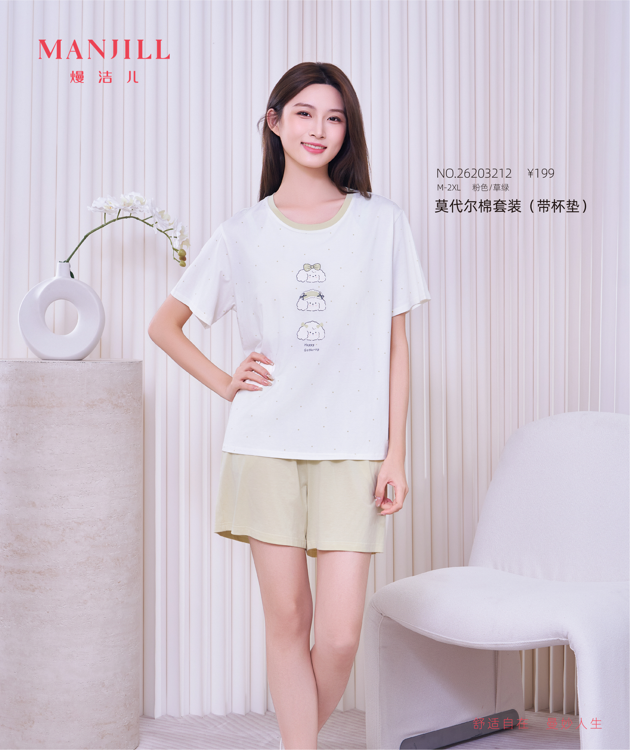 【商场同款】熳洁儿带杯垫家居服莫代尔棉短袖短裤套装撞色26203212