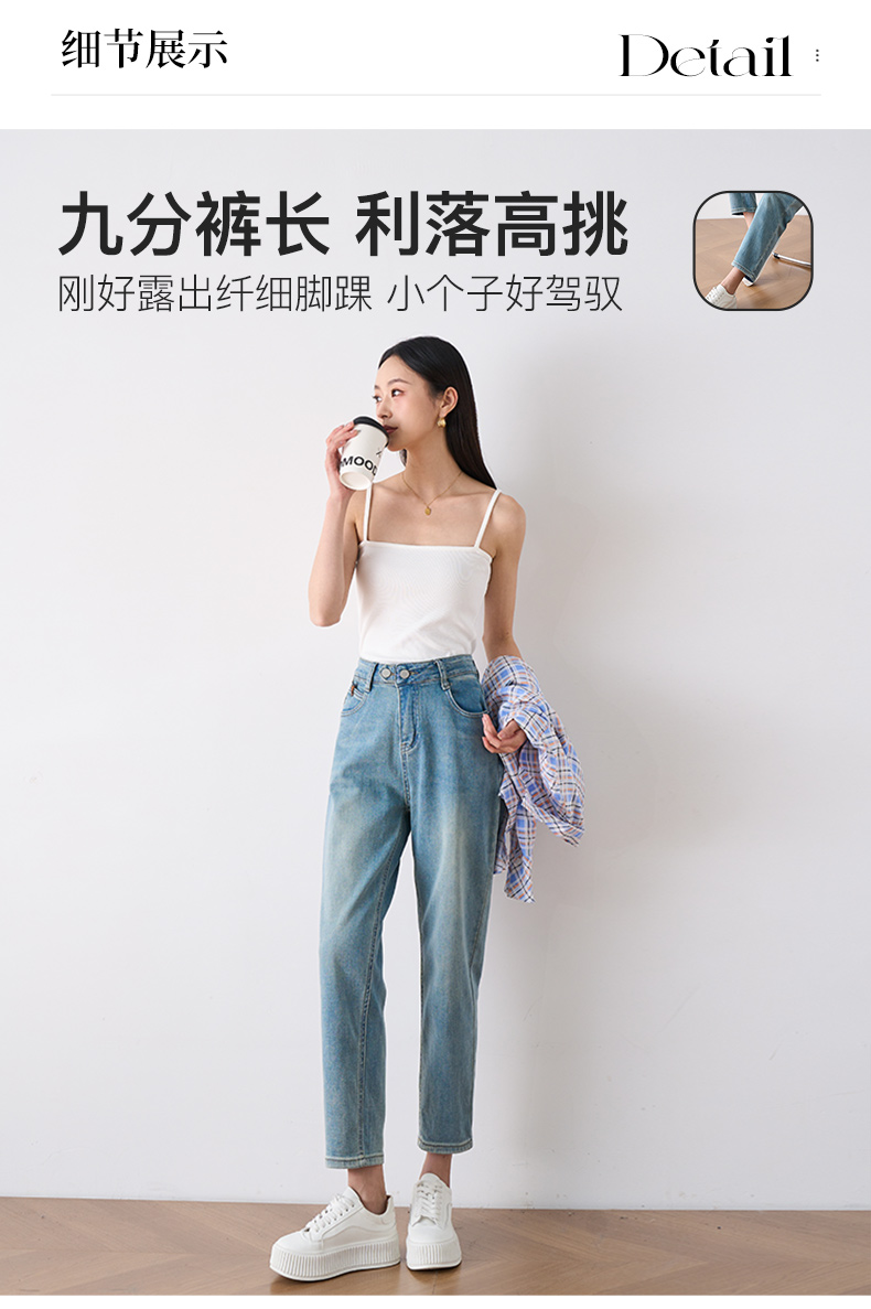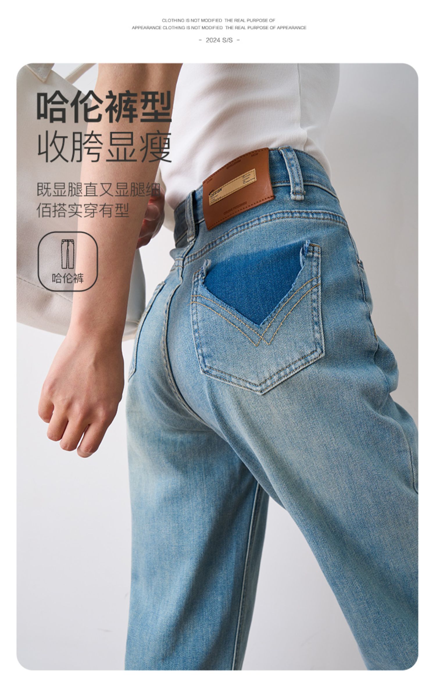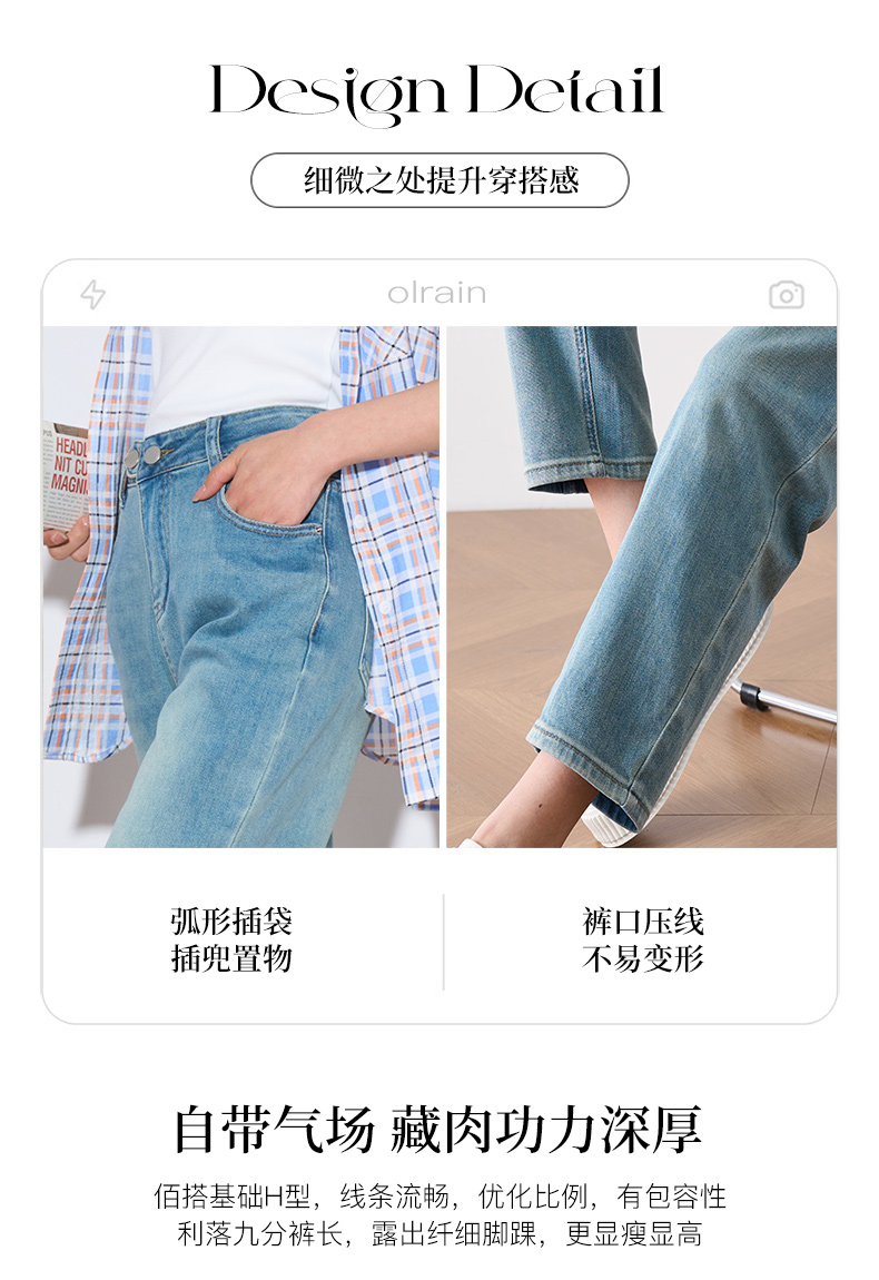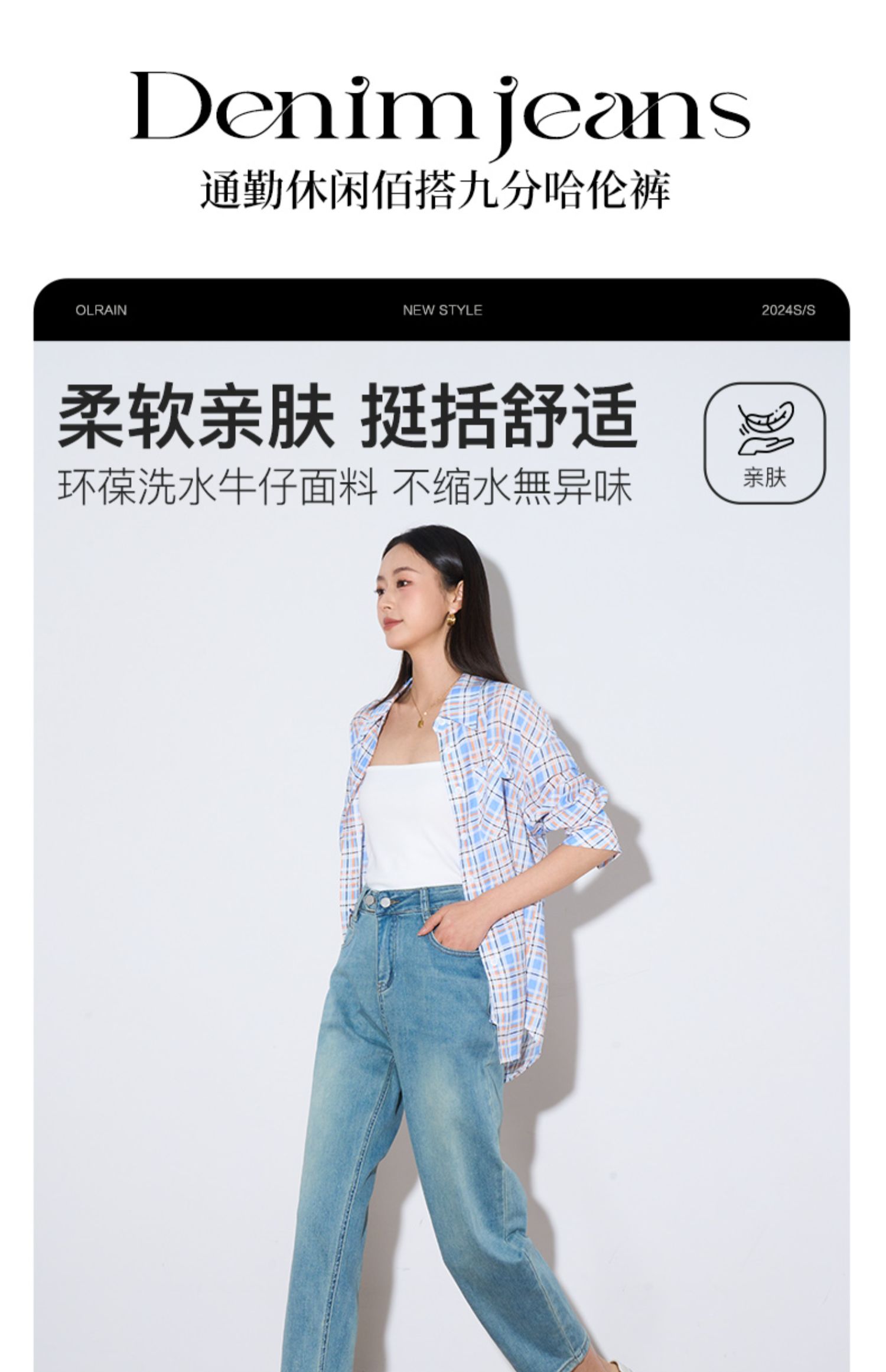 OLrain欧芮儿蓝色牛仔裤女夏季2024年新款通勤休闲百搭九分哈伦裤