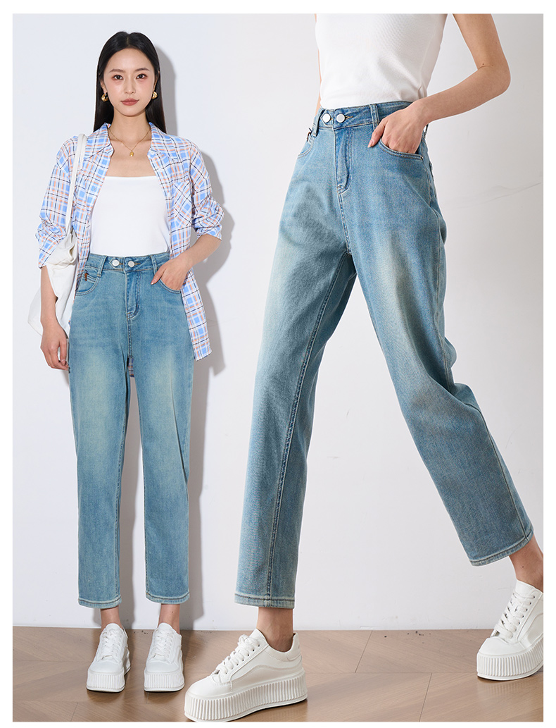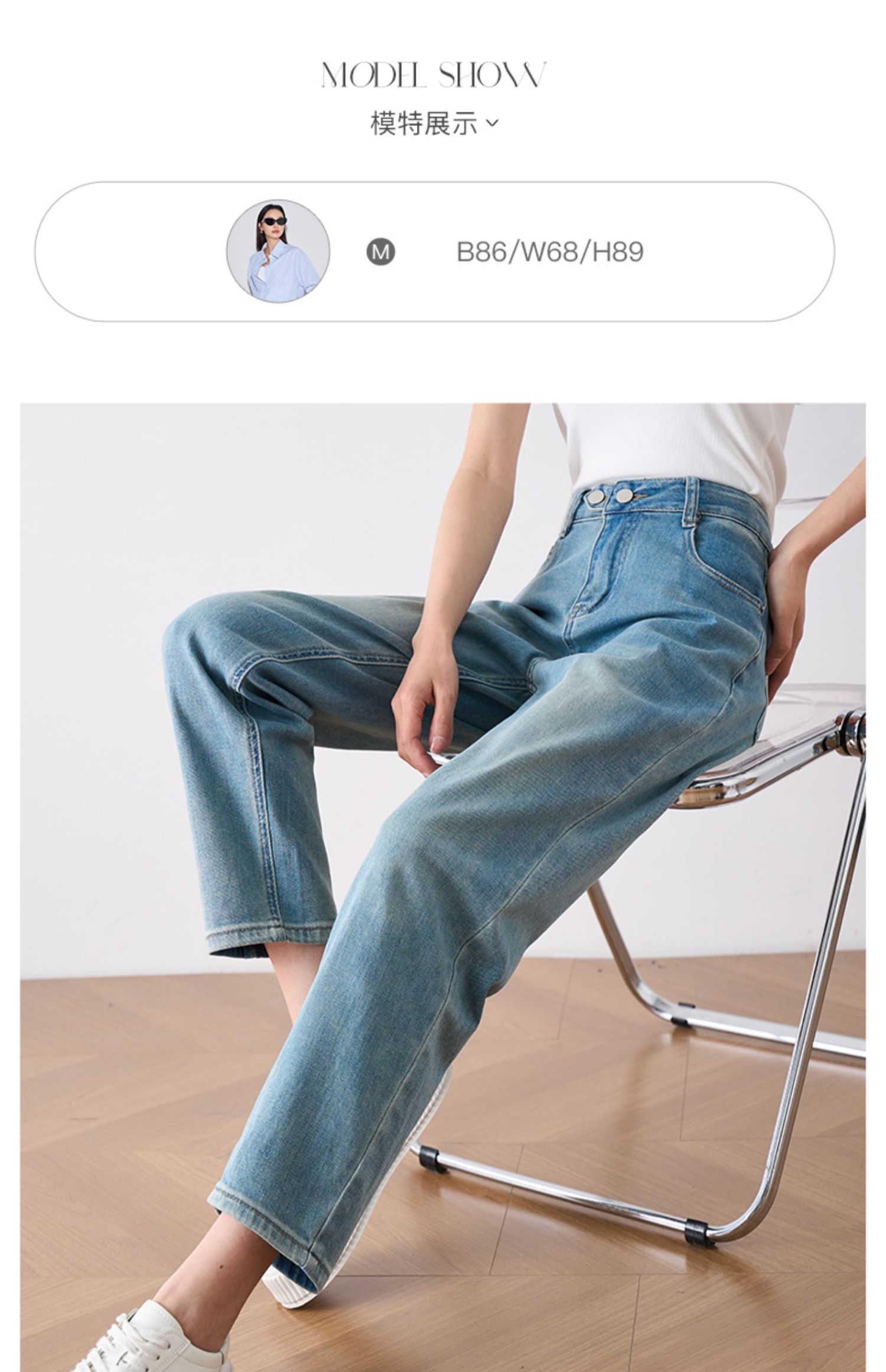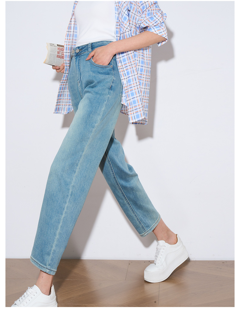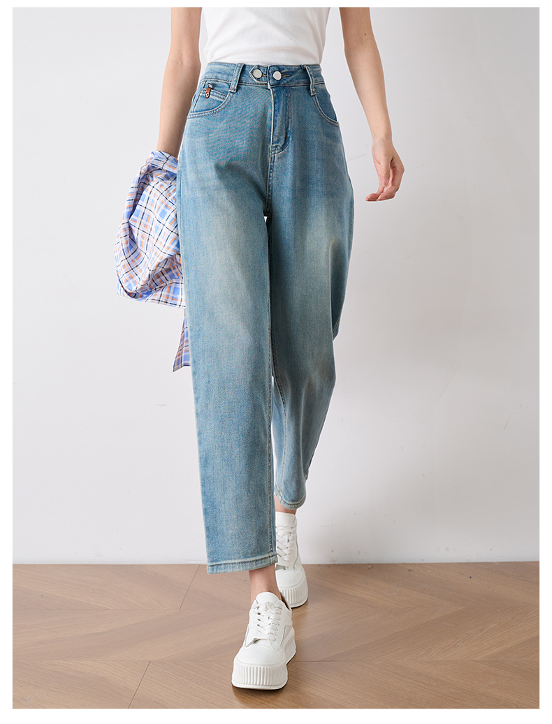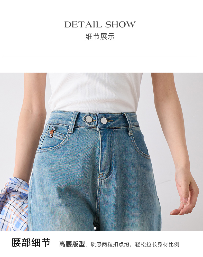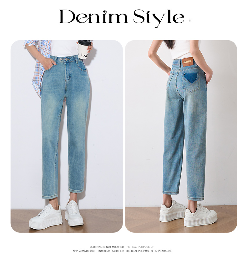 OLrain欧芮儿蓝色牛仔裤女夏季2024年新款通勤休闲百搭九分哈伦裤