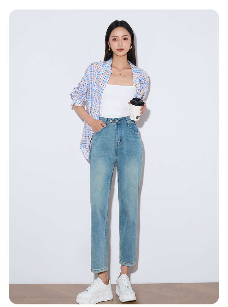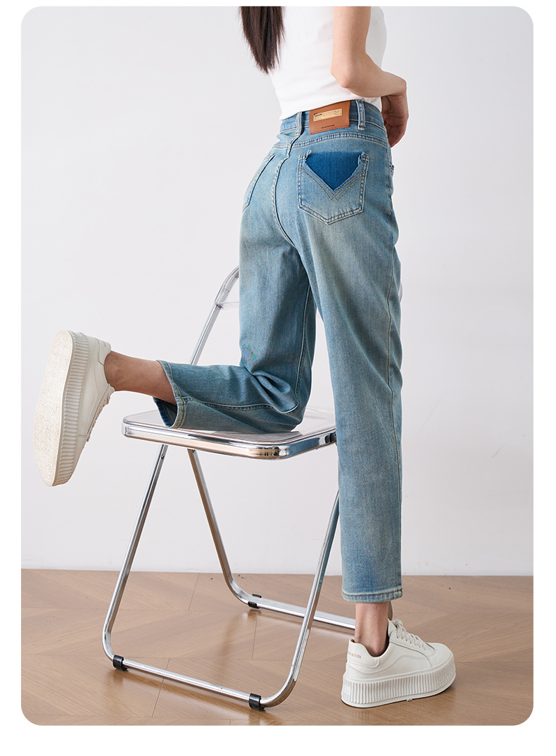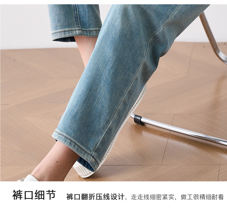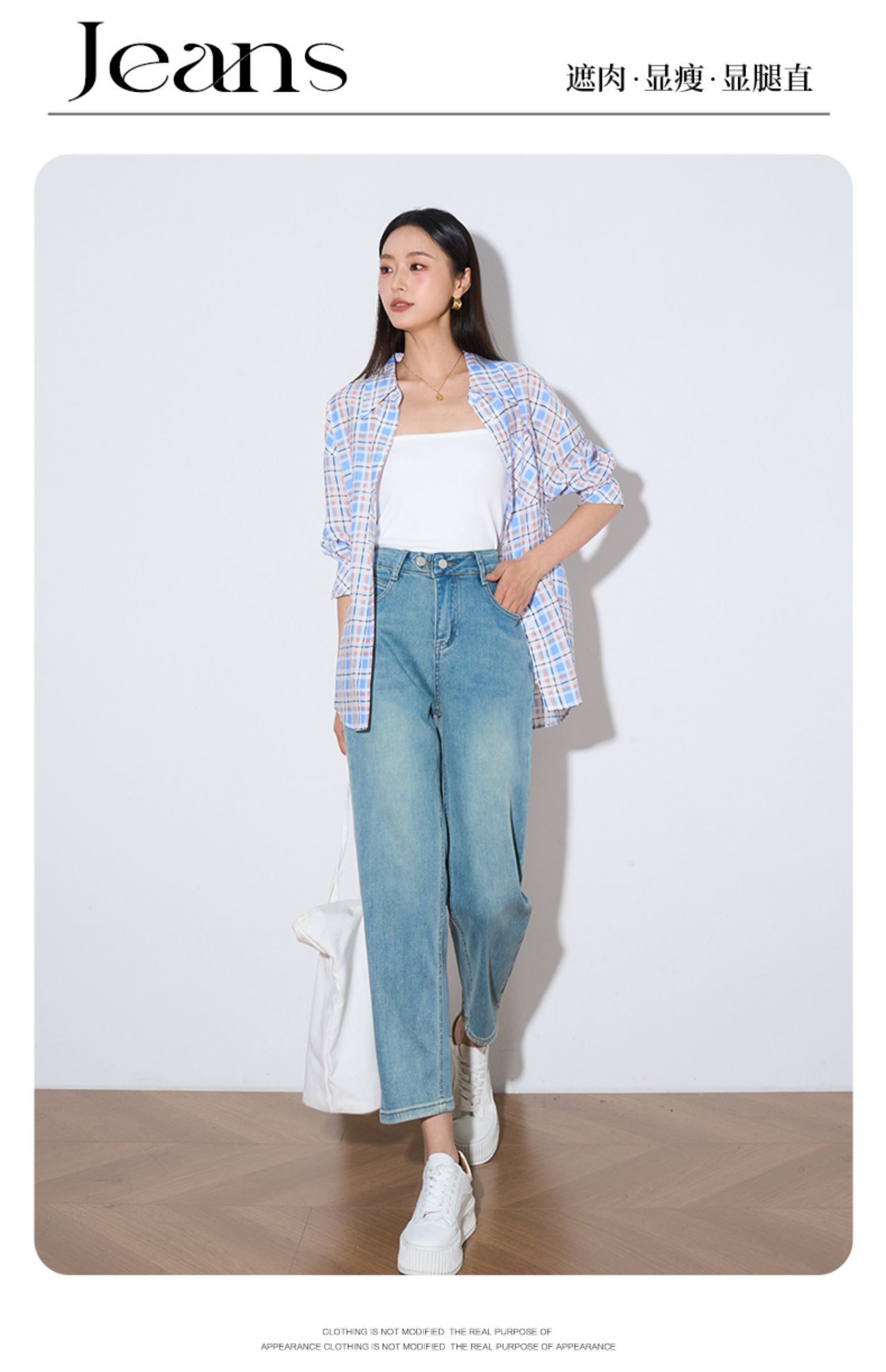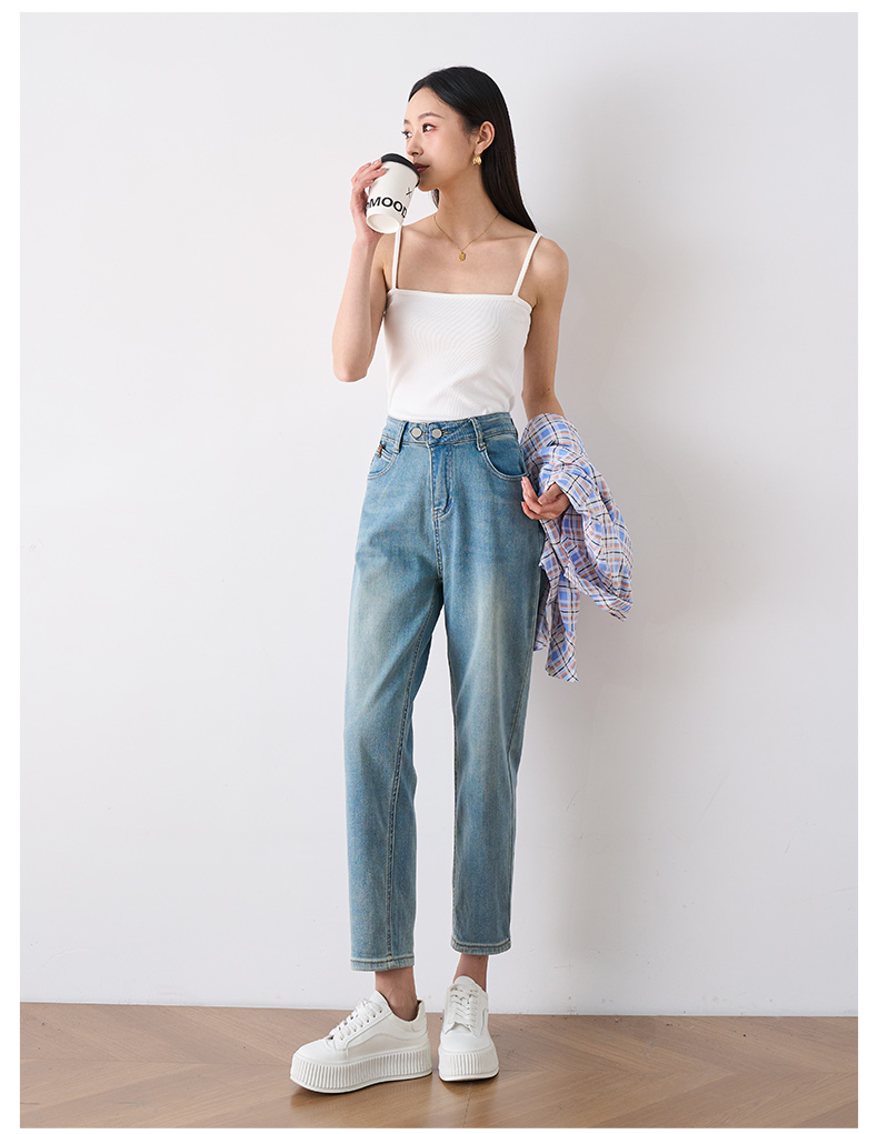 OLrain欧芮儿蓝色牛仔裤女夏季2024年新款通勤休闲百搭九分哈伦裤