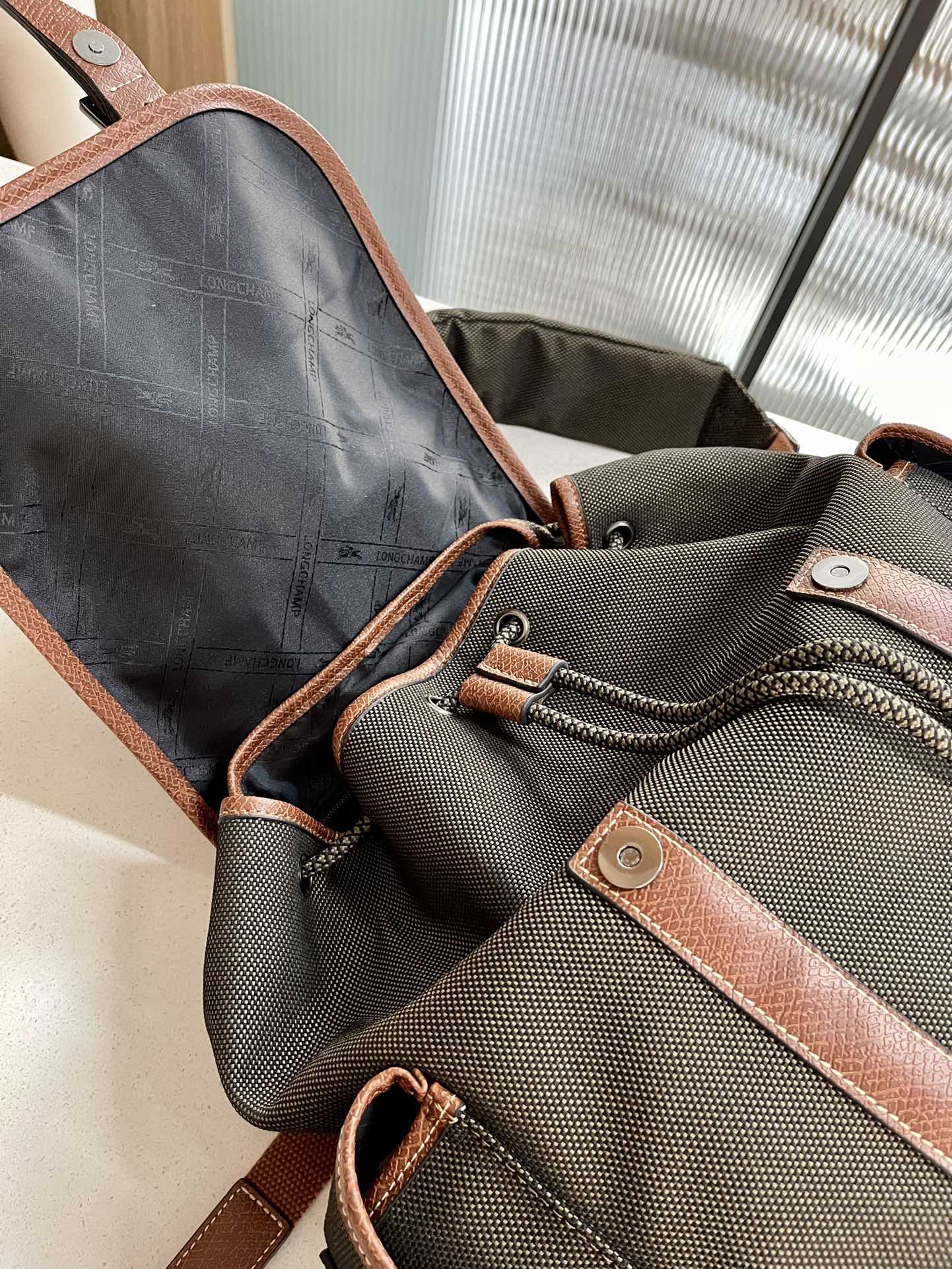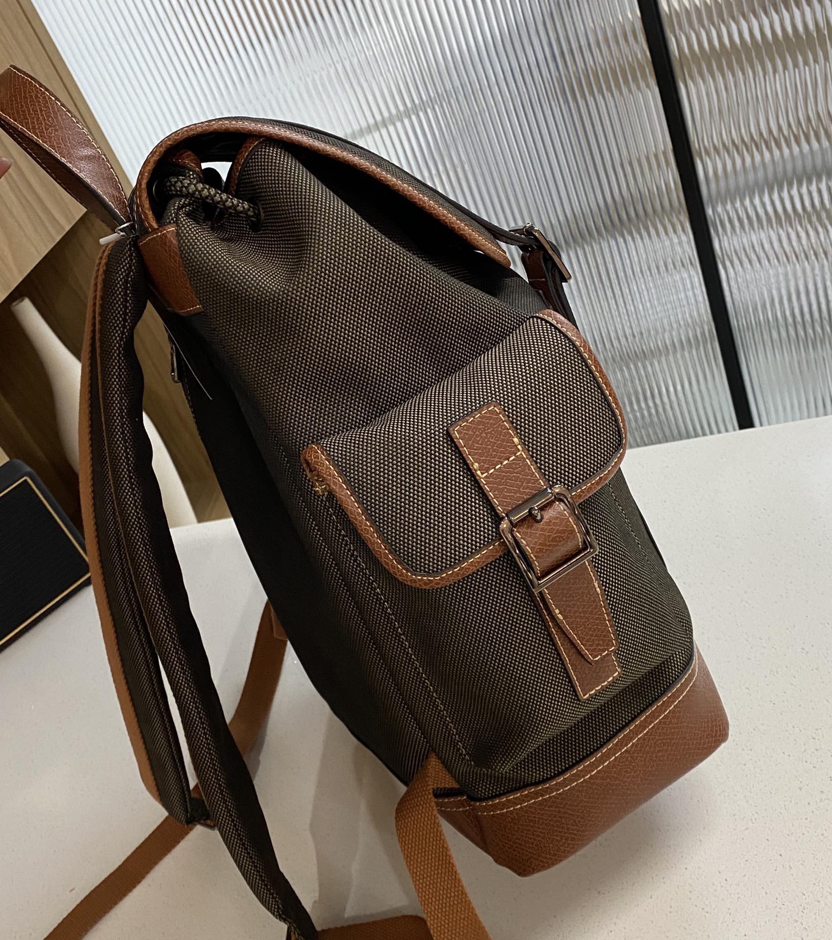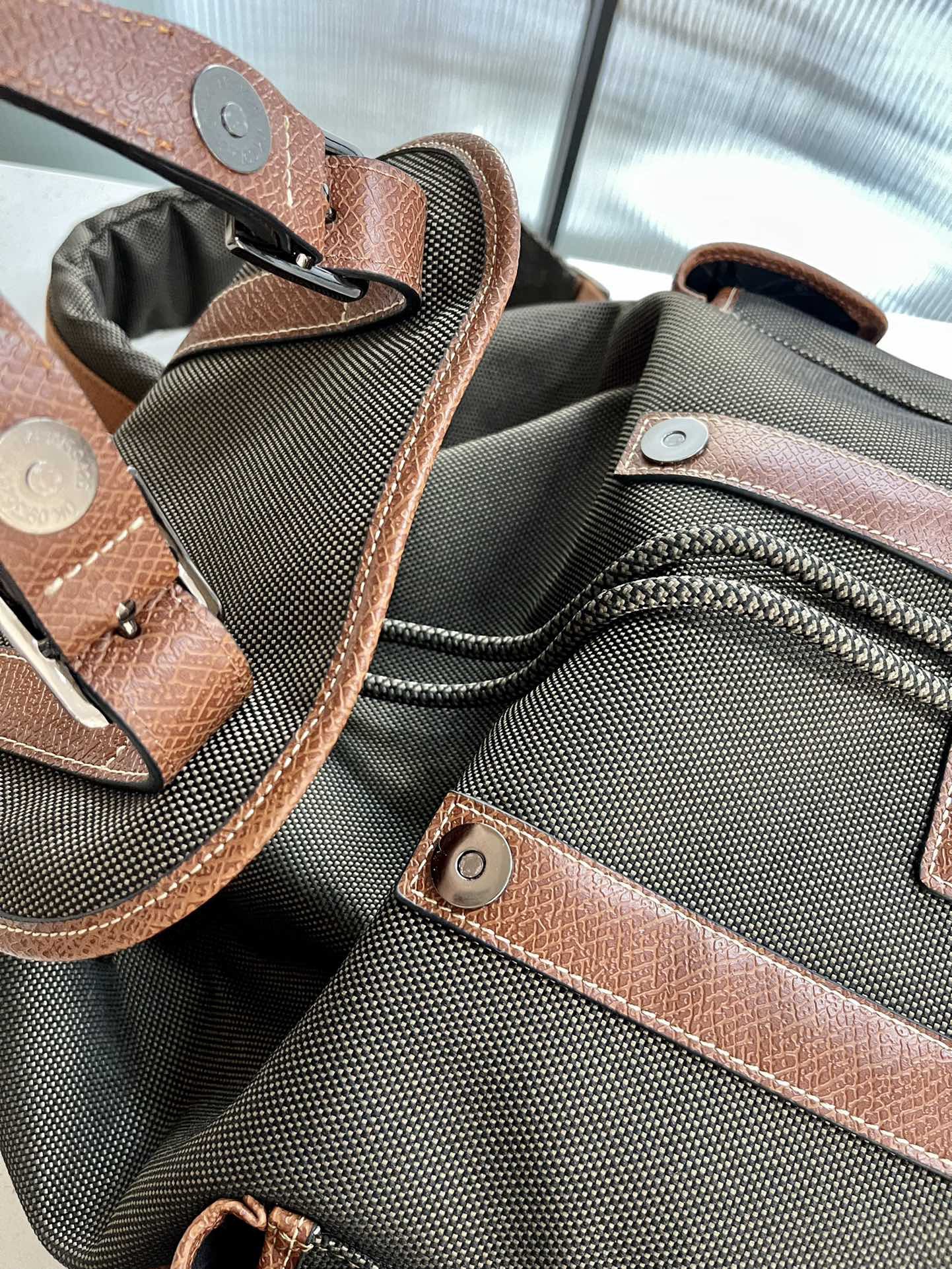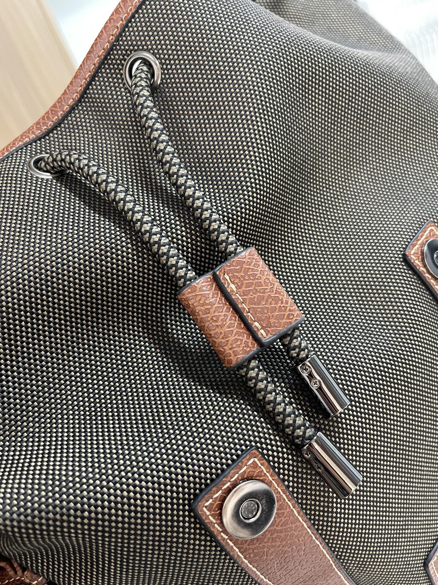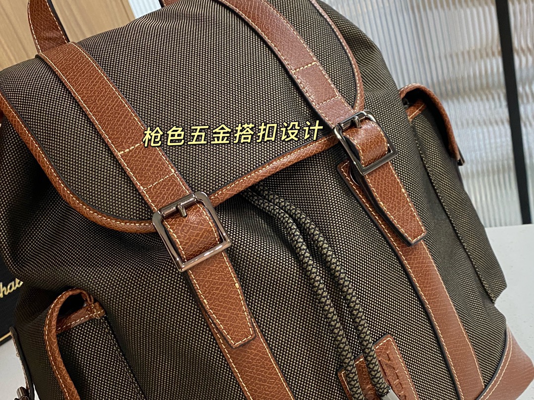 帆布+牛皮,品牌独有的皮料。光皮,哑光,有点磨砂的感觉,颗粒复古感上手也很有质感。