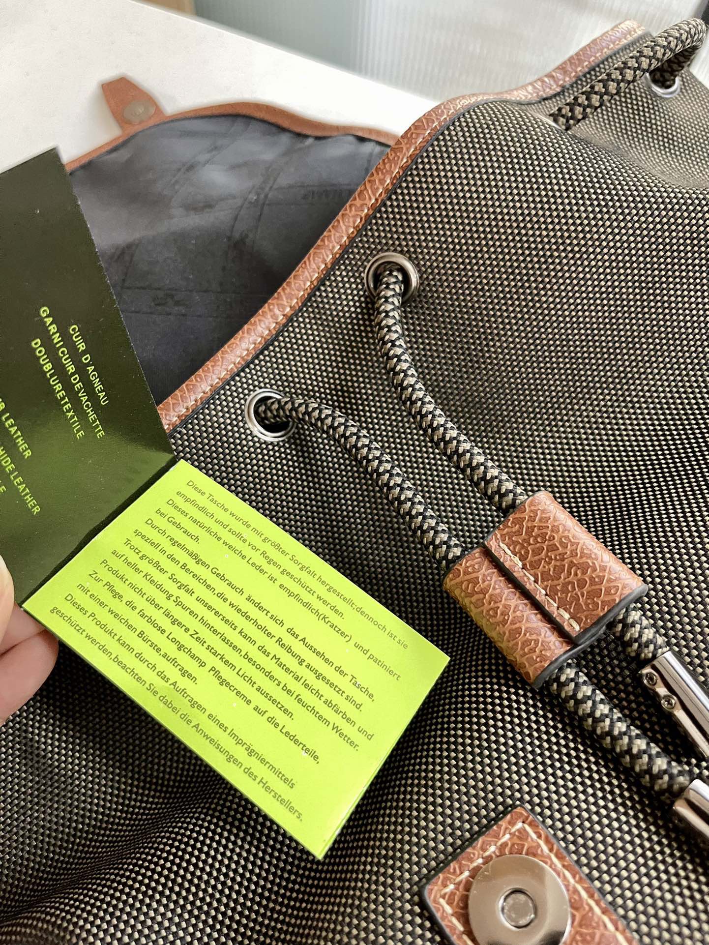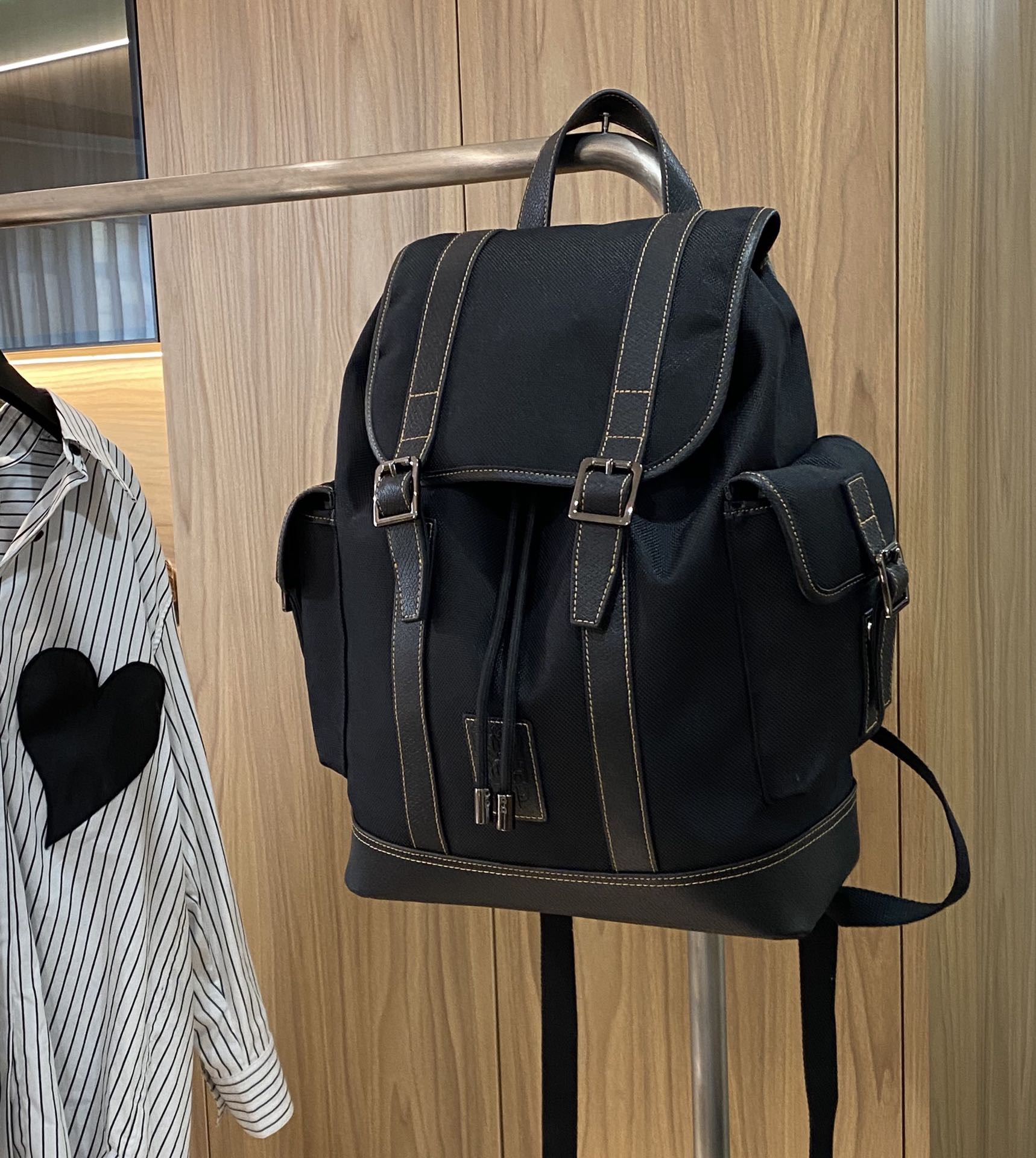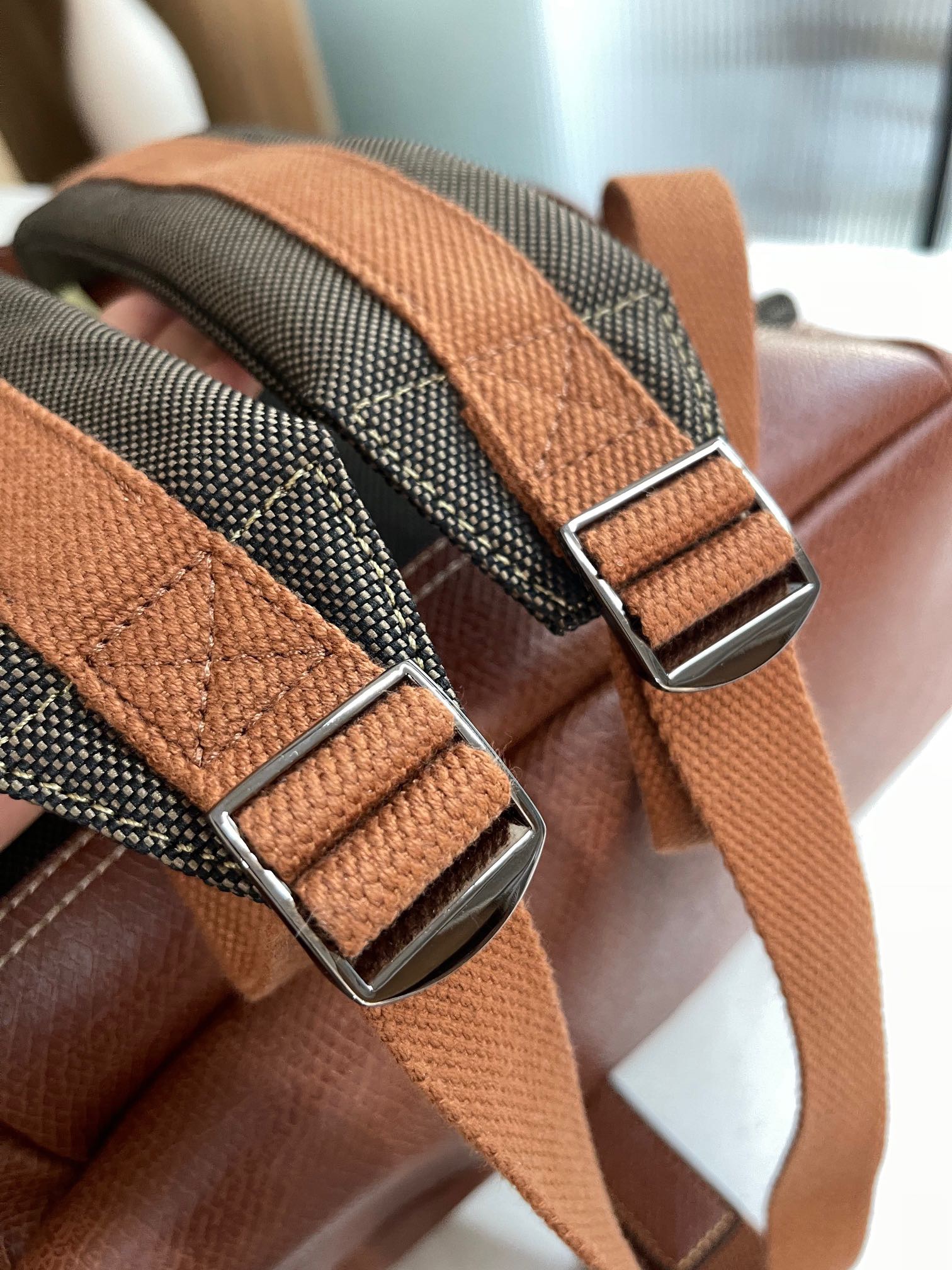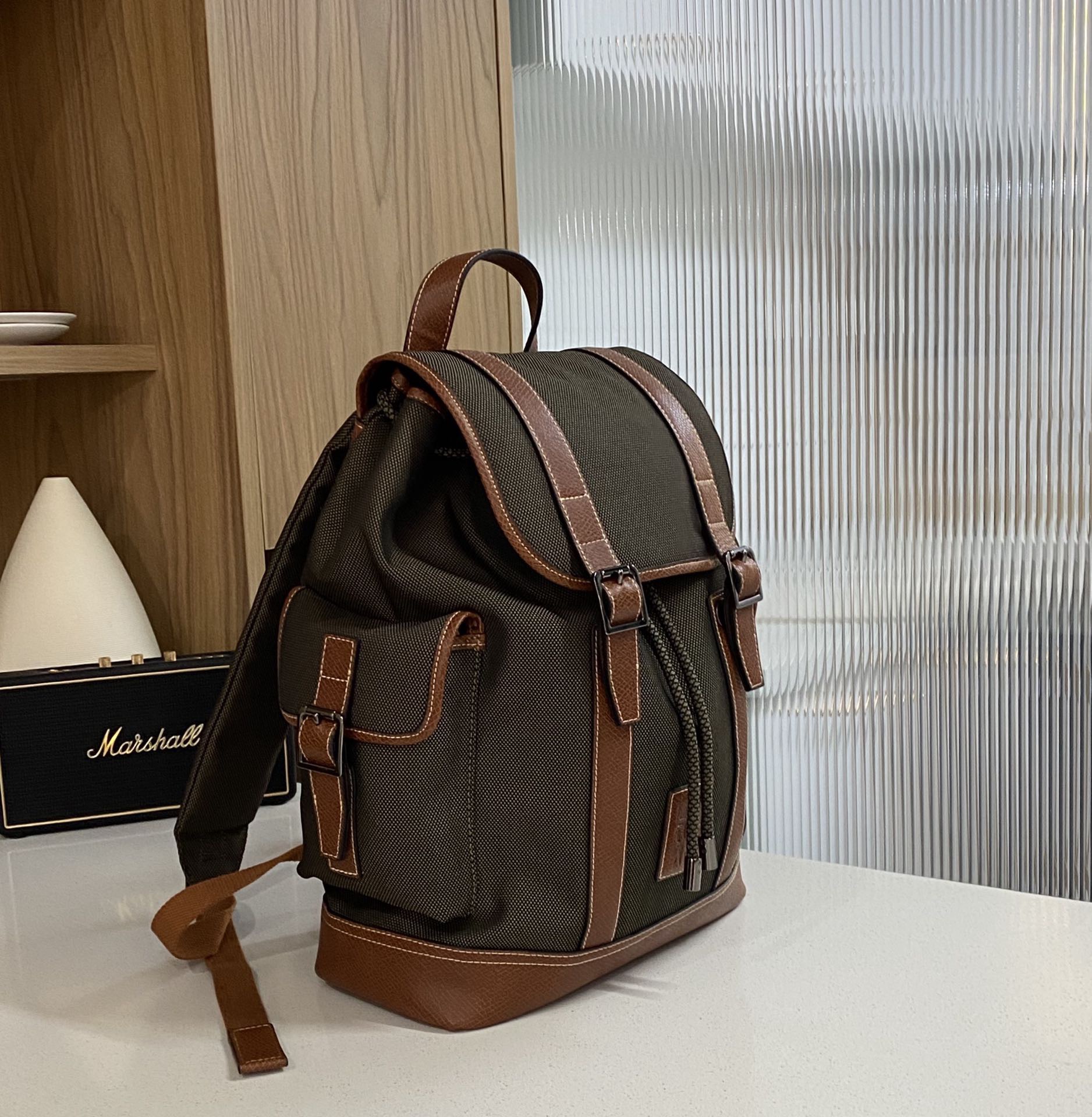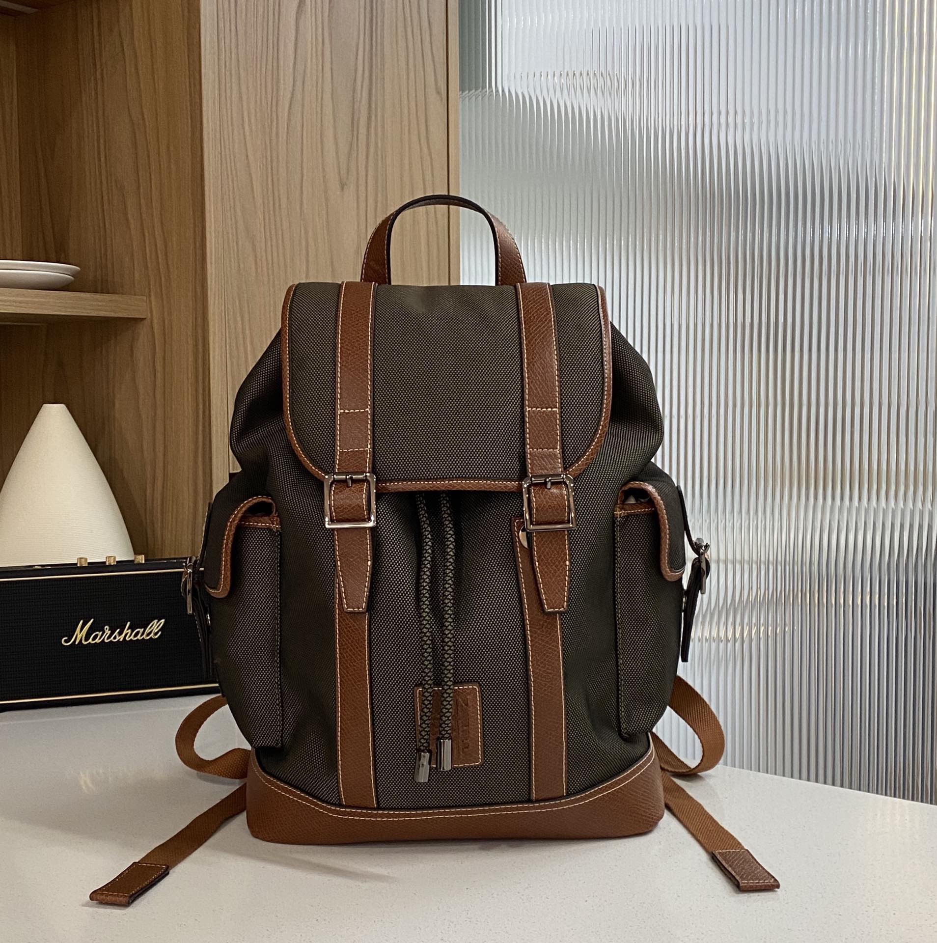 帆布+牛皮,品牌独有的皮料。光皮,哑光,有点磨砂的感觉,颗粒复古感上手也很有质感。