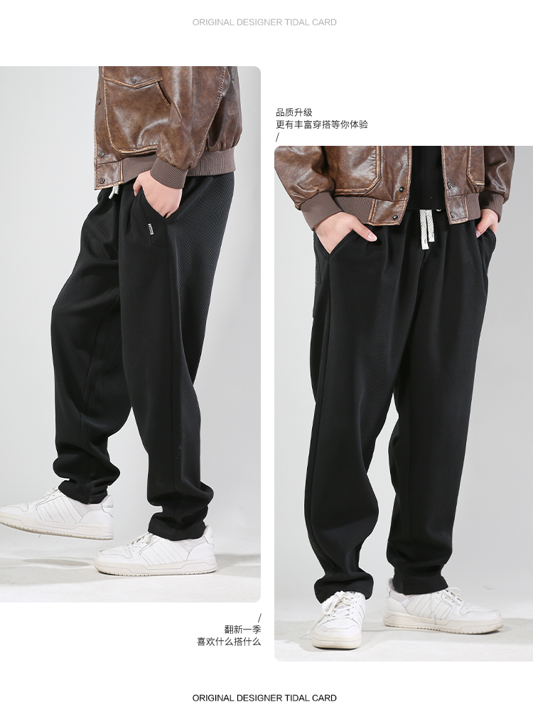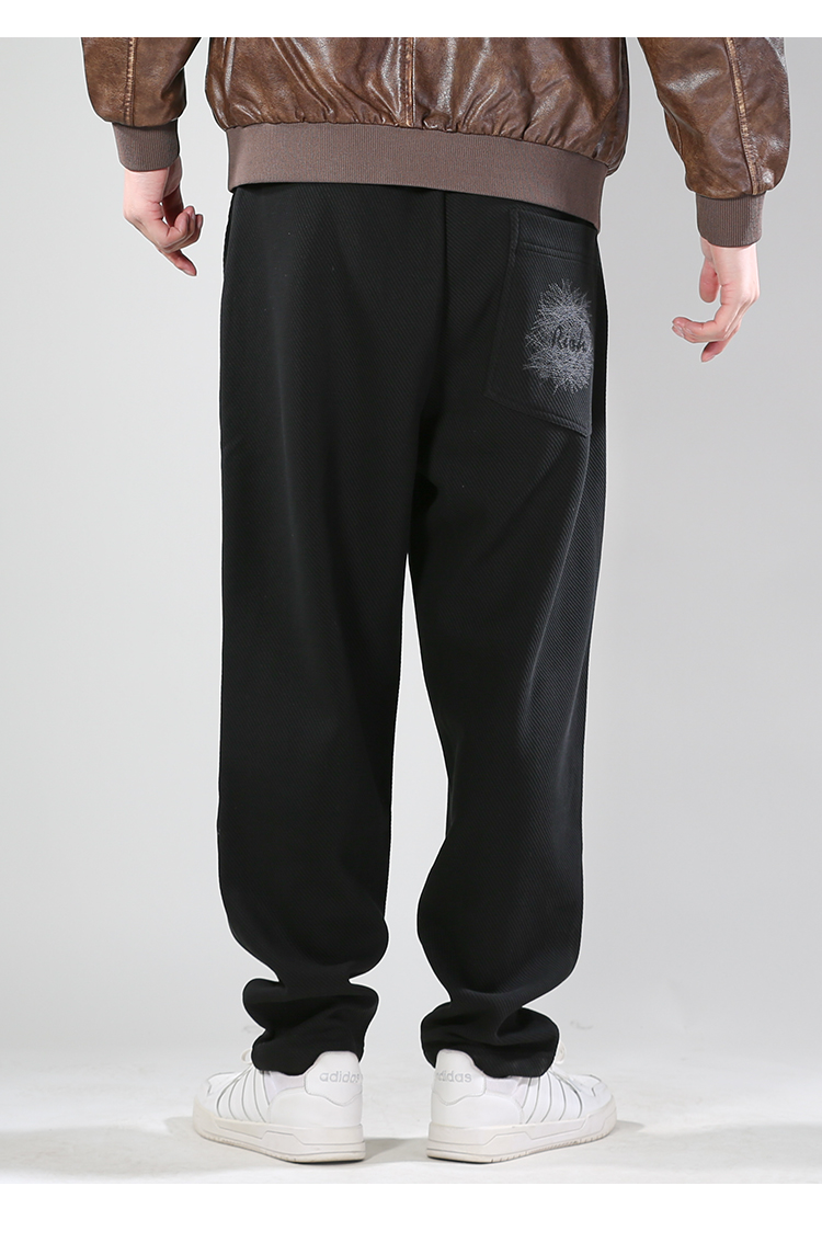 DRONKOO 2024 抽绳前左织唛后右袋烟花绣斜针织一体绒厚休闲长裤