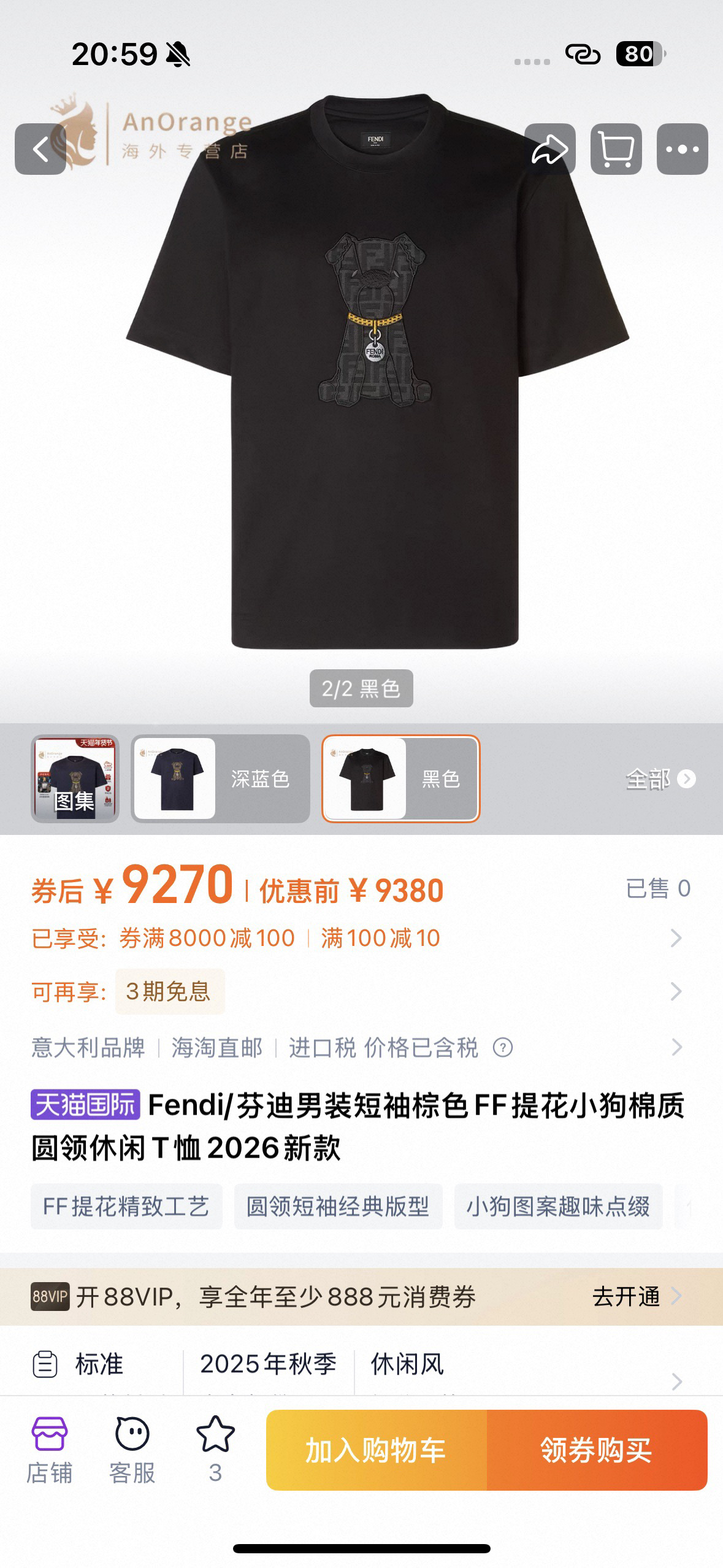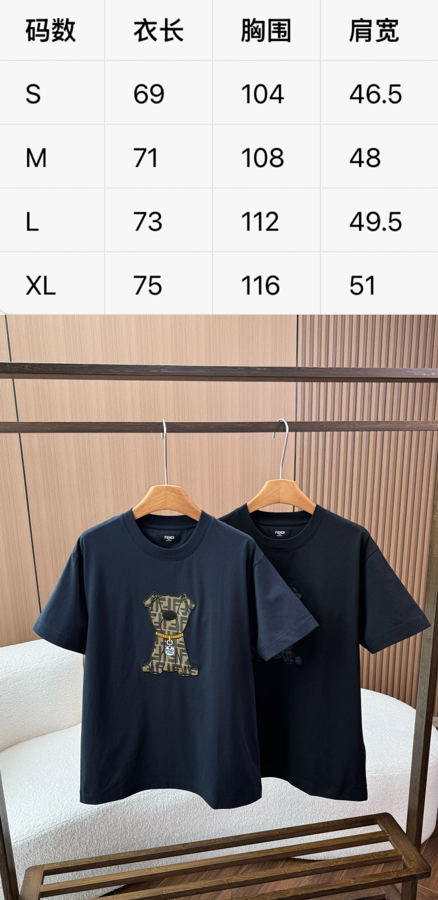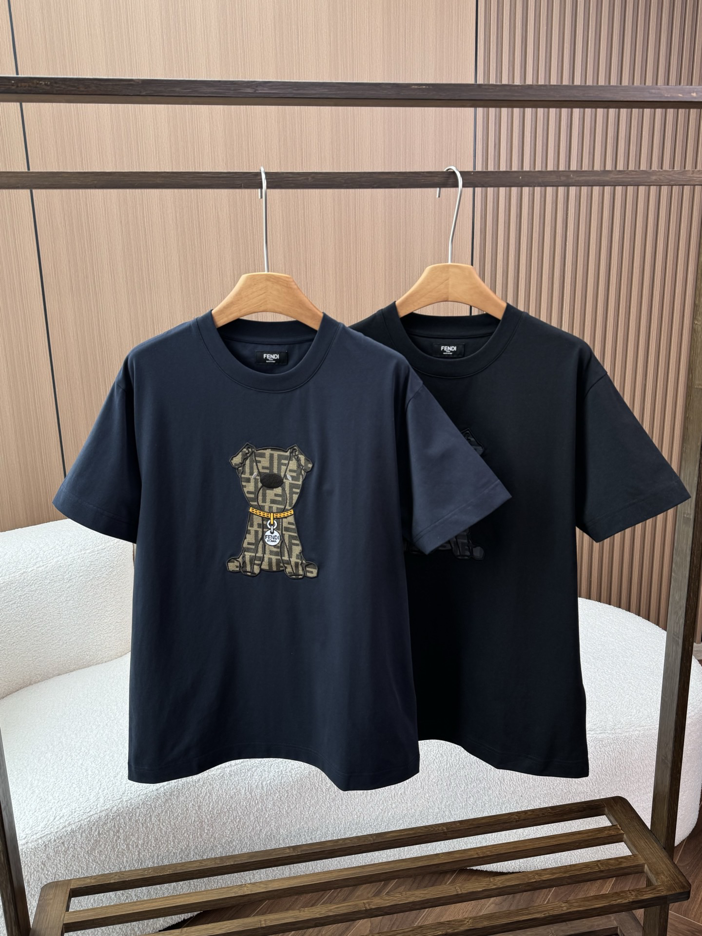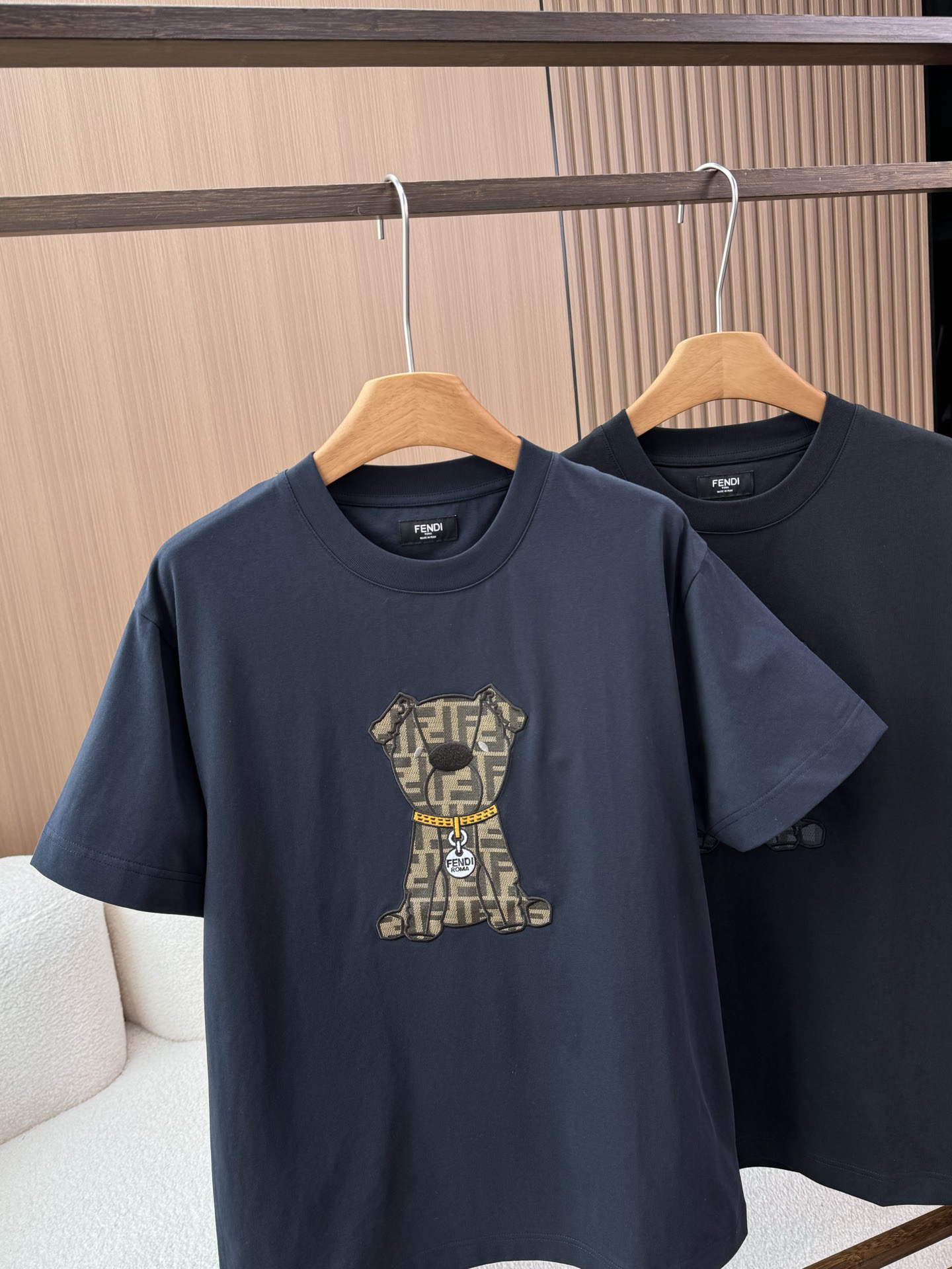 迪 2026新款短袖棕色FF提花小狗棉质圆领休闲T恤