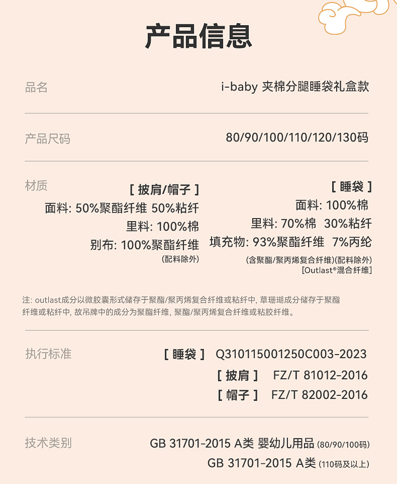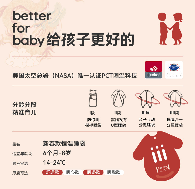 【感恩回馈 179元】新春礼盒款 i-baby恒温婴儿睡袋宝宝夹棉分腿睡袋秋冬加厚