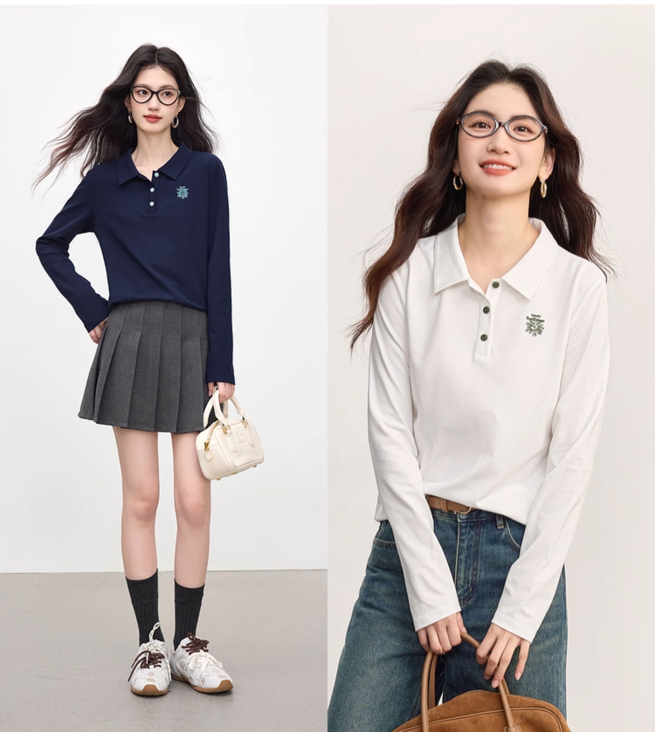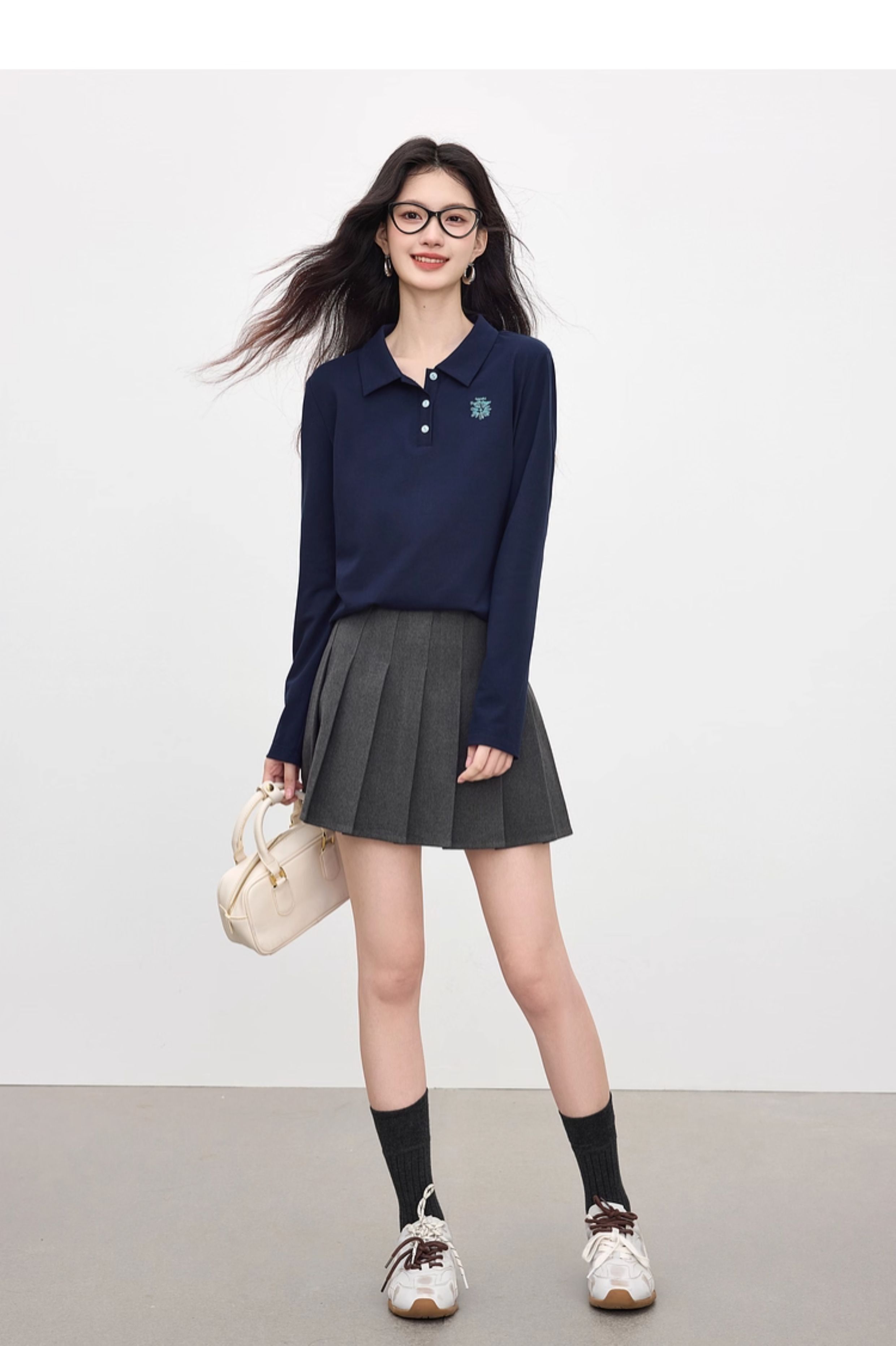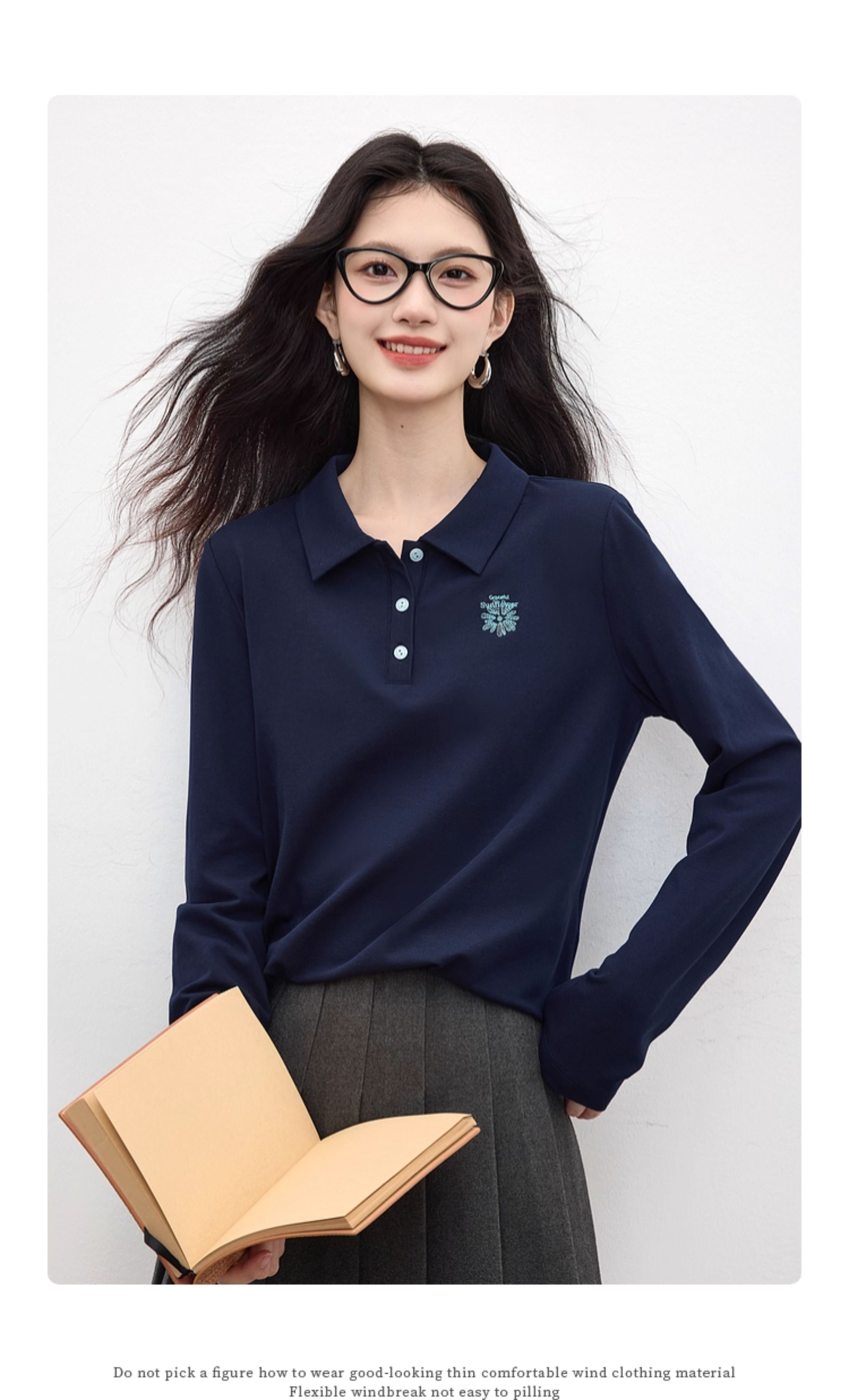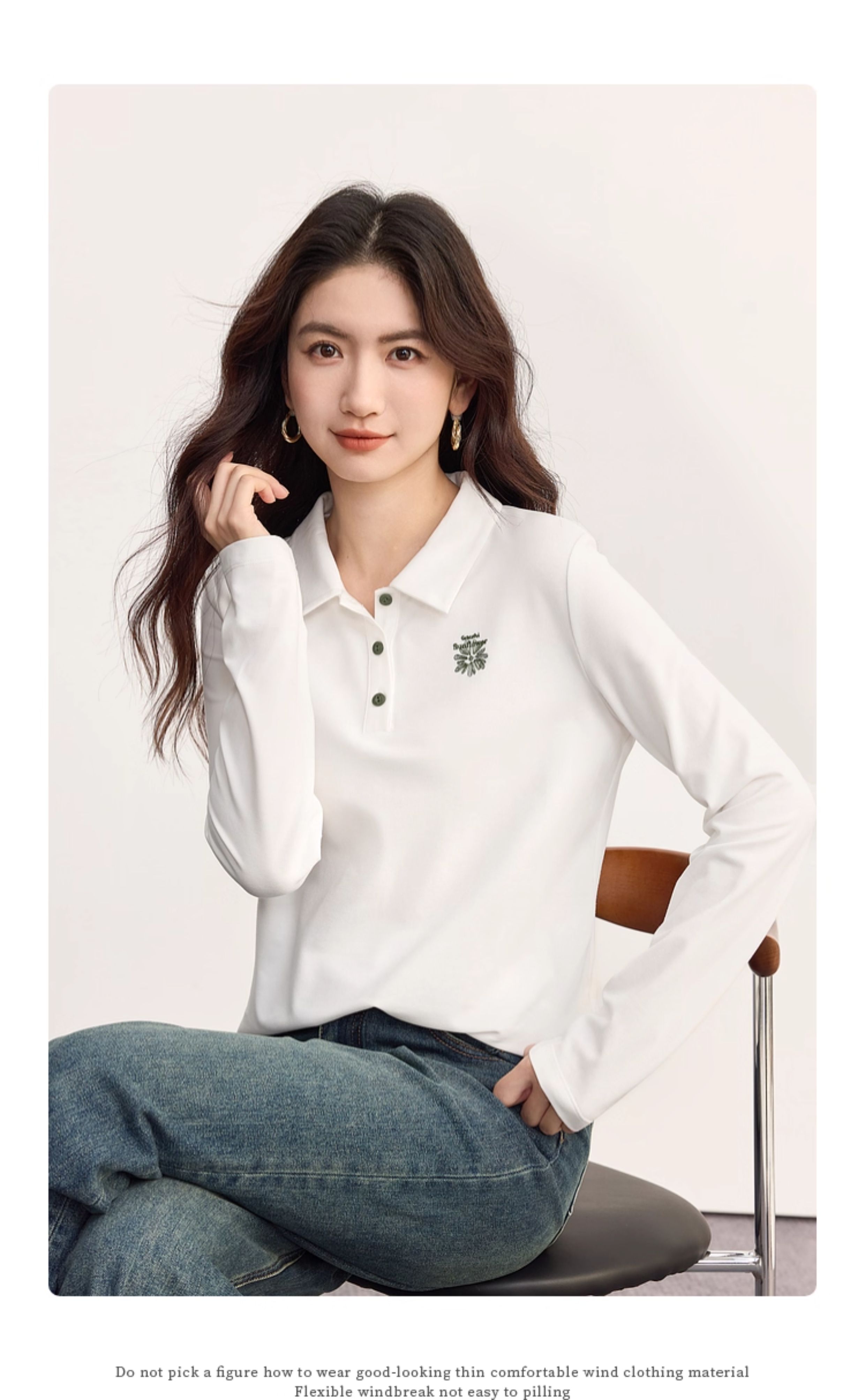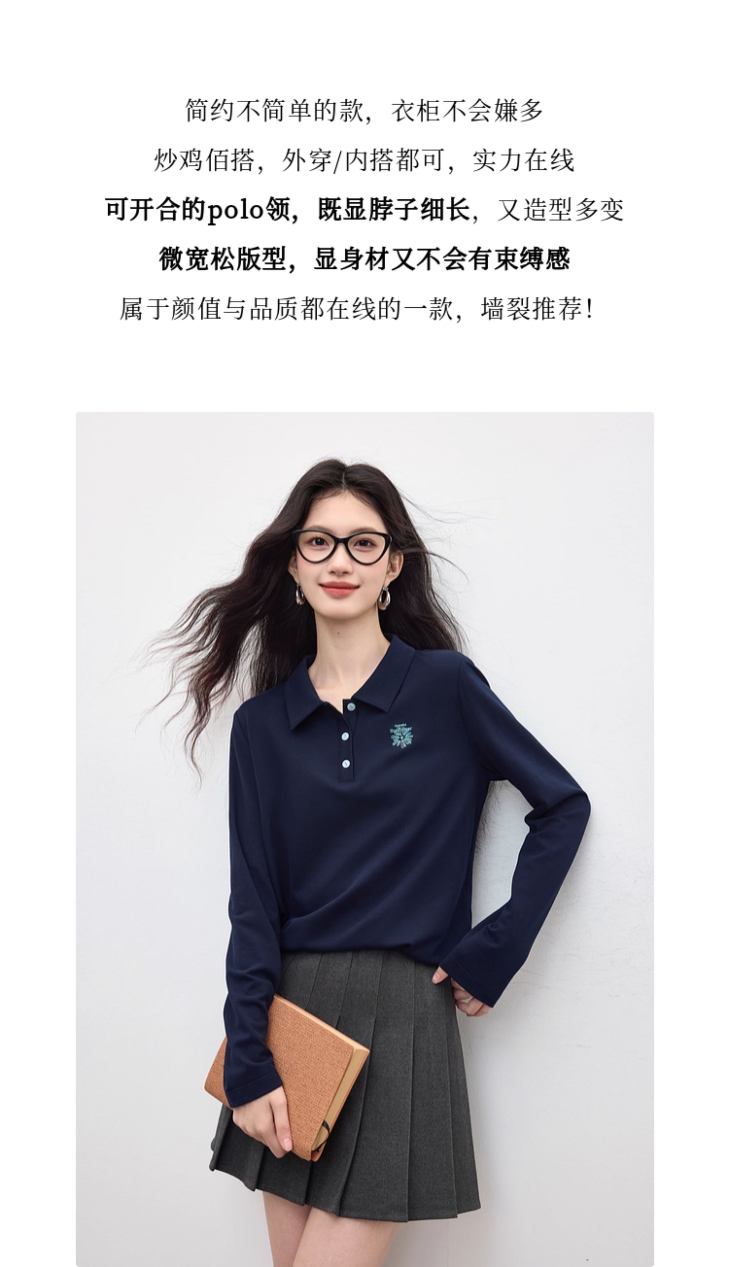 【09/17新品】熙世界小雏菊绣花POLO领T恤女长袖通勤休闲正肩上衣2025秋季新款