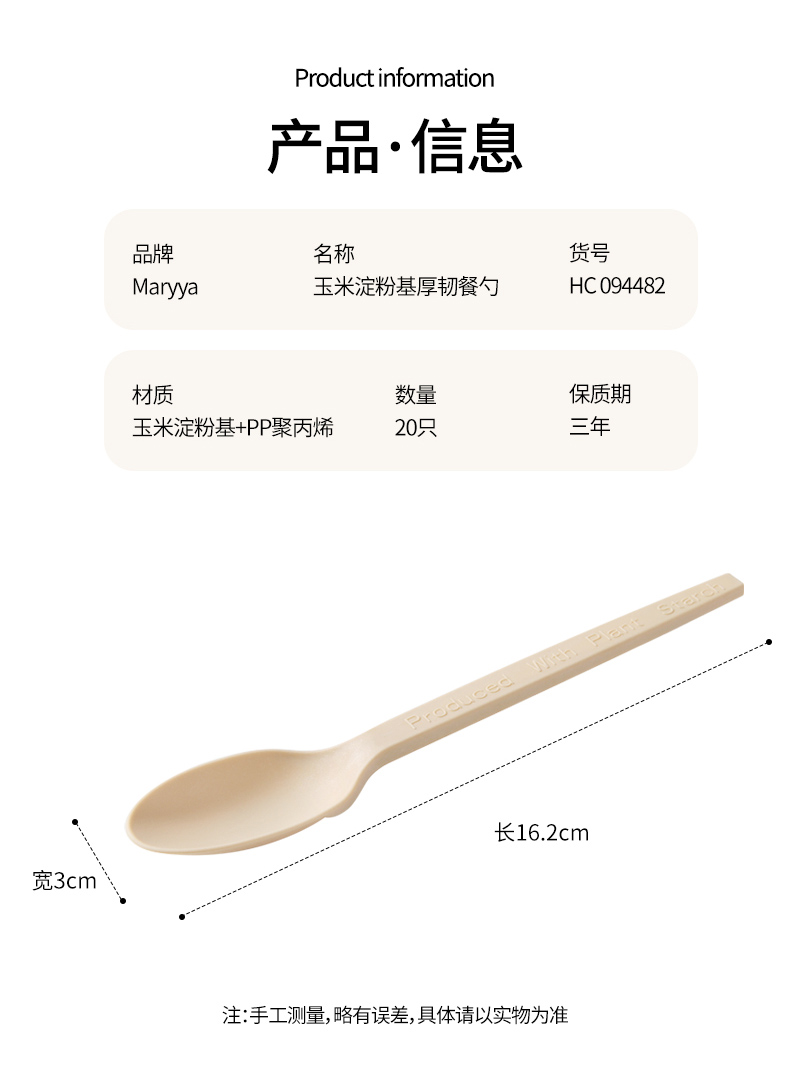 【批发】美丽雅玉米淀粉基厚韧餐勺