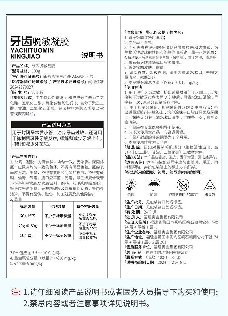 祖医堂牙齿脱敏凝胶 专为牙齿问题研发 强健固齿 修护牙龈