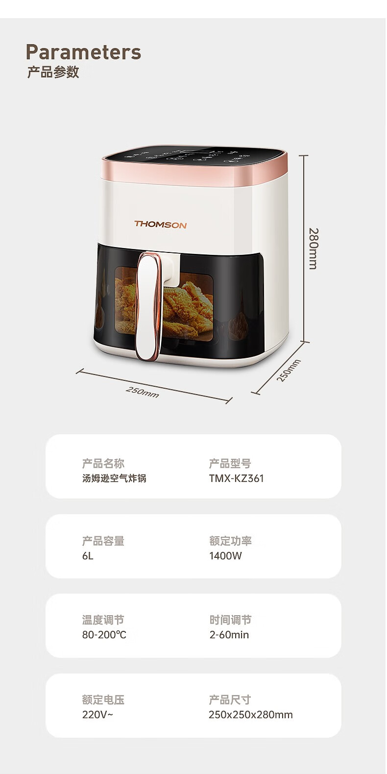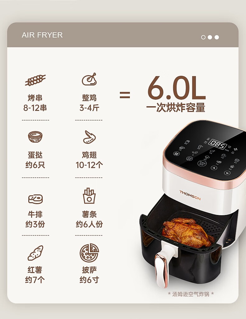 【分仓直发包邮】汤姆逊智能可视语音空气炸锅TMX-KZ361