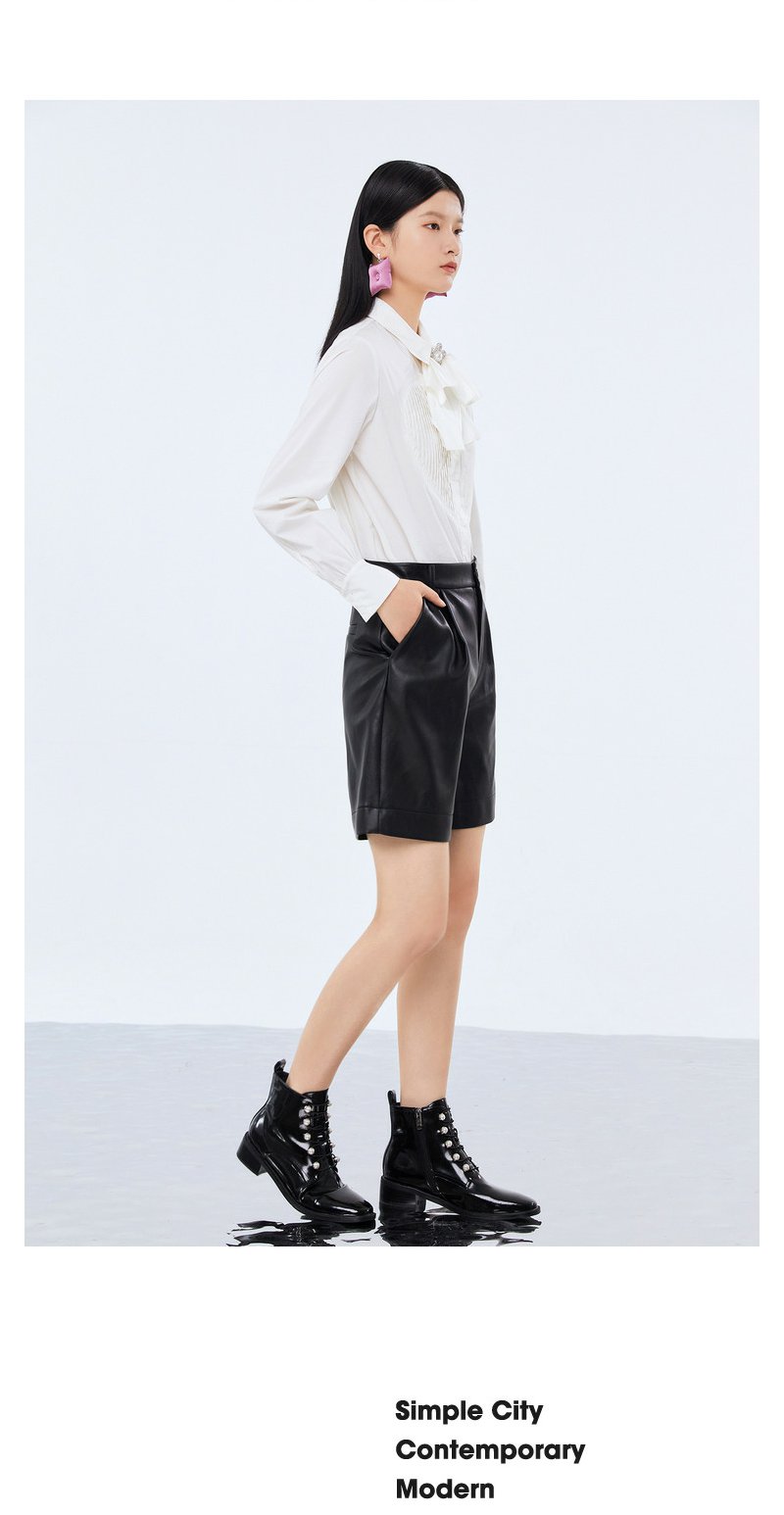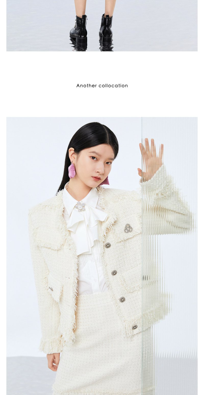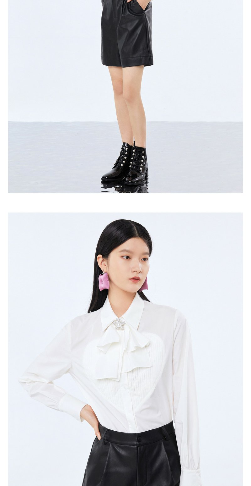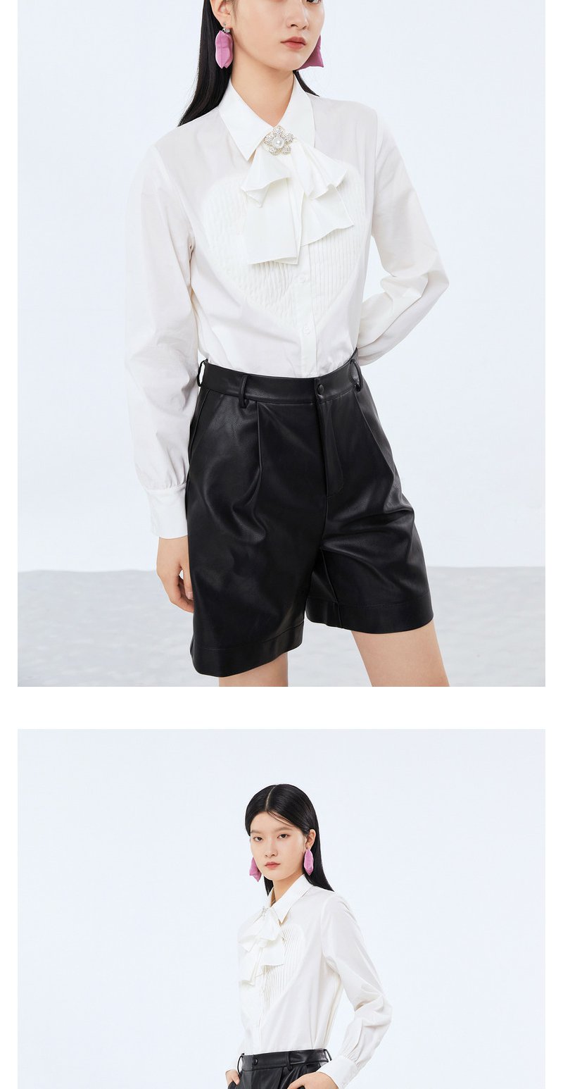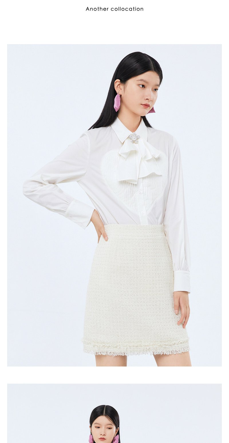 NEELLY纳俪西装领飘带白色衬衫女爱心压褶长袖上衣简约通勤秋季N21091B01183