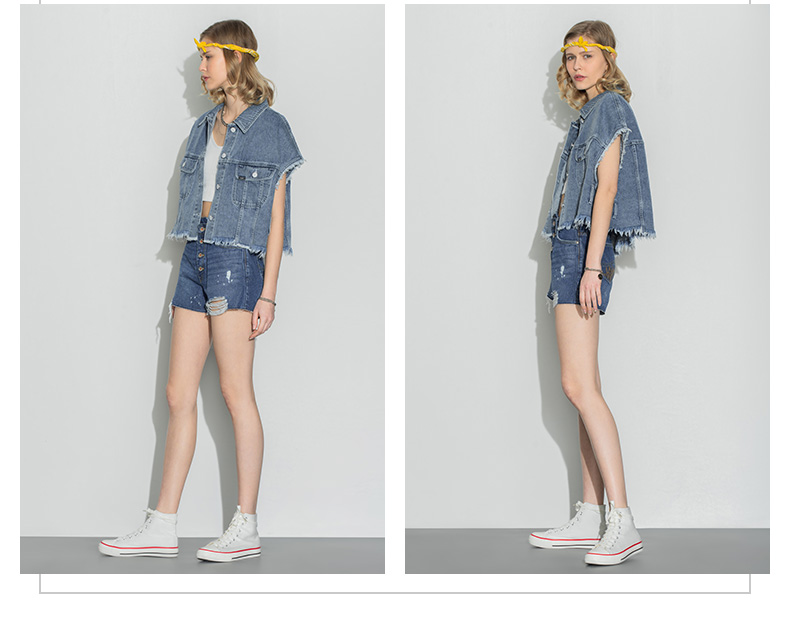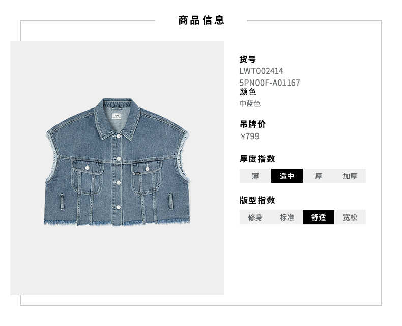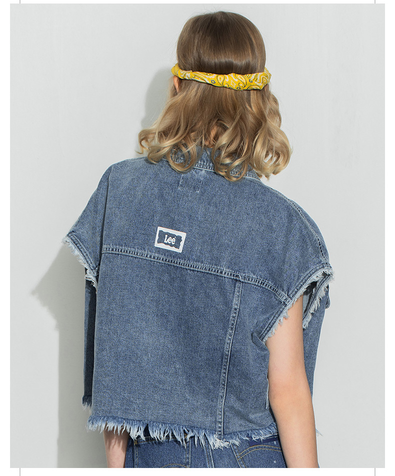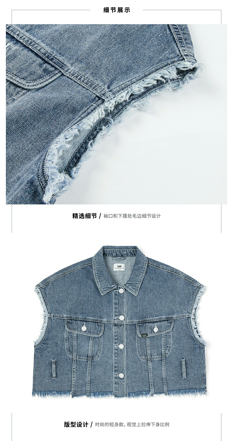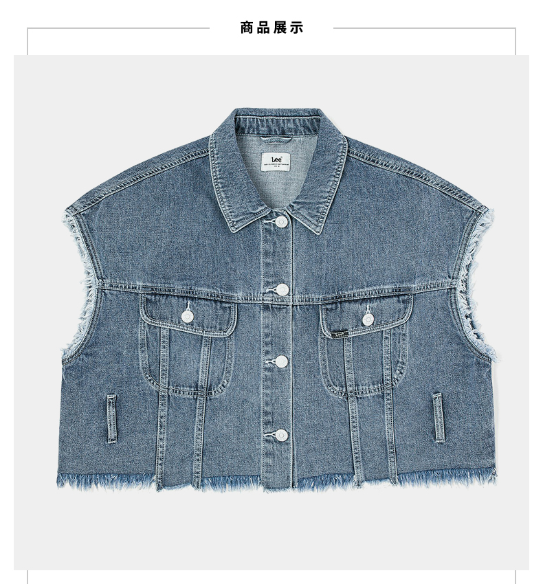 Lee商场同款22春夏新品短身款蓝女无袖夹克马甲LWT0024145PN-167