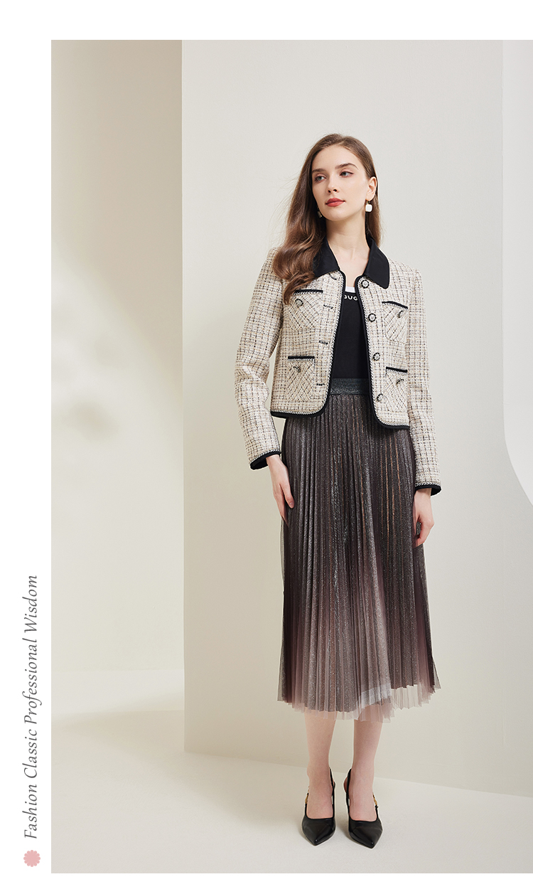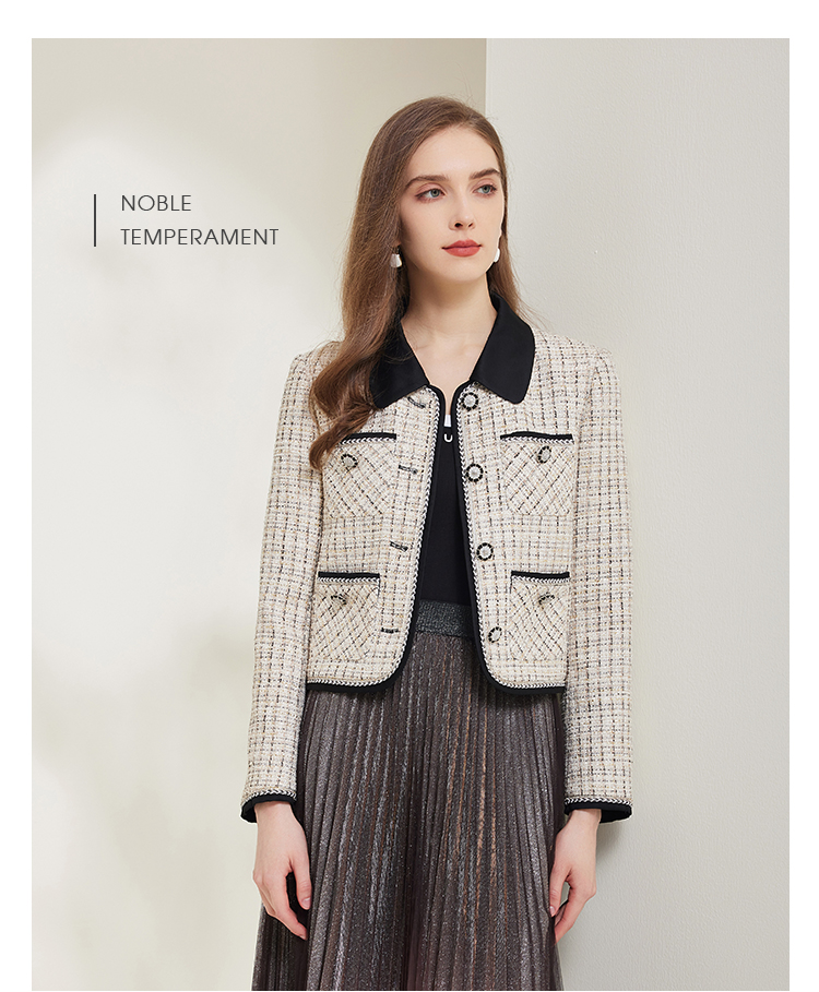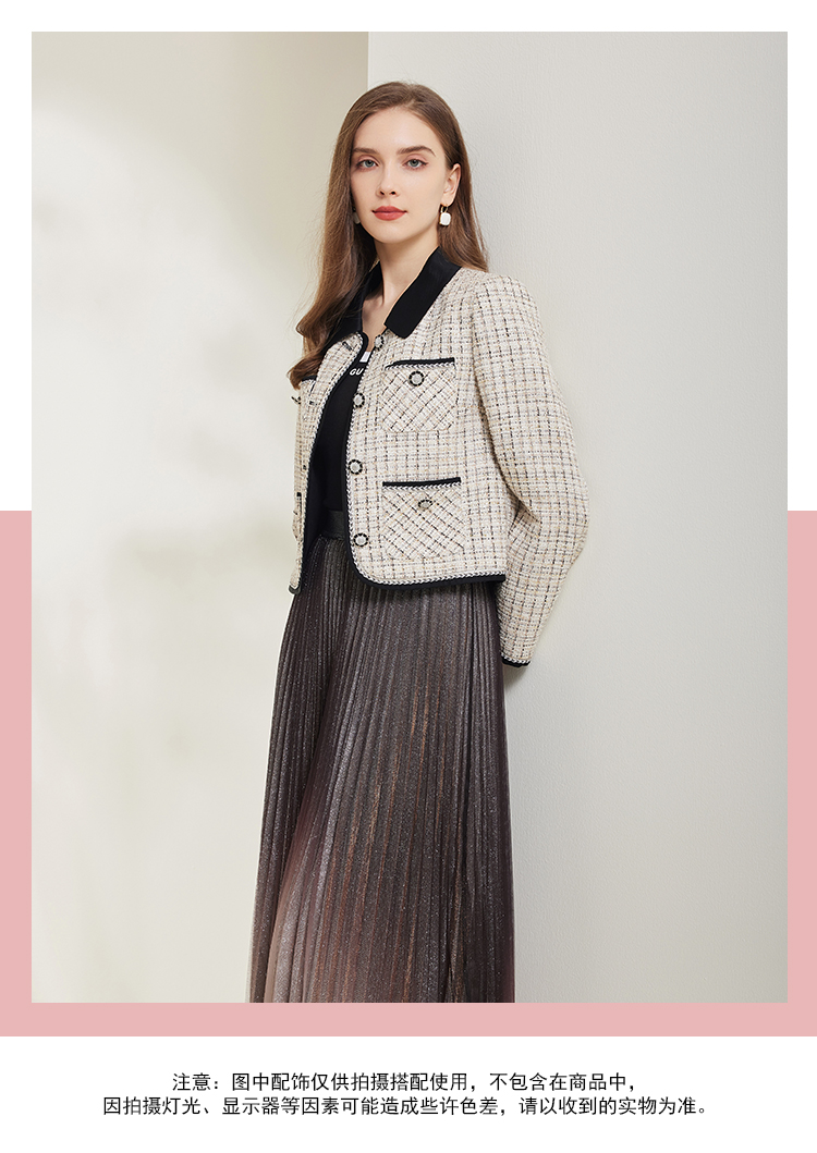 NG109斯尔丽2023秋季新款撞色衬衣领小香风时尚百搭外套